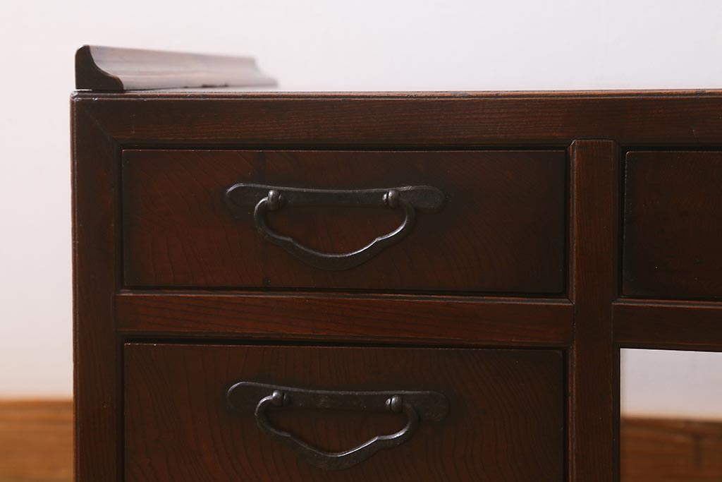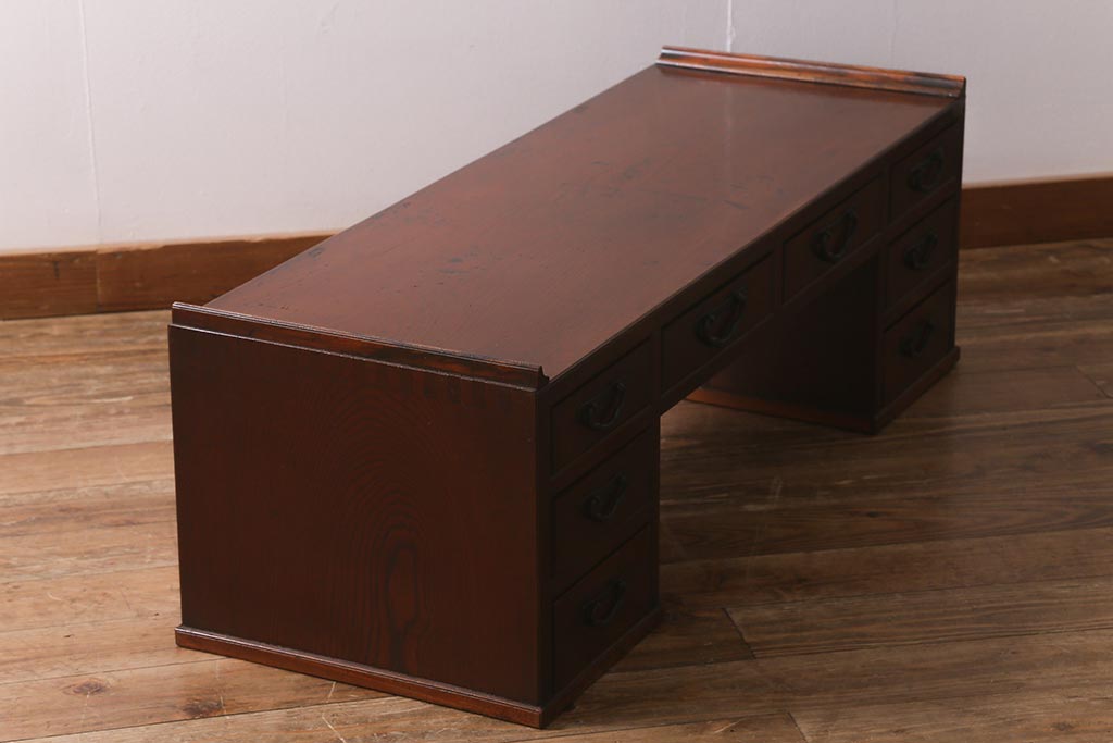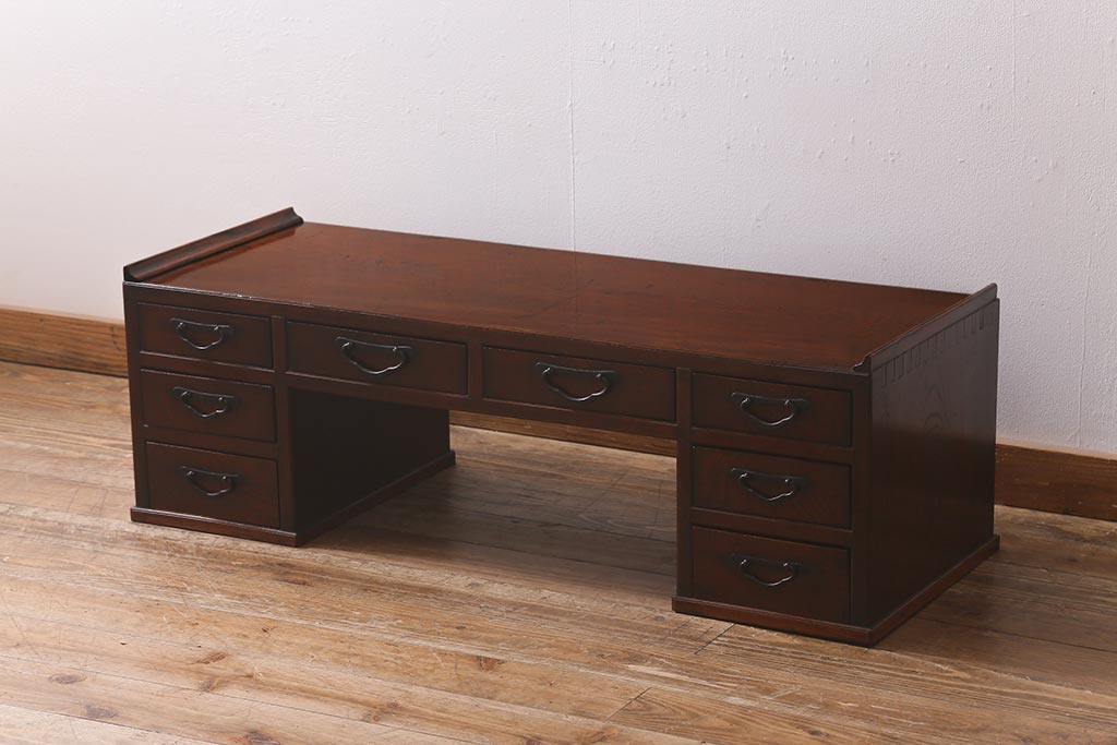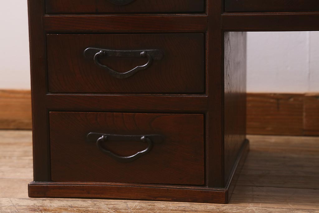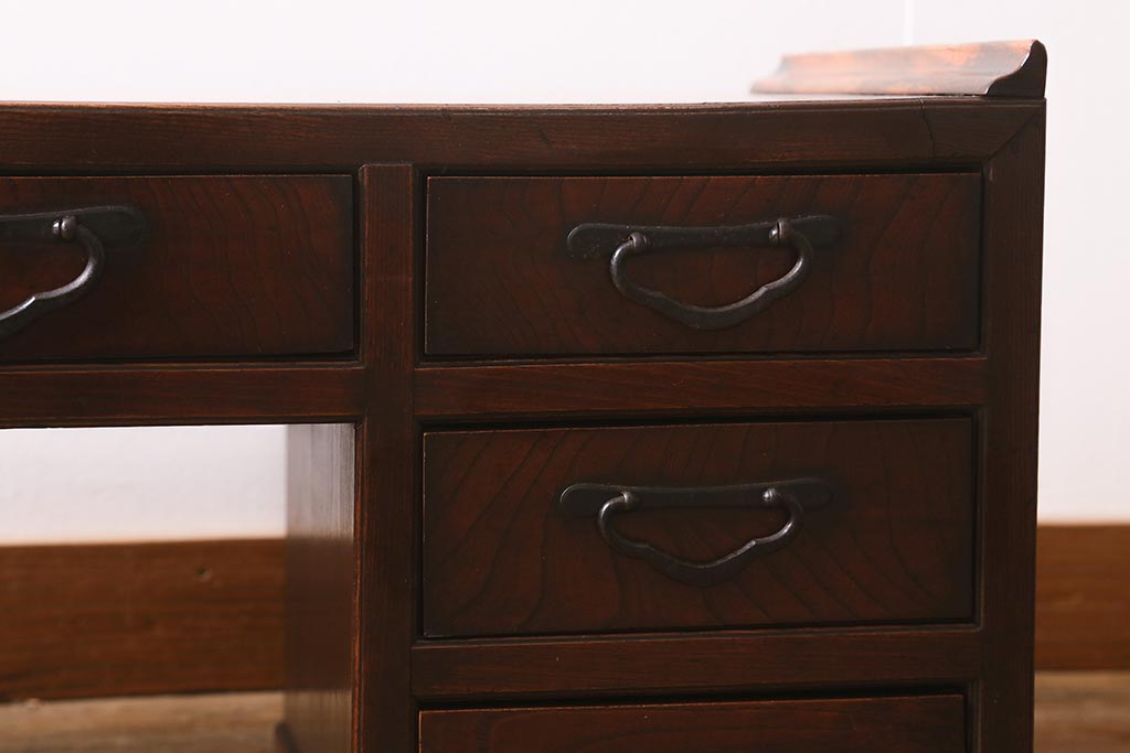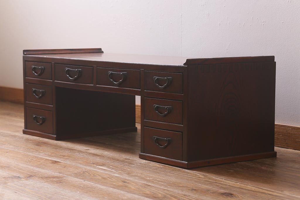 和製アンティーク 古民具 総欅材 漆 上手物 重厚感漂う上品な両袖文机(両袖机、帳場机、文机)(R-041767)