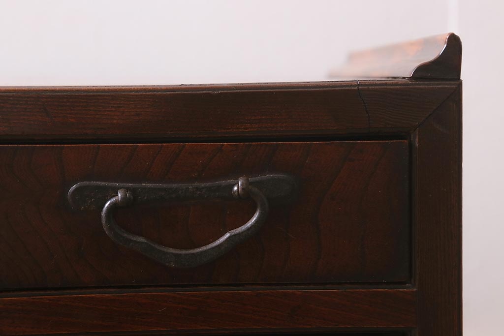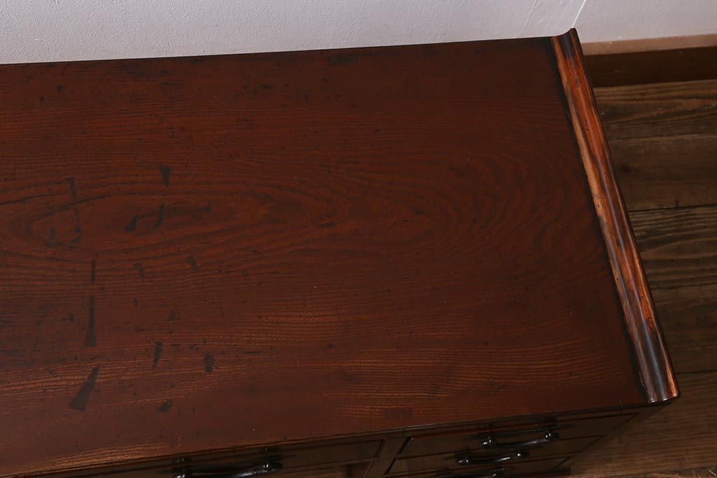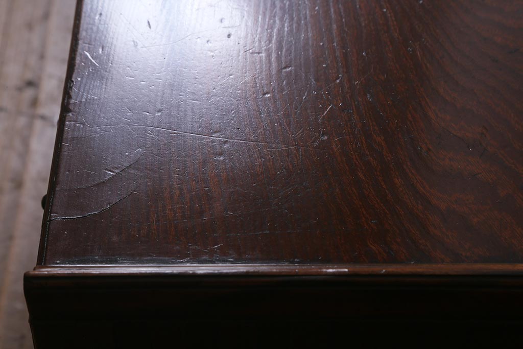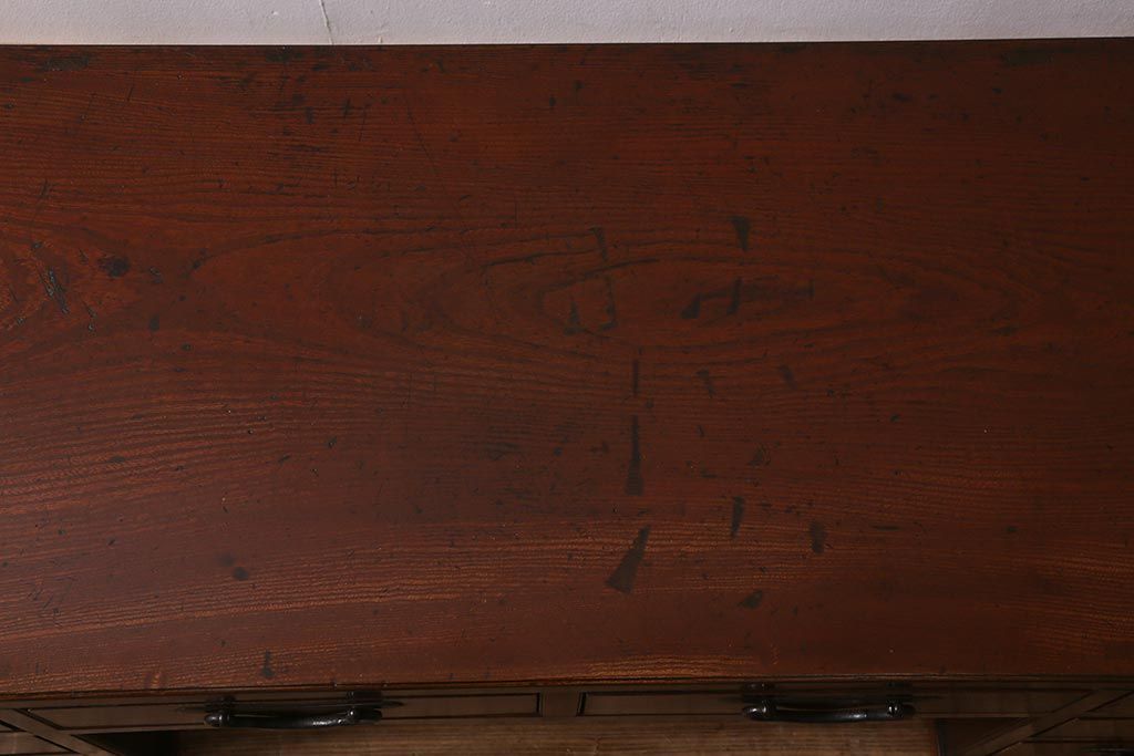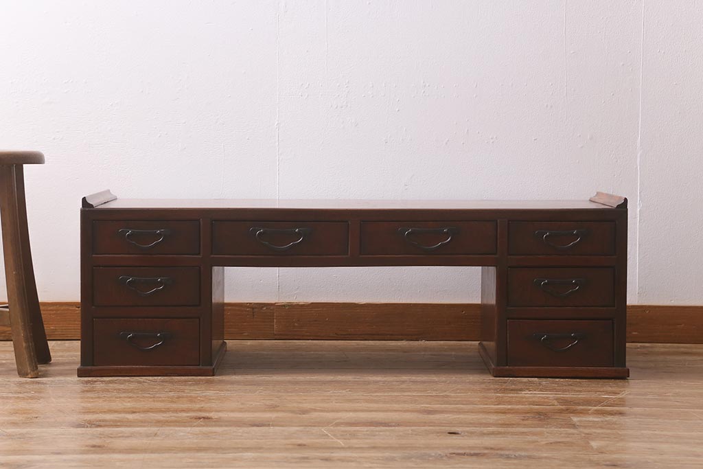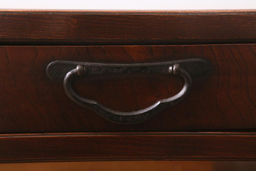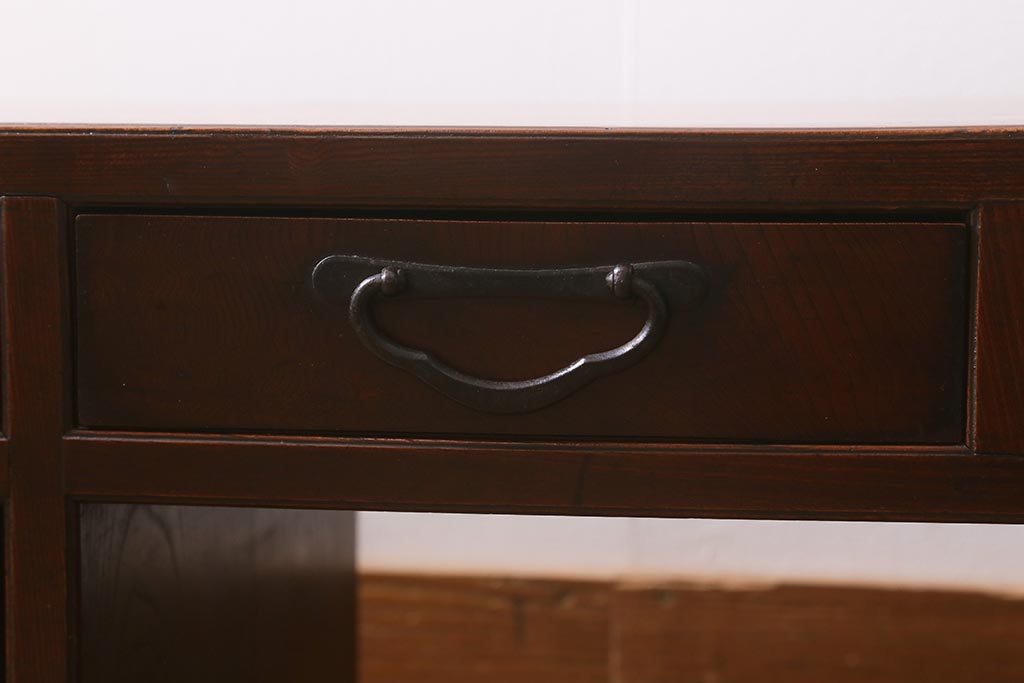 和製アンティーク 古民具 総欅材 漆 上手物 重厚感漂う上品な両袖文机(両袖机、帳場机、文机)(R-041767)