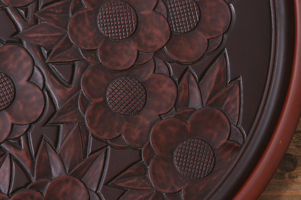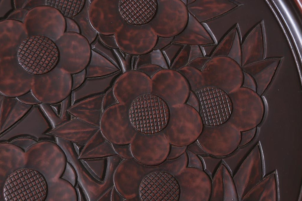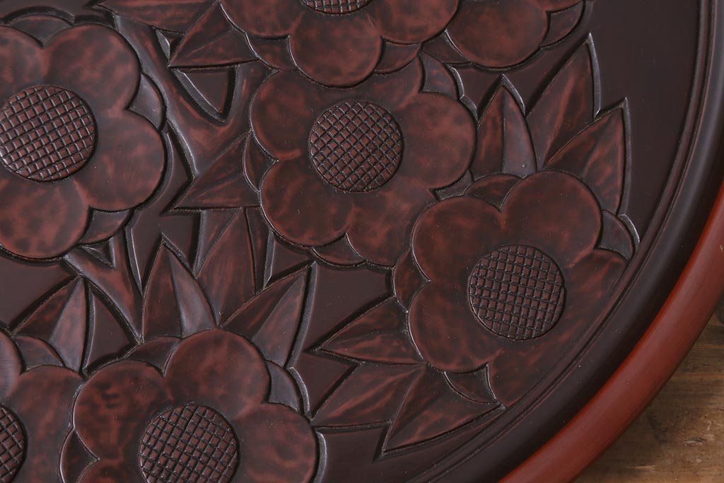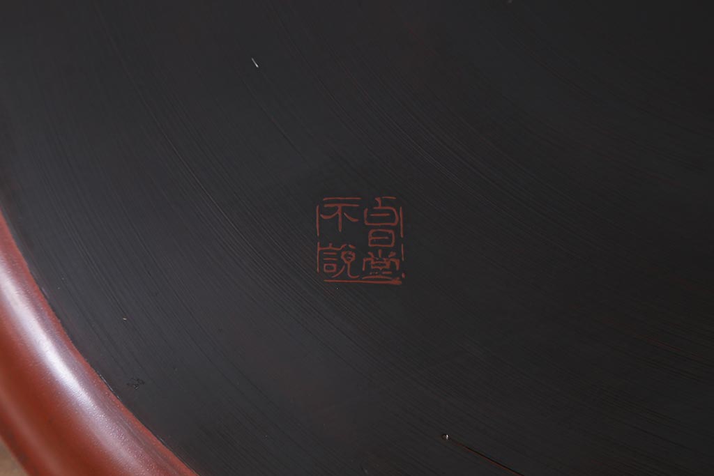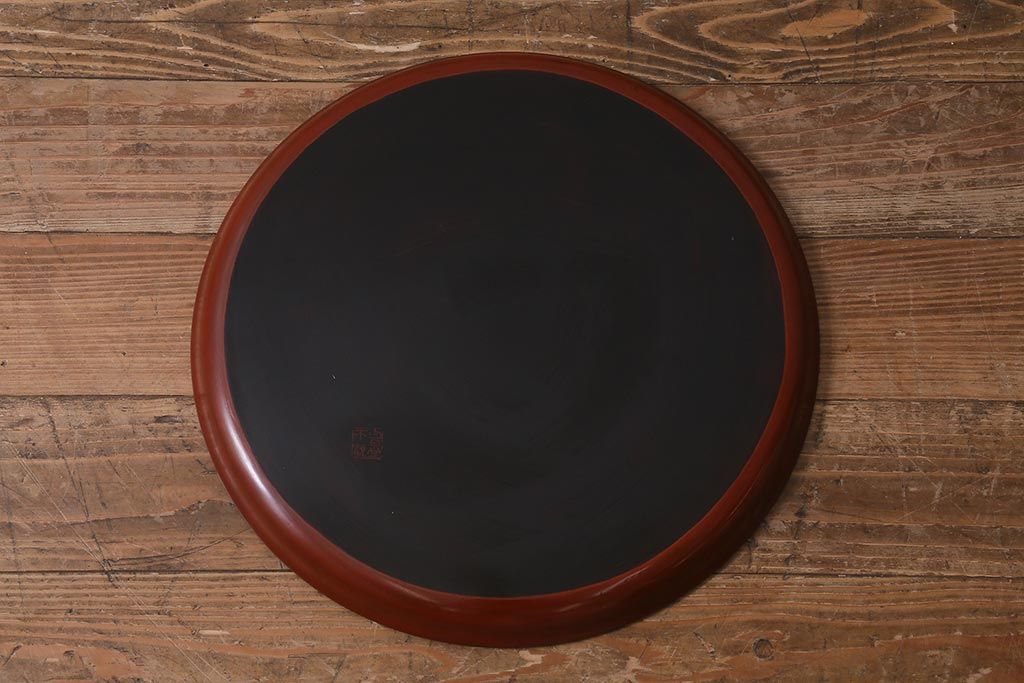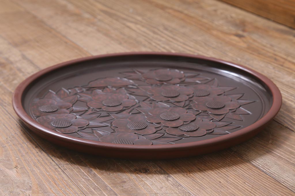 ラフジュ工房> 骨董・美術品> 骨董-漆器 > 鎌倉彫 白日堂 伊志良不説作 丸盆 箱付き(和盆、木製盆、漆器)(R-041598)