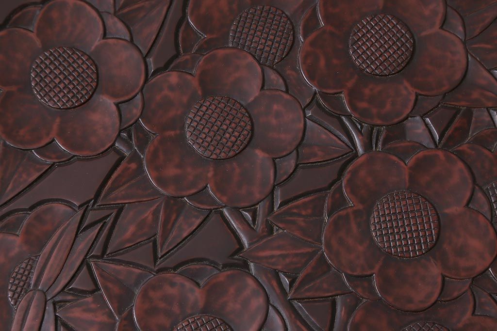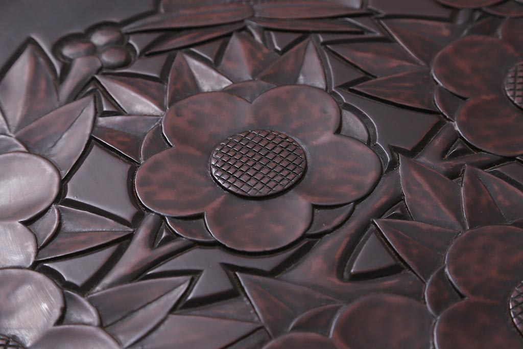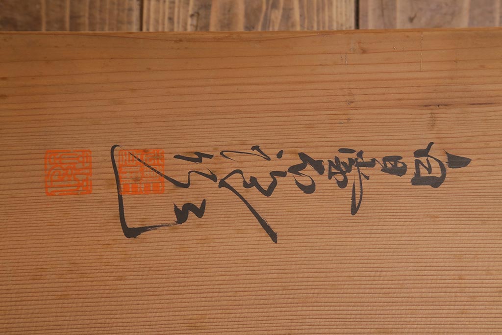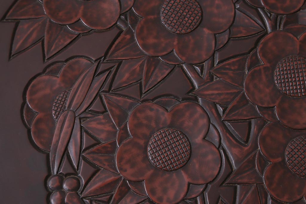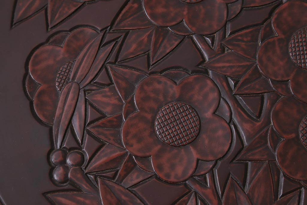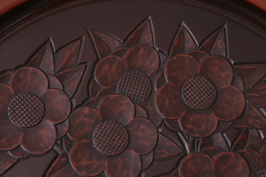 ラフジュ工房> 骨董・美術品> 骨董-漆器 > 鎌倉彫 白日堂 伊志良不説作 丸盆 箱付き(和盆、木製盆、漆器)(R-041598)