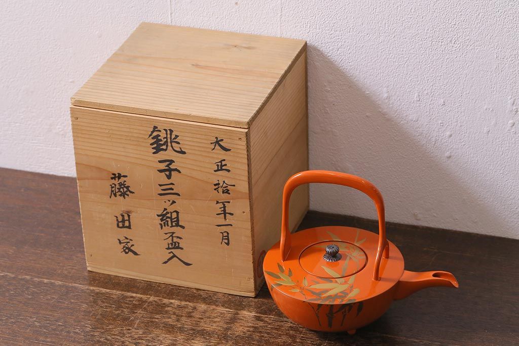 ラフジュ工房> 和食器・茶道具> 酒器 > アンティーク雑貨 和製アンティーク 大正期 朱漆 鶴図柄銚子 箱付き(漆器)(R-041604)