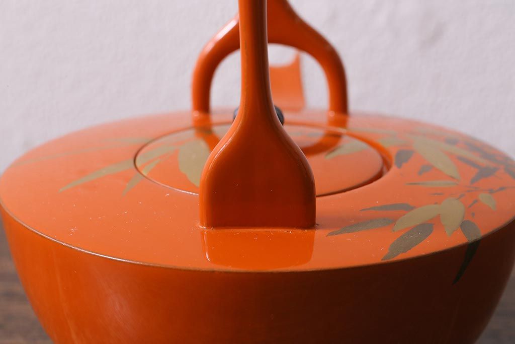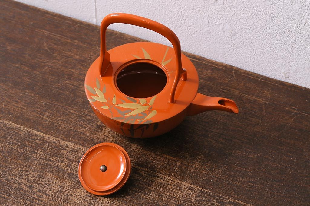アンティーク雑貨 和製アンティーク 大正期 朱漆 鶴図柄銚子 箱付き(漆器)(R-041604)