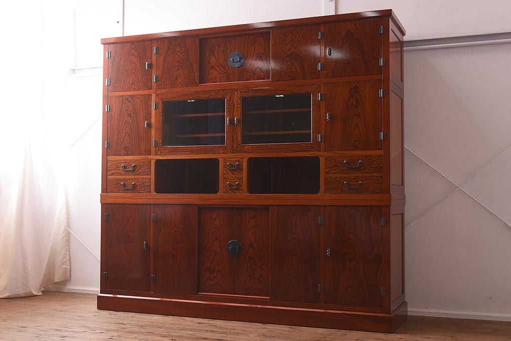 ラフジュ工房> 和箪笥 > 在庫未使用品 IDC大塚家具 松創 超極上品!! 七尺 総欅(ケヤキ)材漆塗り 大道具タンス(商店飾棚、キャビネット、壁面収納)(定価約1,800万円)(R-041669)