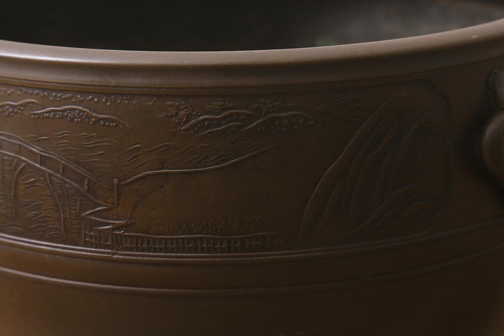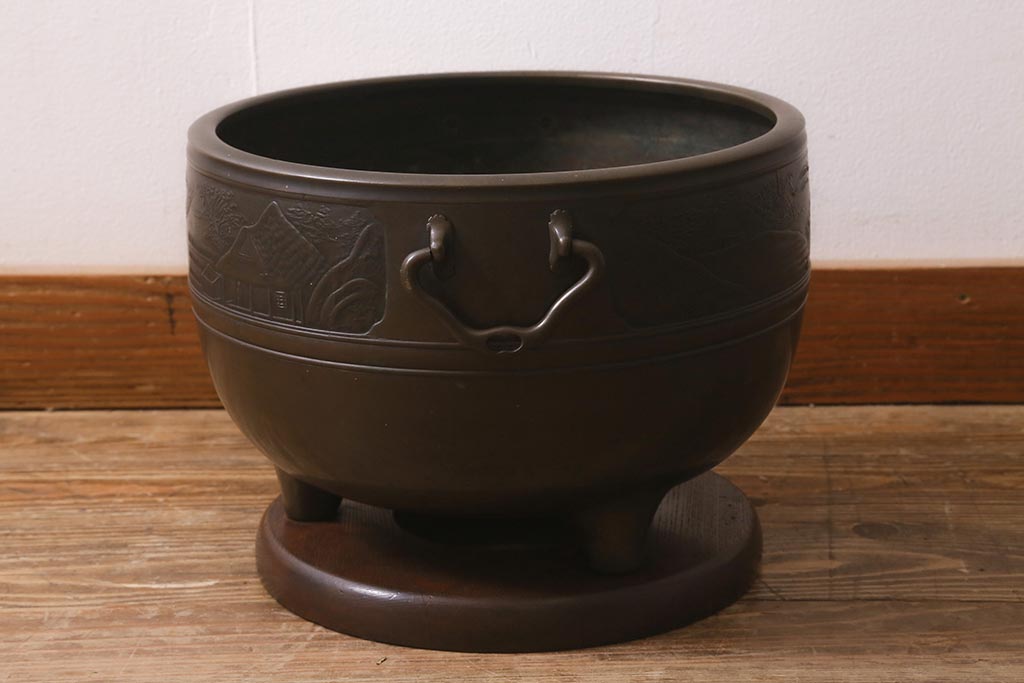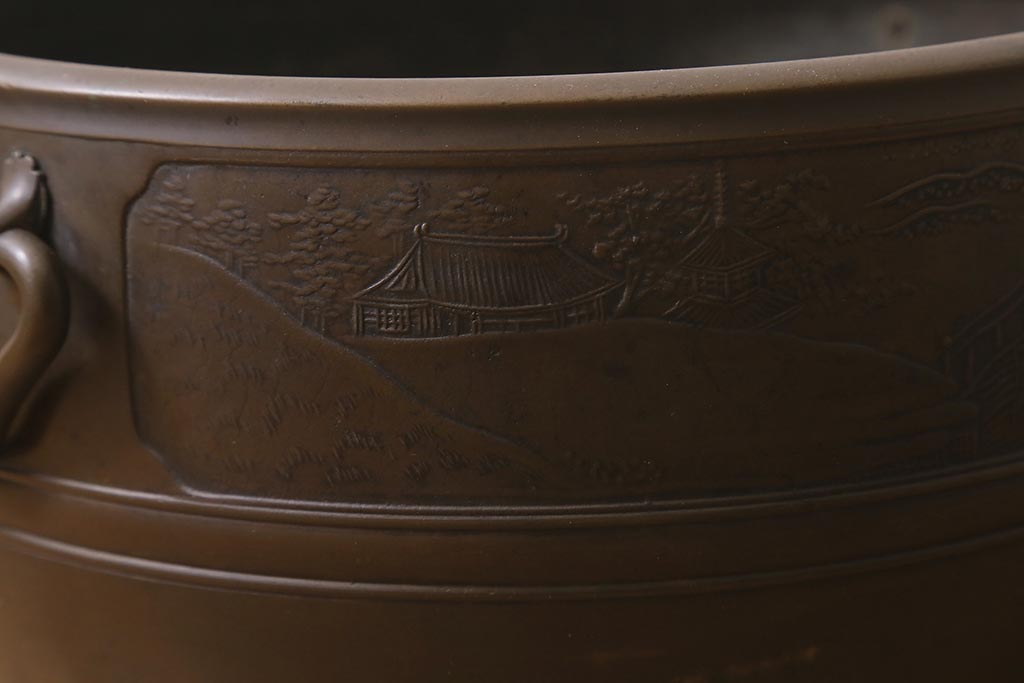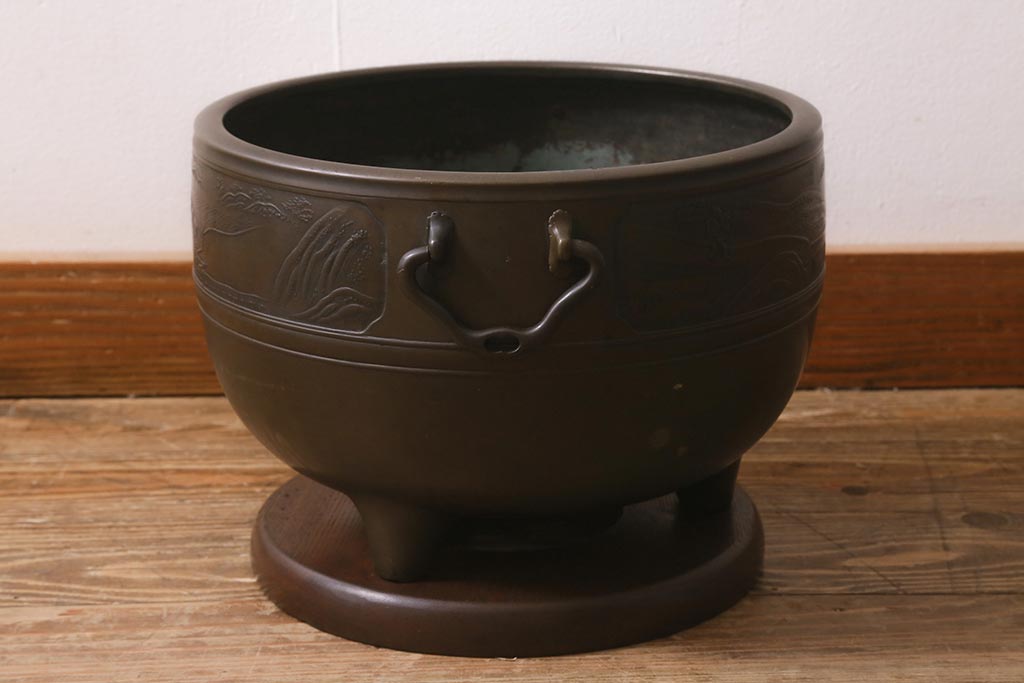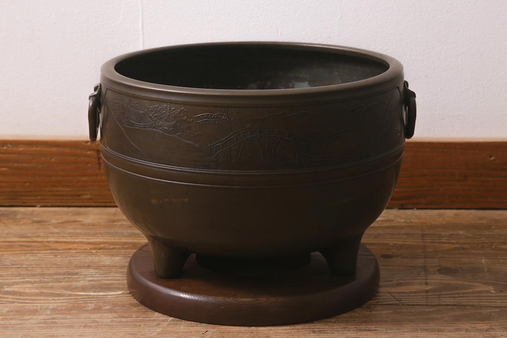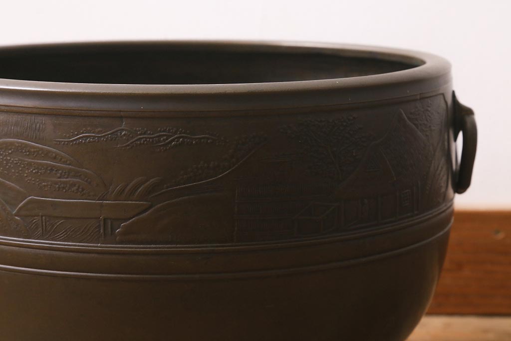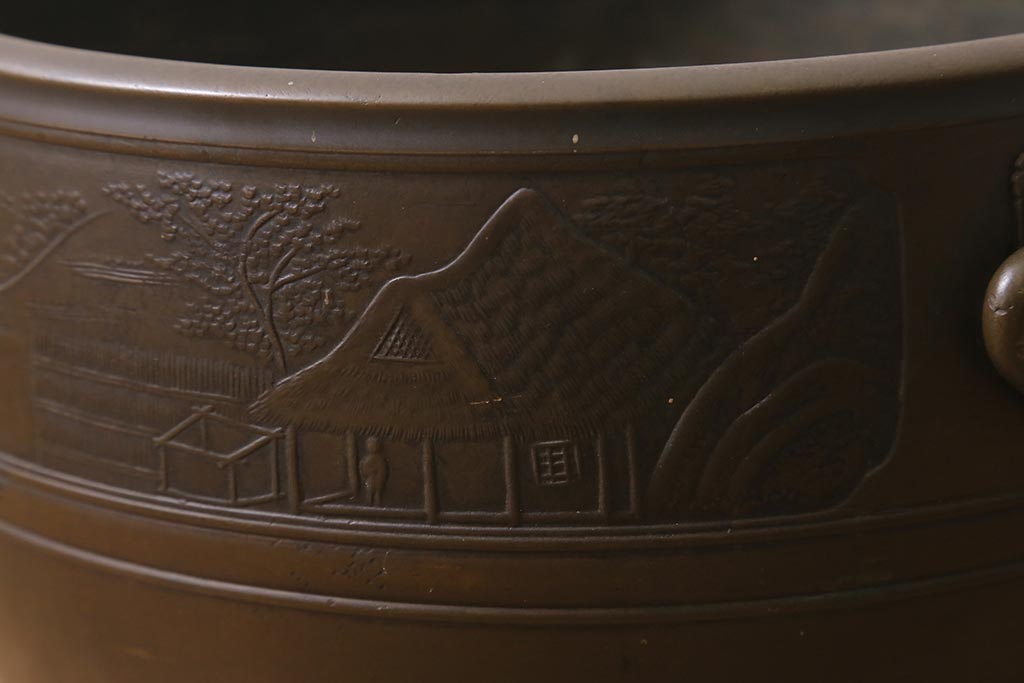 ラフジュ工房> 骨董・美術品 > アンティーク雑貨 古民具・骨董 大正昭和初期 山水図 耳付銅火鉢(手あぶり)(R-041695)