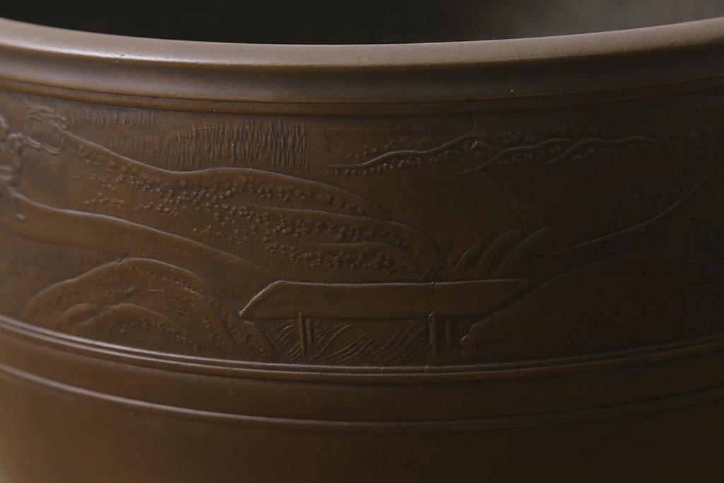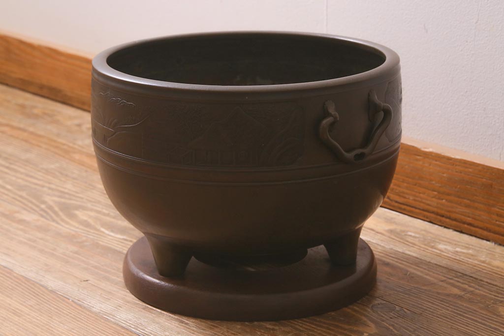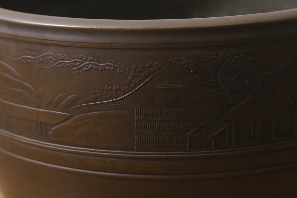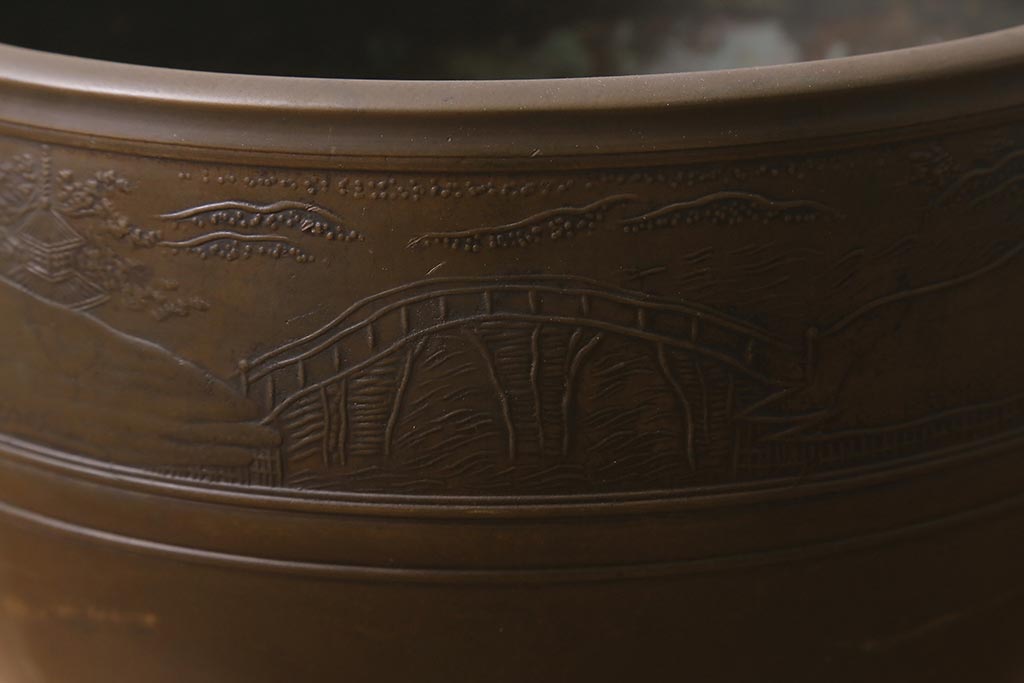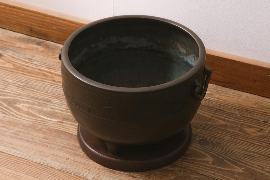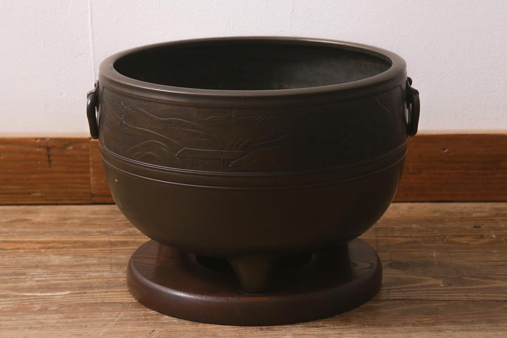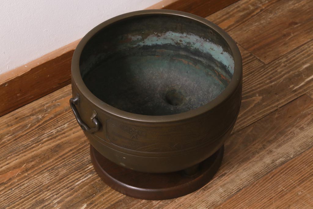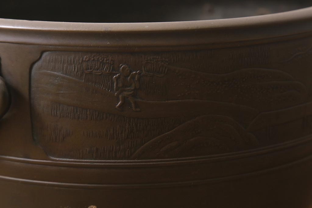 ラフジュ工房> 骨董・美術品 > アンティーク雑貨 古民具・骨董 大正昭和初期 山水図 耳付銅火鉢(手あぶり)(R-041695)