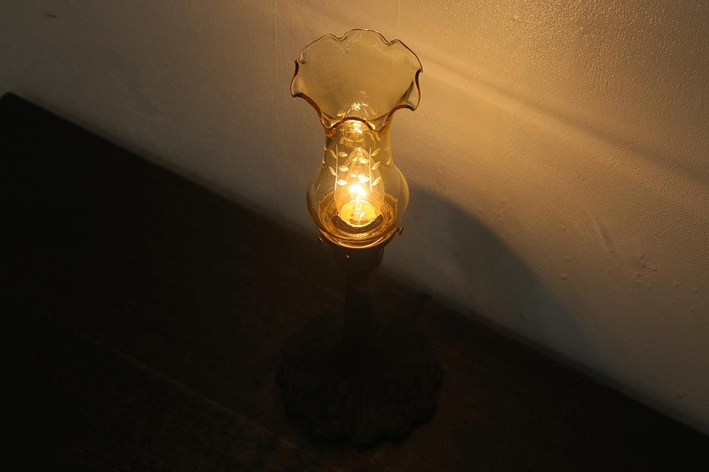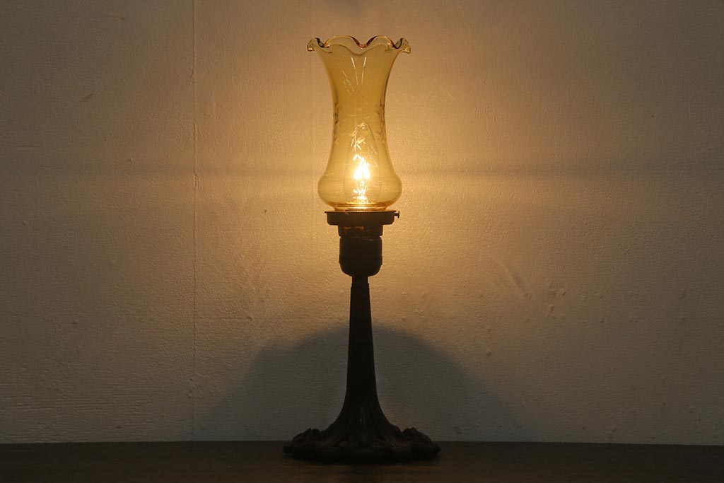 アンティーク照明 昭和初期 鉄製支柱 大正ロマンスタイルにおすすめのテーブルランプ(卓上照明、スタンドライト)(R-041716)です。