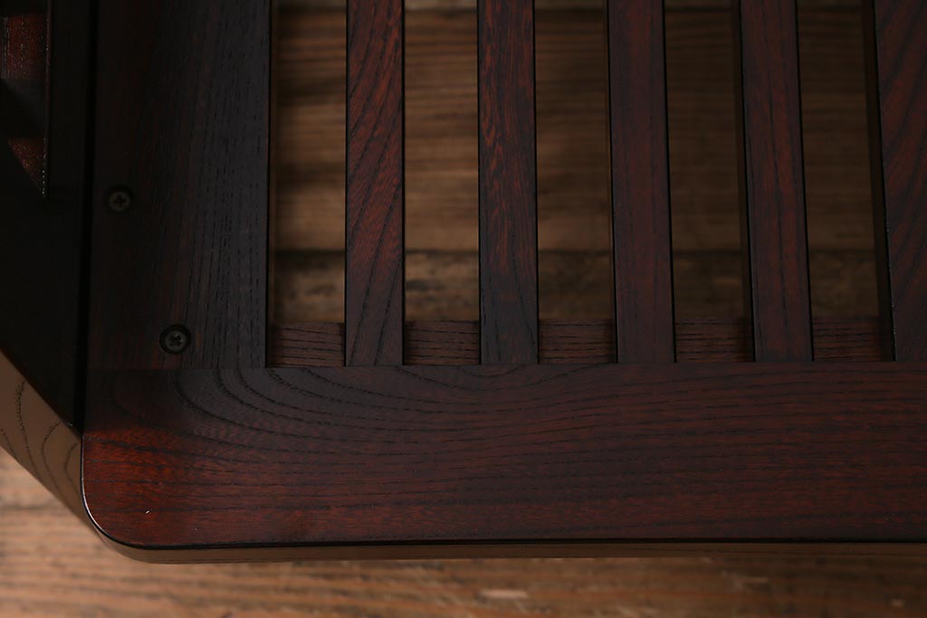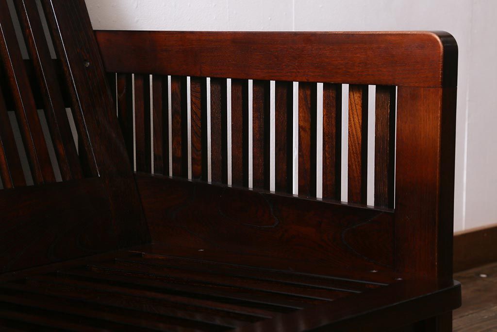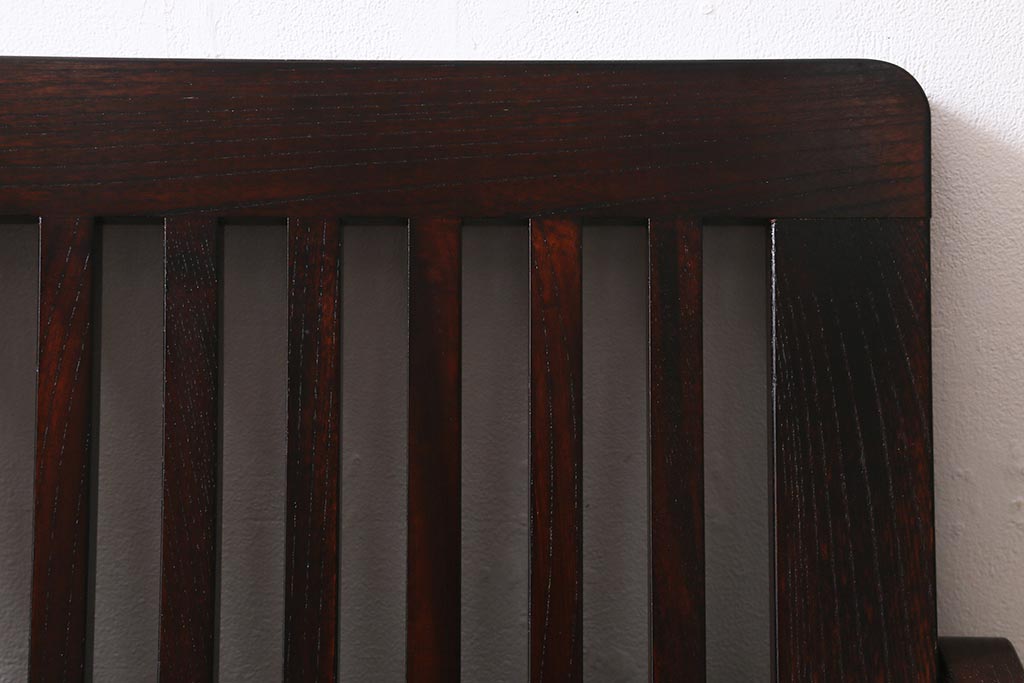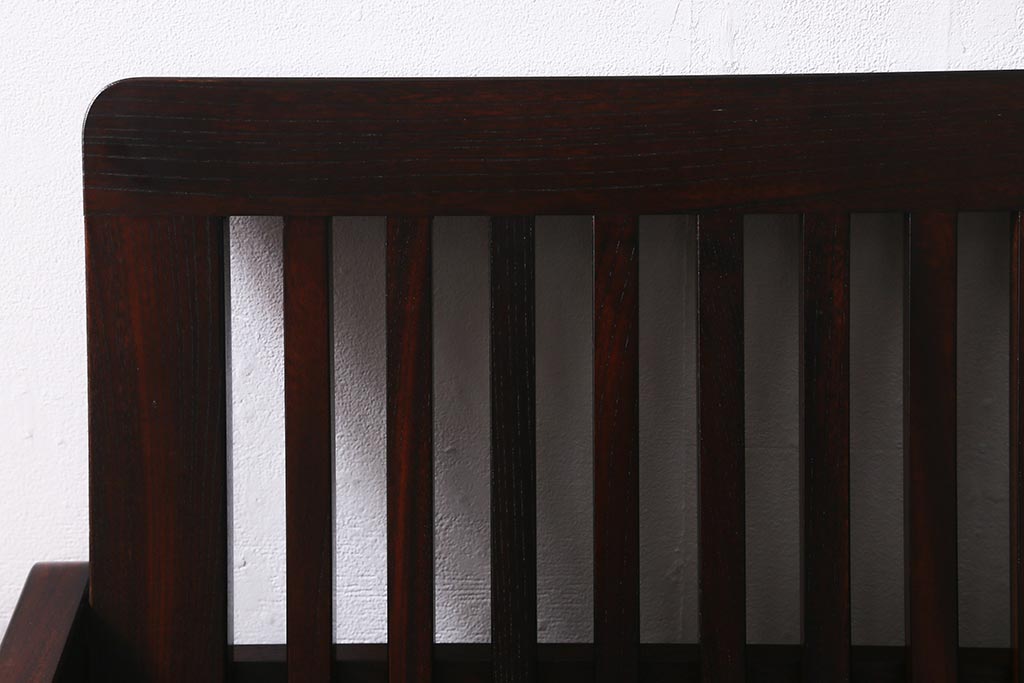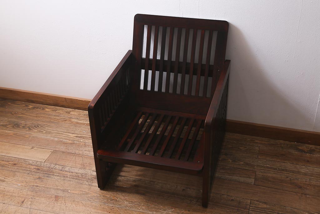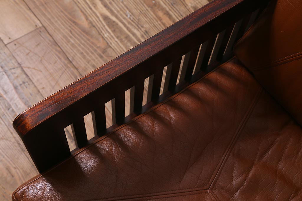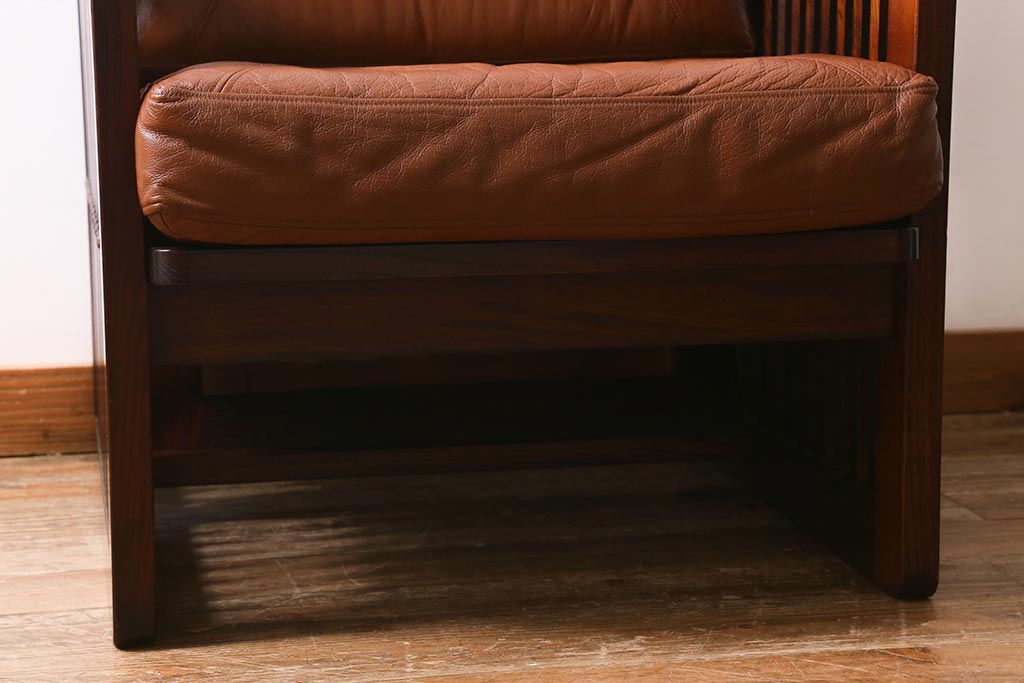 中古 九州民芸家具 本革 総ケヤキ材 漆塗り 上質な雰囲気漂う1人掛けソファ(定価30万円)(1Pソファ、椅子、アームチェア)(R-040925)