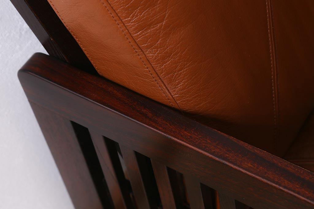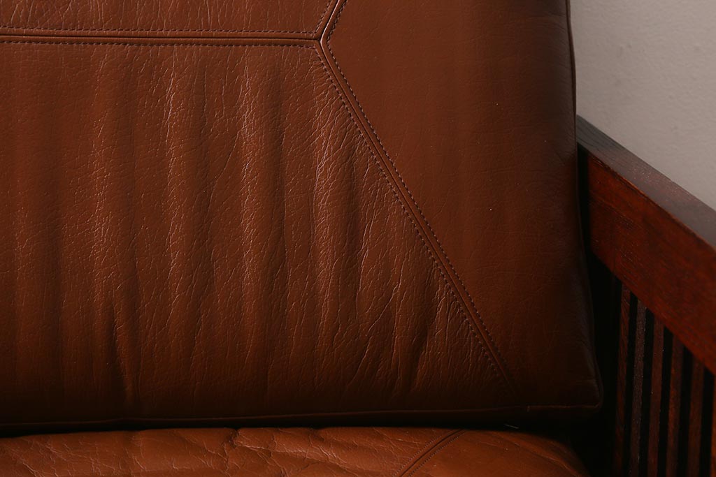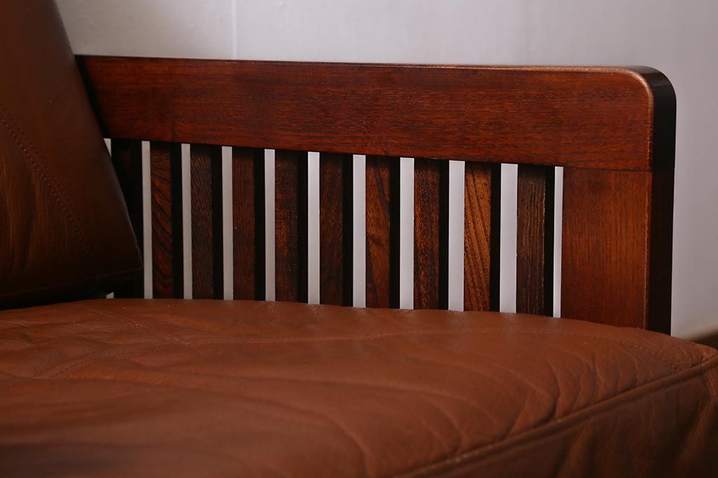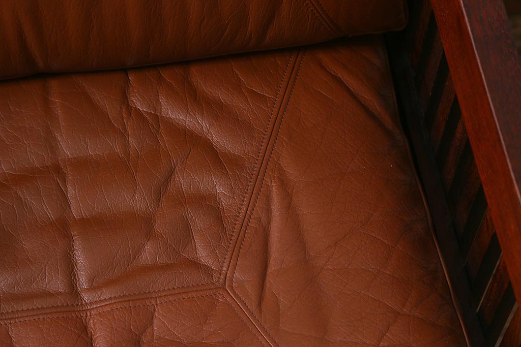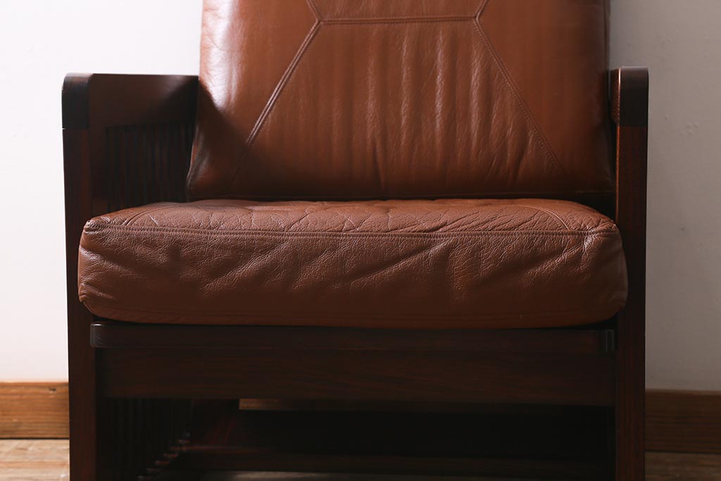 ソファ> 				1人掛けソファ				> 中古 九州民芸家具 本革 総ケヤキ材 漆塗り 上質な雰囲気漂う1人掛けソファ(定価30万円)(1Pソファ、椅子、アームチェア)(R-040925)