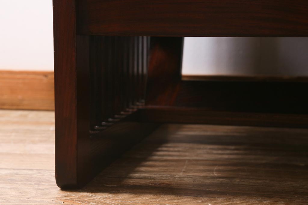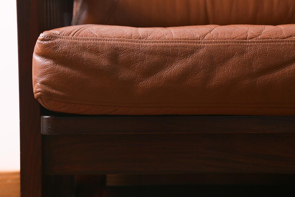 中古 九州民芸家具 本革 総ケヤキ材 漆塗り 上質な雰囲気漂う1人掛けソファ(定価30万円)(1Pソファ、椅子、アームチェア)(R-040925)です。 松本民芸家具など同様、 民芸運動をルーツに高級民芸家具を製造する 九州民芸家具のアームチェアです。 木製部分は全てケヤキ材で作られており、 漆塗りが施されています。 本革の座面と相まって高級感が漂うお品です。 リビングや書斎のくつろぎの椅子としてはもちろん、 同時販売している同じデザインの椅子と、 センターテーブルと組み合わせて応接セットにいかがでしょうか。 【椅子の座り心地について】(身長161cmの女性スタッフの場合) クッションの硬さ:普通 座面の高さ:高い 丁度いい 座面の広さ:広い 丁度いい  アームの位置:高い 丁度いい  背もたれの位置:背中全体 座面までの高さは座っていない状態の一番高い部分を測定しています。 弊社工房にて専門の職人が品質チェック・補修を行い、強度を高めていますので、ぐらつきもなく、安心してお使いいただけます。 使用感も少なく、中古品としてはとても状態の良いきれいなお品です。 今回同時出品している R-040940、 R-040926、 R-040927、 R-040928と合わせると34、35枚目の画像のようになります。 使用上問題のあるダメージはありません。 ■アームまでの高さ 550mm ■重量 約18kg