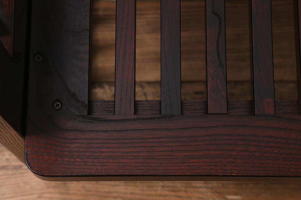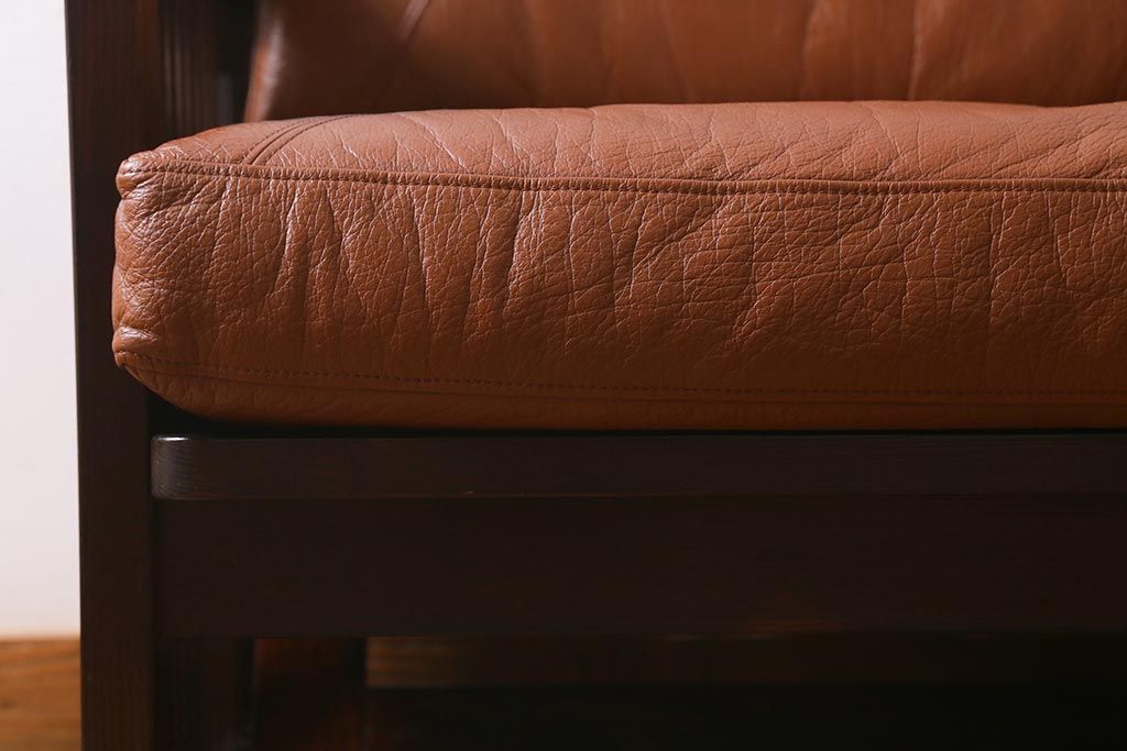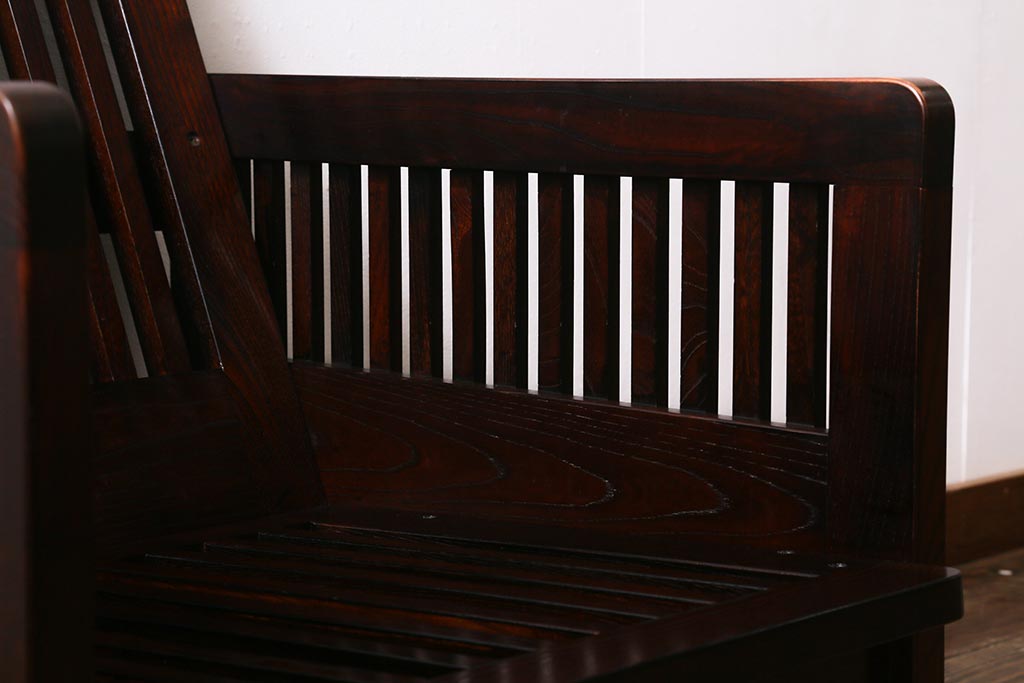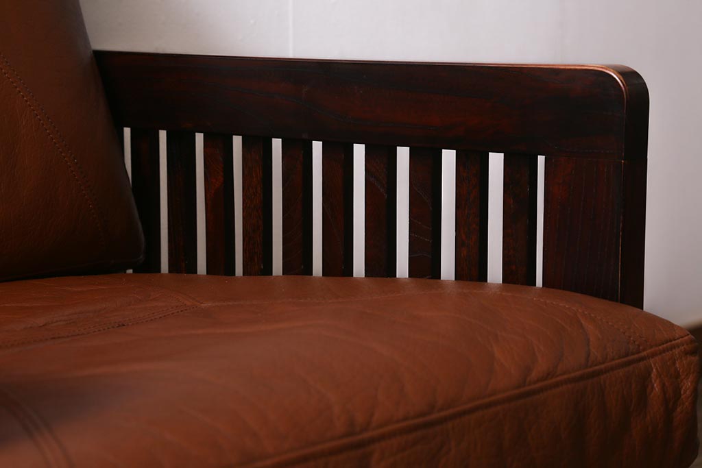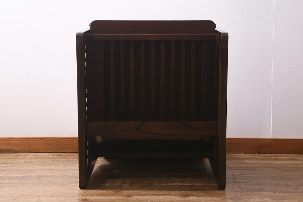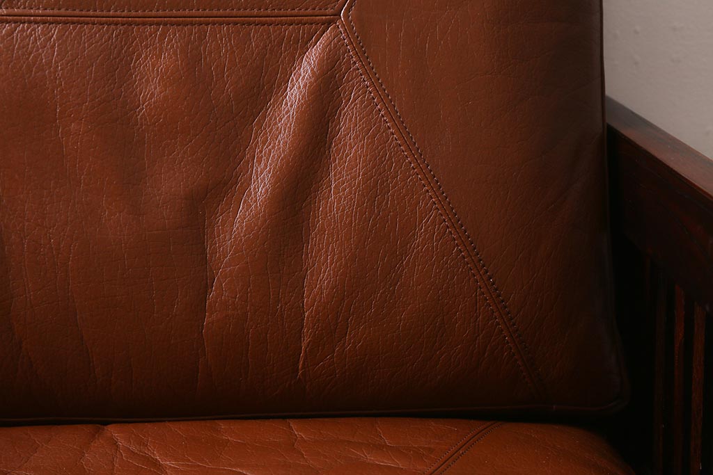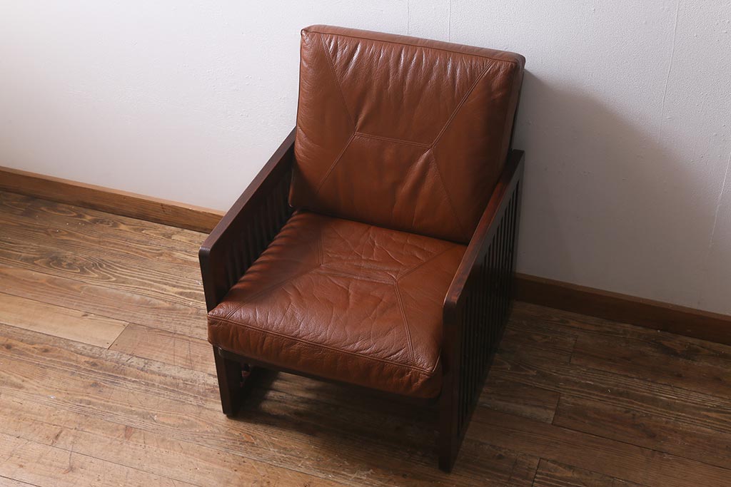 民芸家具				> 中古 九州民芸家具 本革 総ケヤキ材 漆塗り 上質な雰囲気漂う1人掛けソファ(定価30万円)(1Pソファ、椅子、アームチェア)(R-040927)