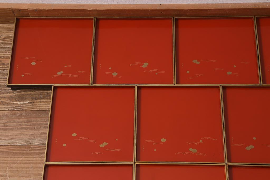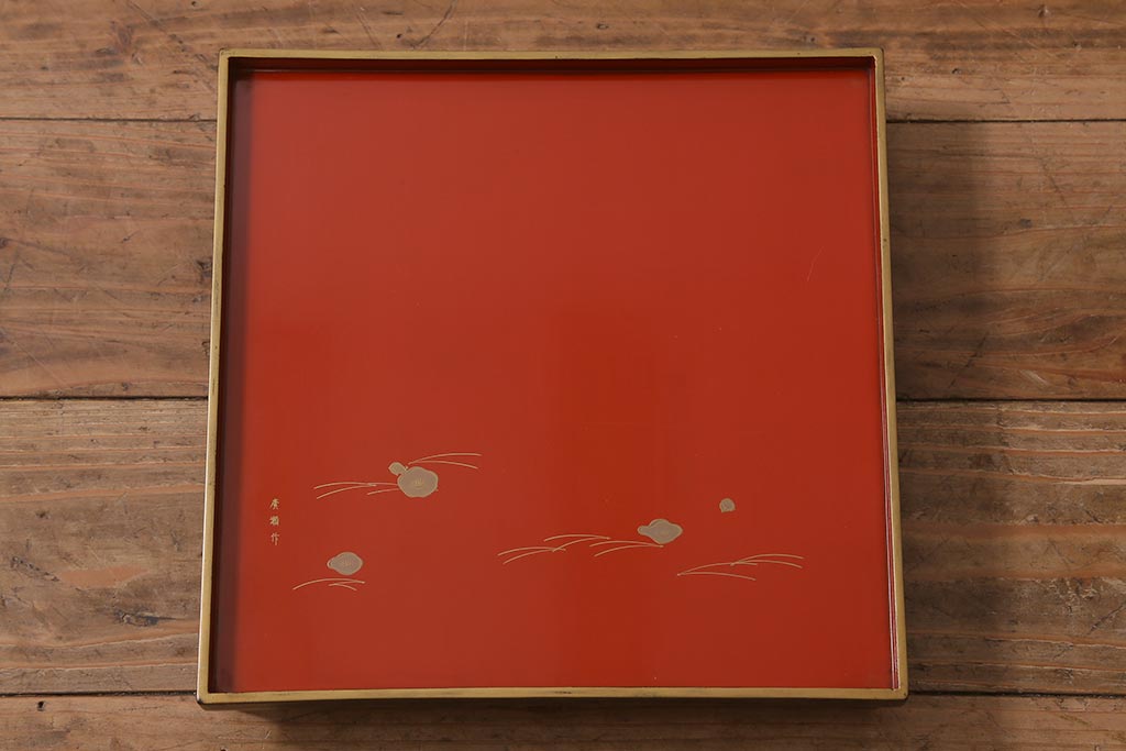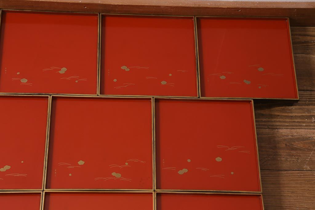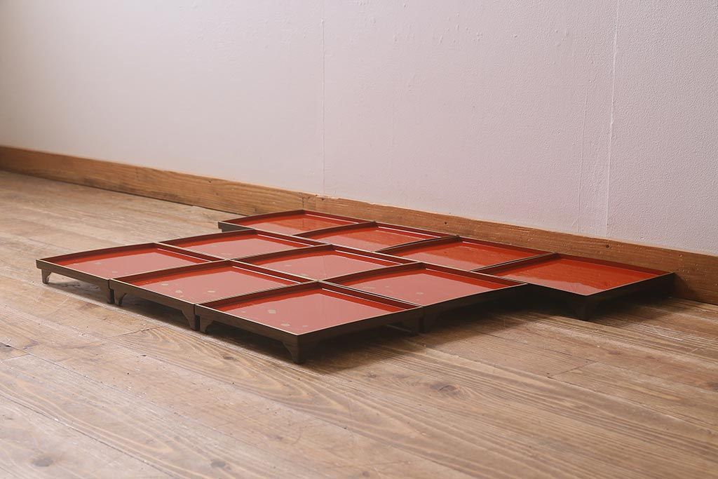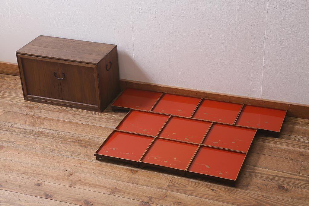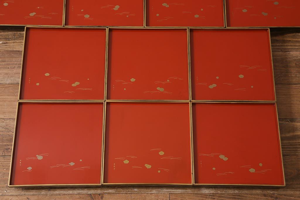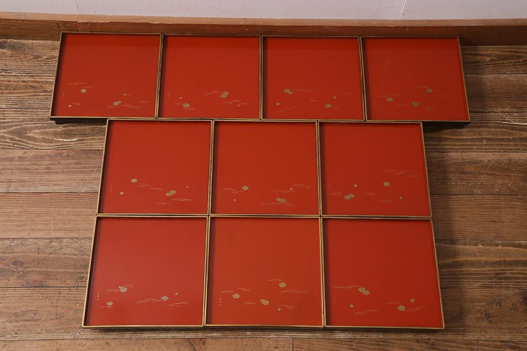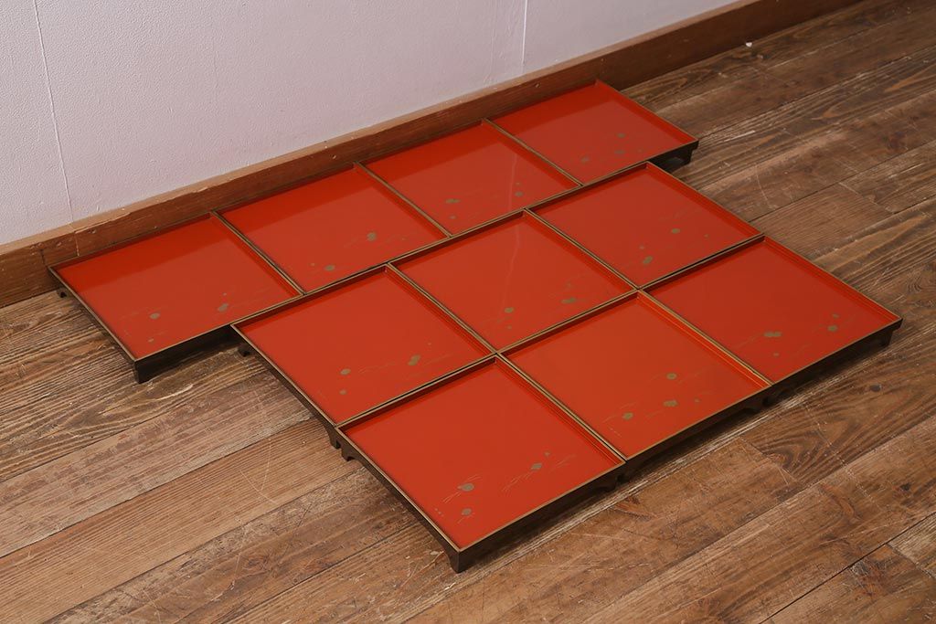アンティーク雑貨 明治大正 廣瀬作 輪島塗木製蒔絵膳10枚(共箱、漆器)(R-041163)