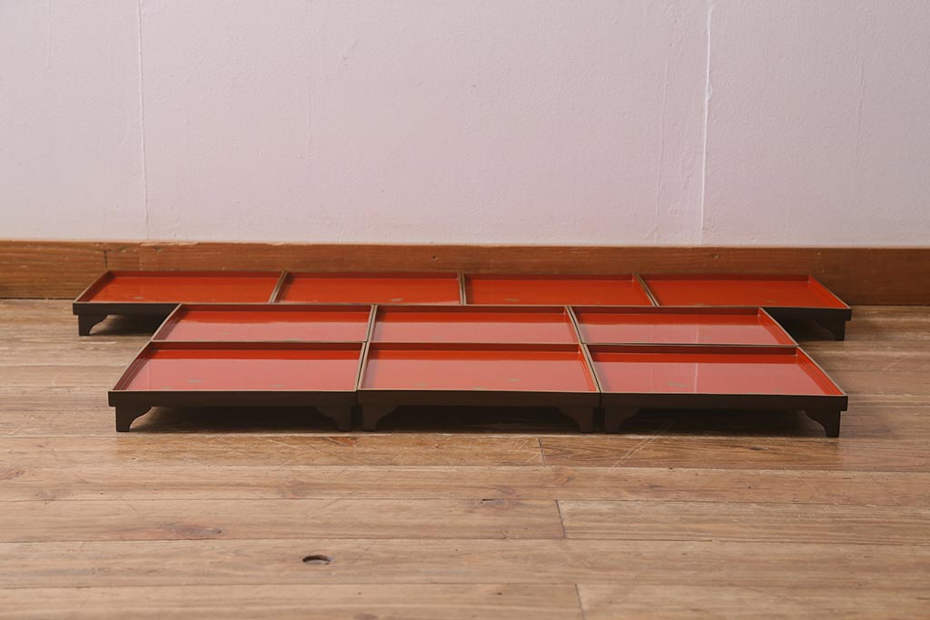 ラフジュ工房> 和食器・茶道具> お盆・お膳・お重 > アンティーク雑貨 明治大正 廣瀬作 輪島塗木製蒔絵膳10枚(共箱、漆器)(R-041163)