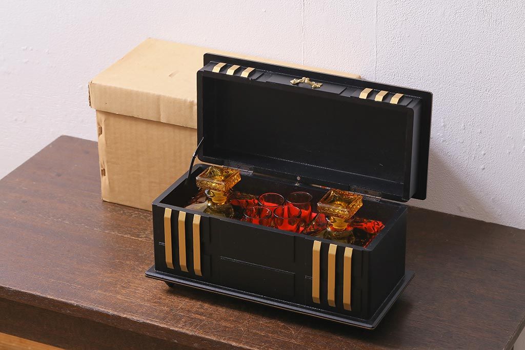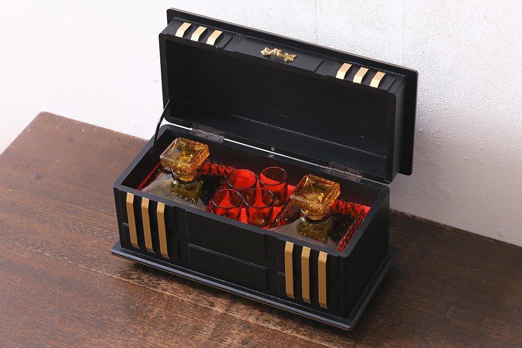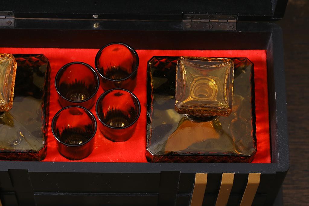 ラフジュ工房> 和食器・茶道具> 酒器 > ヴィンテージ雑貨 箱付き PASSED JGIA アンバーガラスのデキャンタとショットグラスのセット(酒器、オルゴール、ビンテージ)(R-041336)