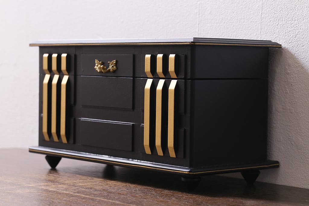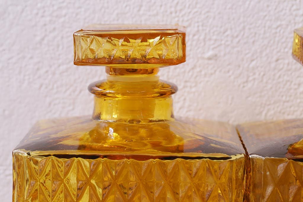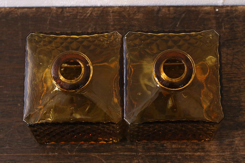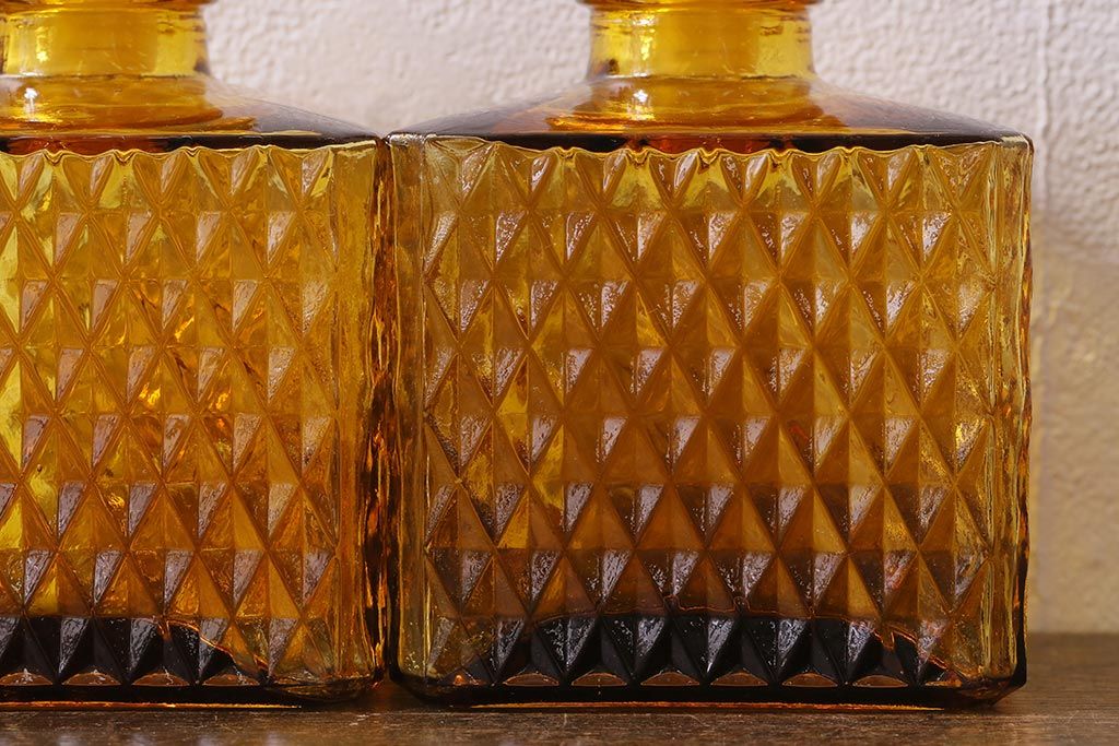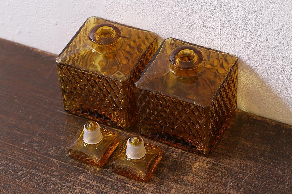 ヴィンテージ雑貨 箱付き PASSED JGIA アンバーガラスのデキャンタとショットグラスのセット(酒器、オルゴール、ビンテージ)(R-041336)