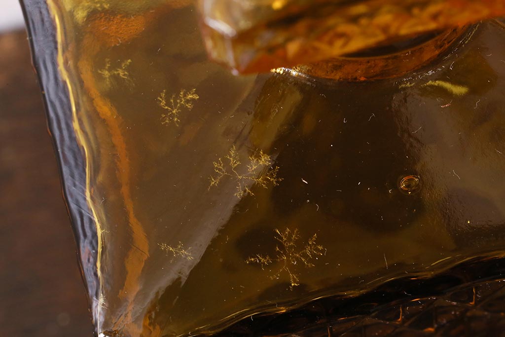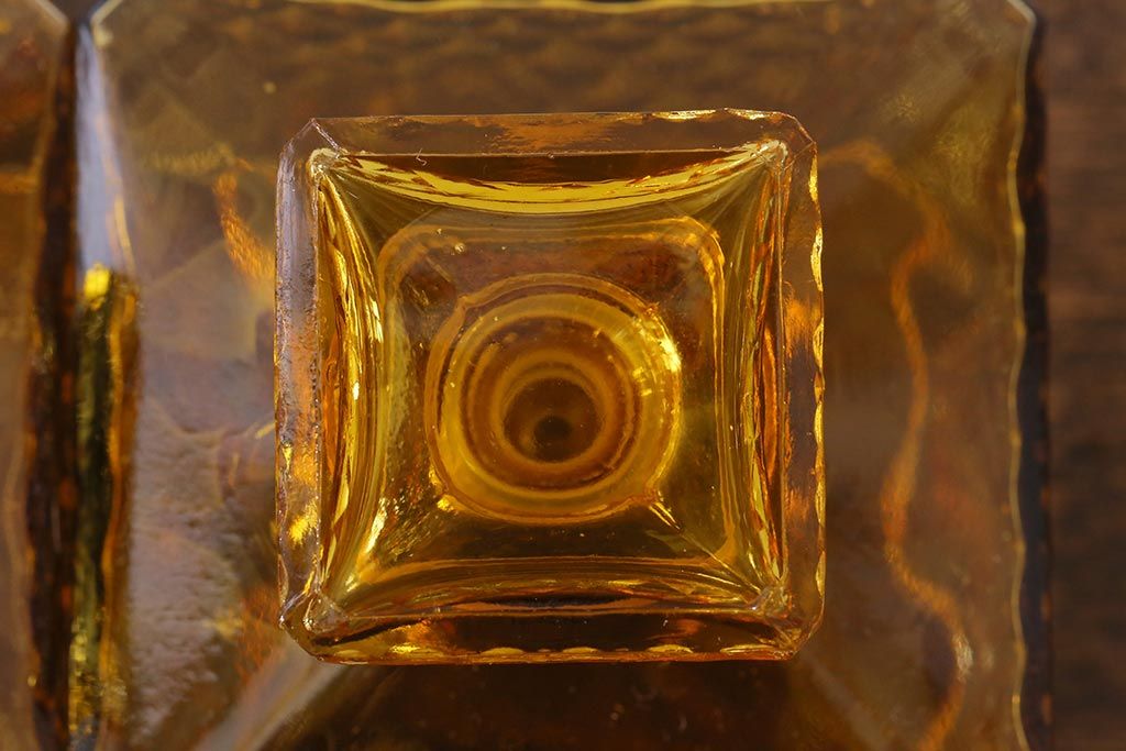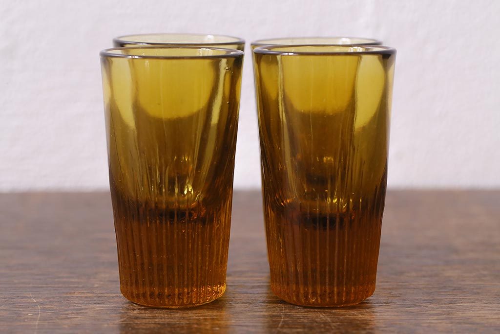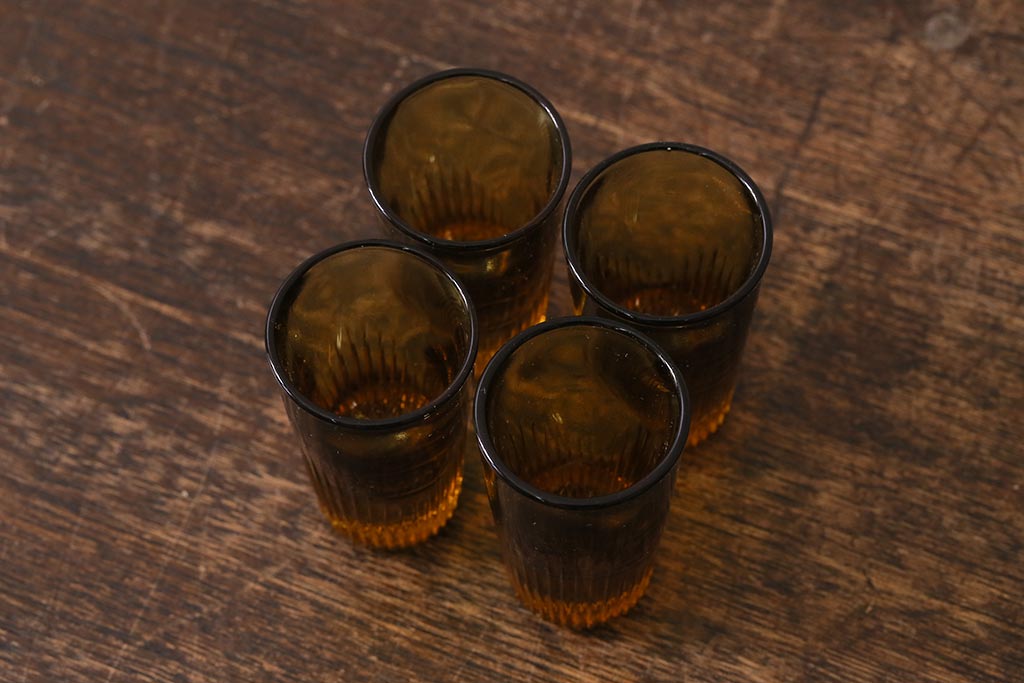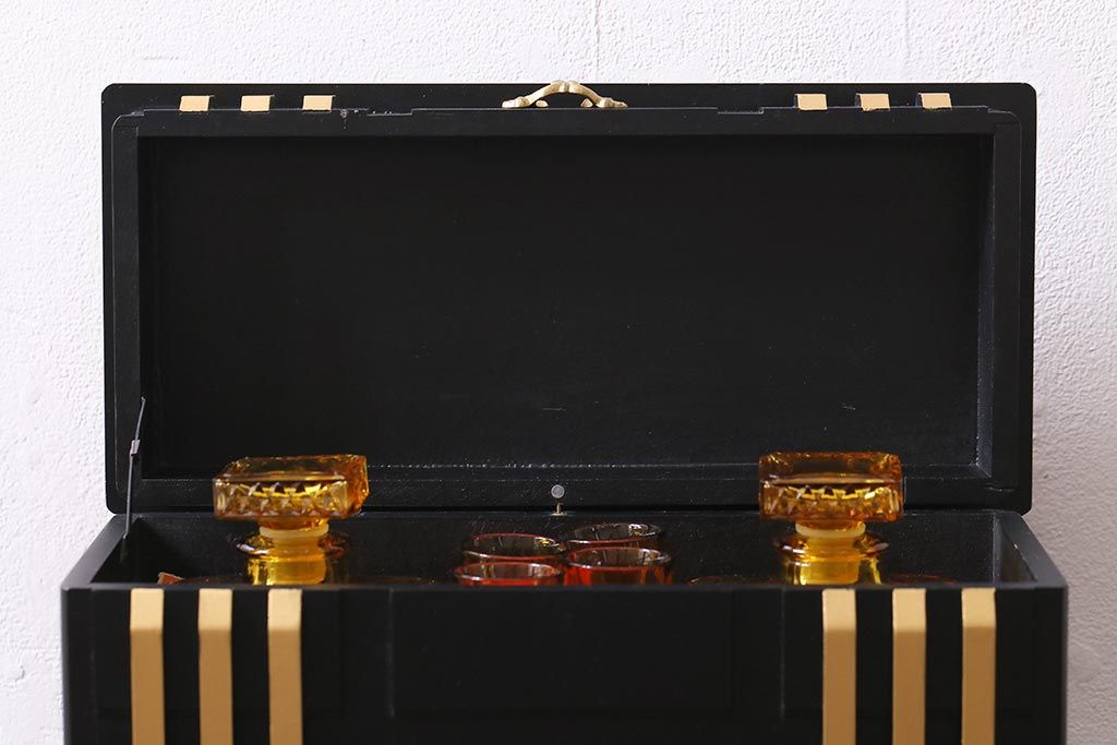 ラフジュ工房> 雑貨> ガラス瓶 > ヴィンテージ雑貨 箱付き PASSED JGIA アンバーガラスのデキャンタとショットグラスのセット(酒器、オルゴール、ビンテージ)(R-041336)