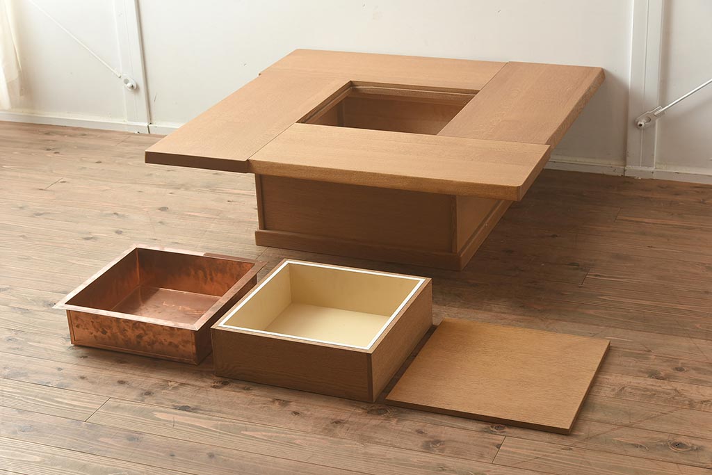 テーブル> 座卓 > 在庫未使用品 IDC大塚家具 藤沢木工 無垢楡材(ニレ) ライト いろり(囲炉裏、座卓、火鉢)(定価約16万円)(R-041687)