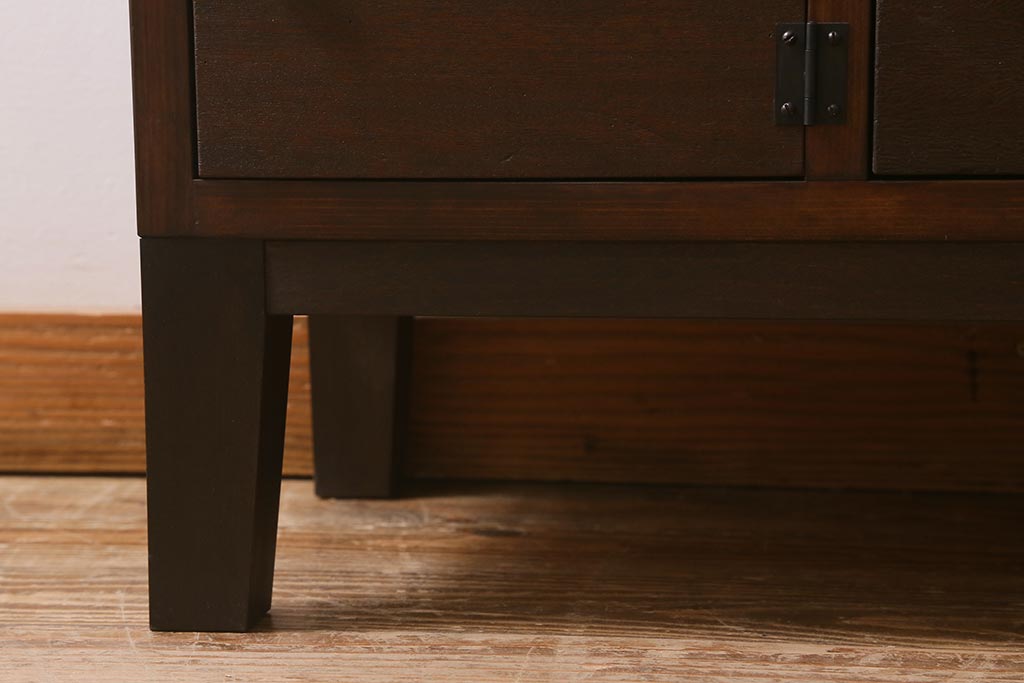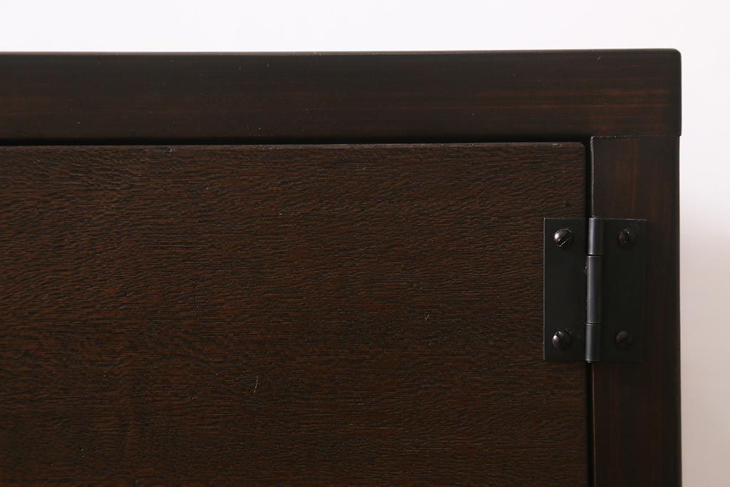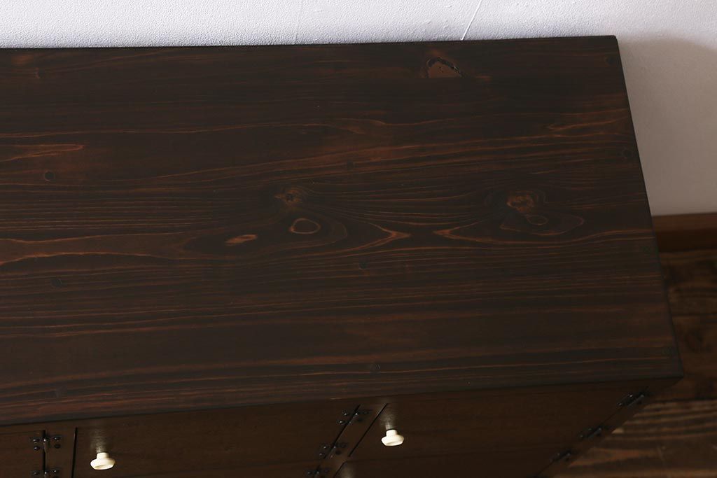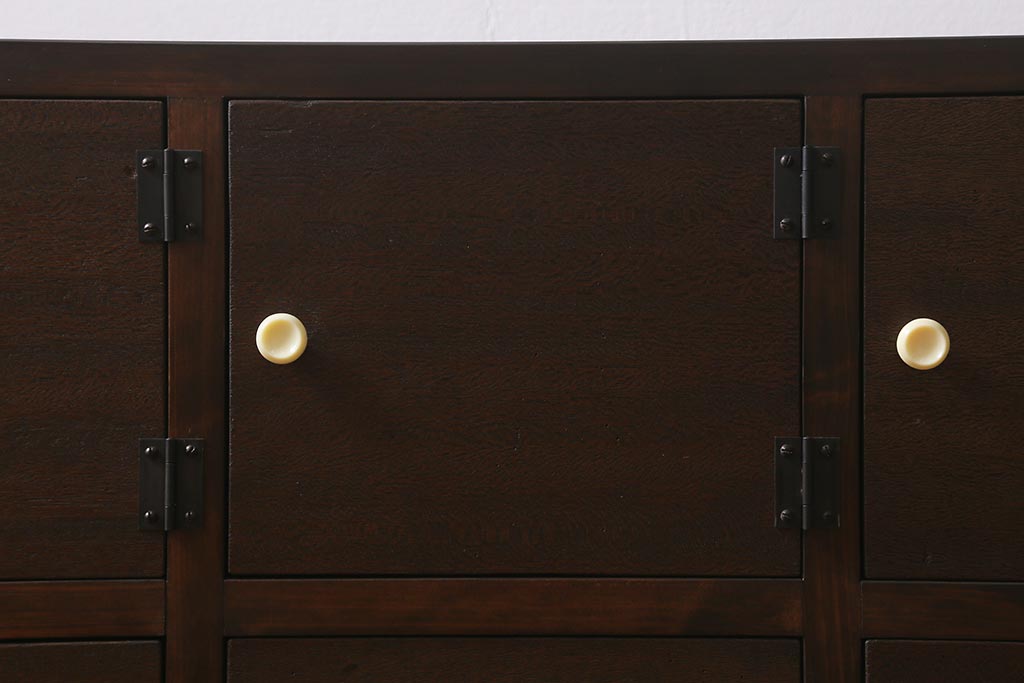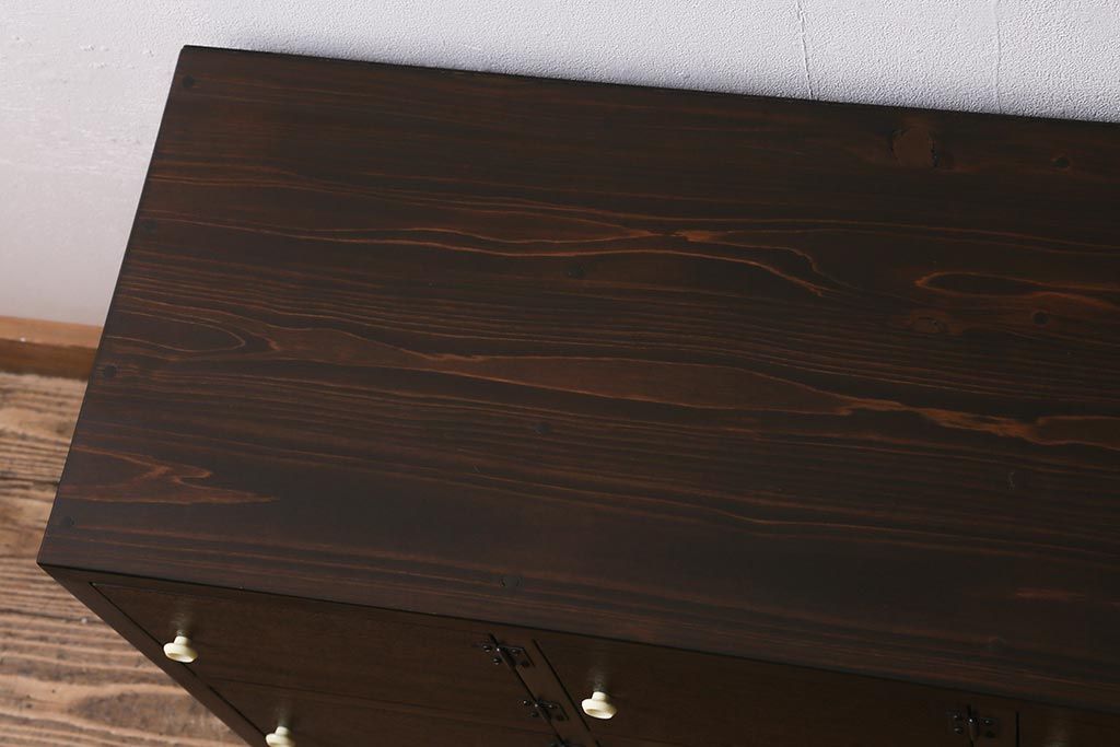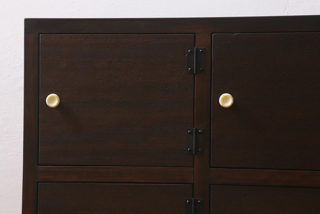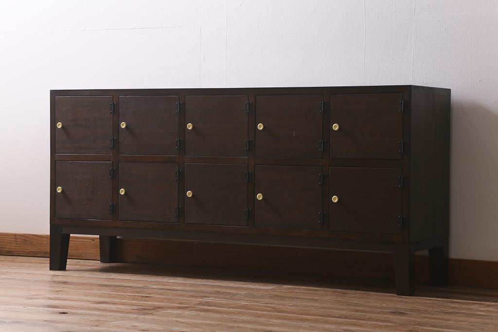 ラフジュ工房> キャビネット・戸棚> テレビ台・ローボード > ラフジュ工房オリジナル 古材リメイク レトロな雰囲気が魅力的な扉付きマス目棚・右開き(収納棚、ロッカー、下駄箱)(R-042044)