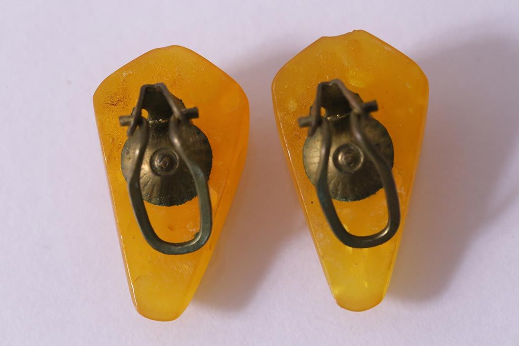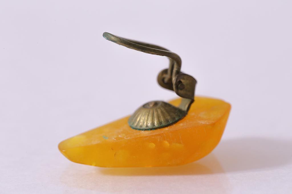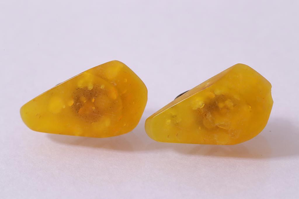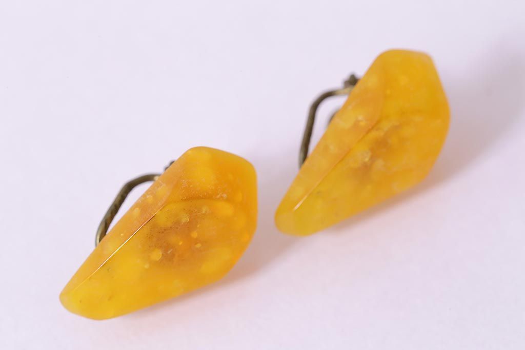 アンティーク雑貨 和製アンティーク イエローストーンがレトロなイヤリング(アクセサリー)(R-041779)