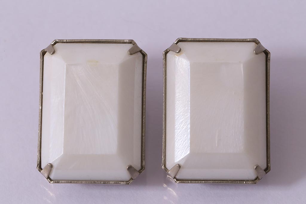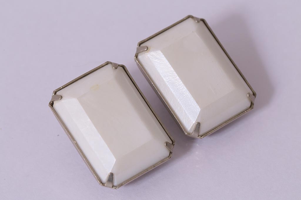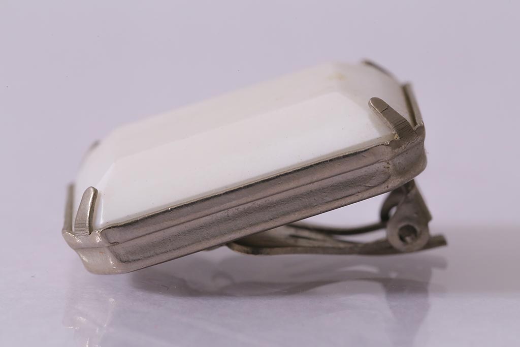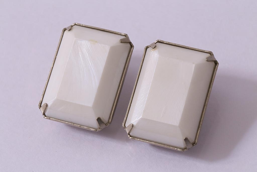 ラフジュ工房> アクセサリー> イヤリング > ヴィンテージ雑貨 昭和期 ホワイトストーンが爽やかなイヤリング(アクセサリー、ビンテージ)(R-041782)