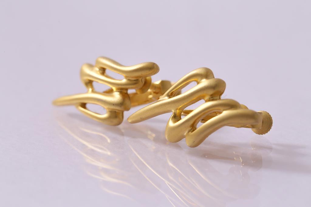 ラフジュ工房> 雑貨 > ヴィンテージ雑貨 昭和期 UNICON マットなゴールドカラーがエレガントなイヤリング(アクセサリー、ビンテージ)(R-041787)