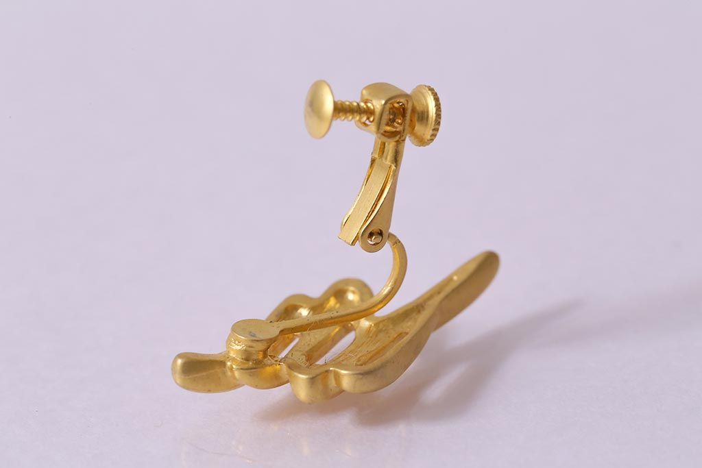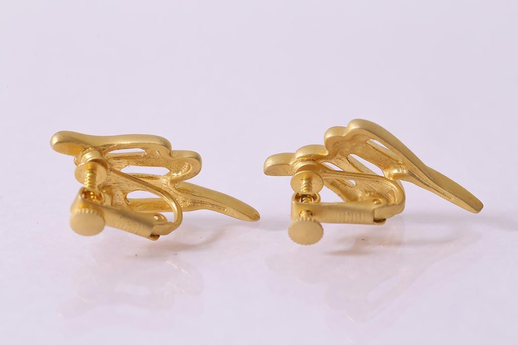 ヴィンテージ雑貨 昭和期 UNICON マットなゴールドカラーがエレガントなイヤリング(アクセサリー、ビンテージ)(R-041787)