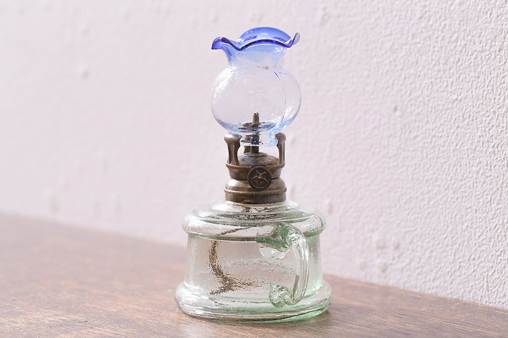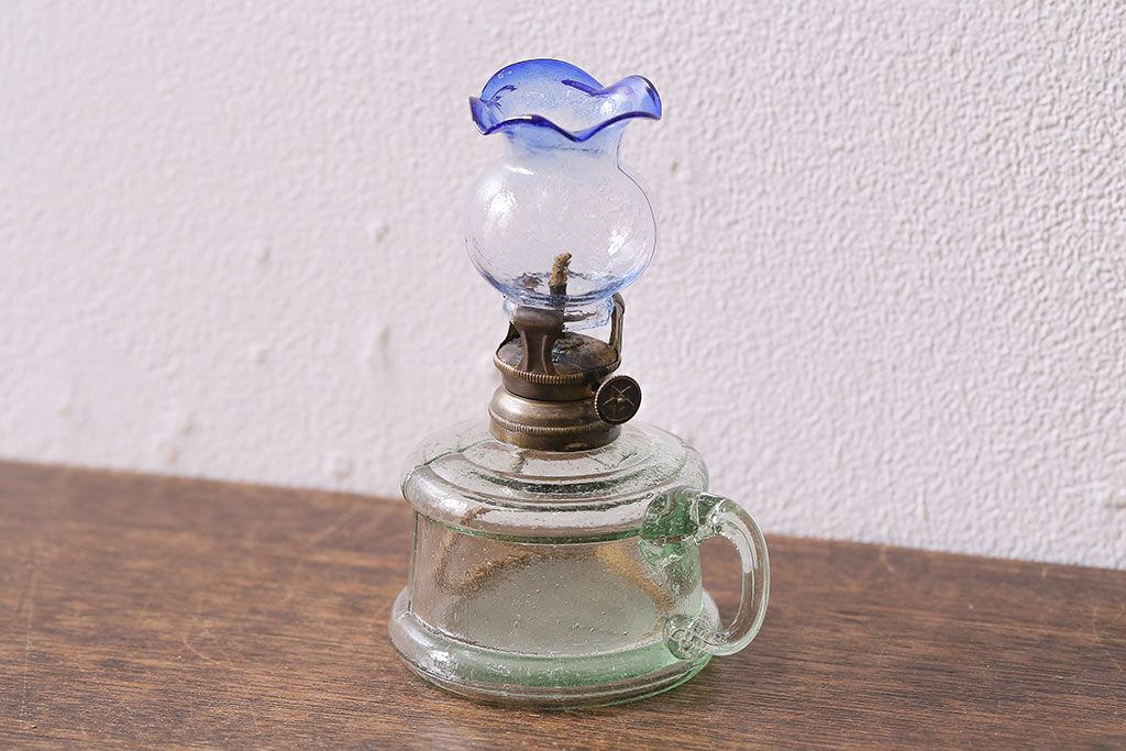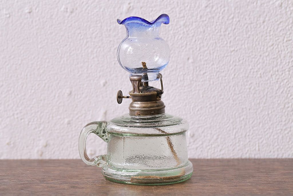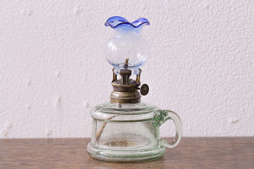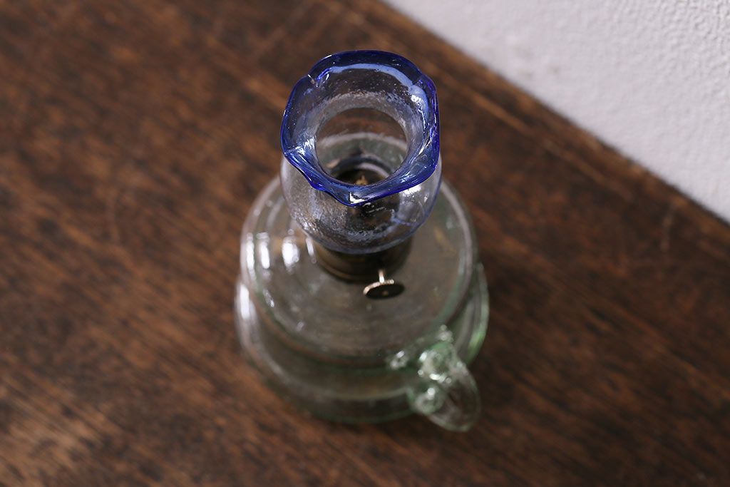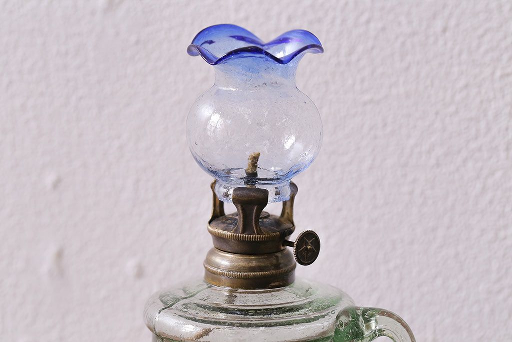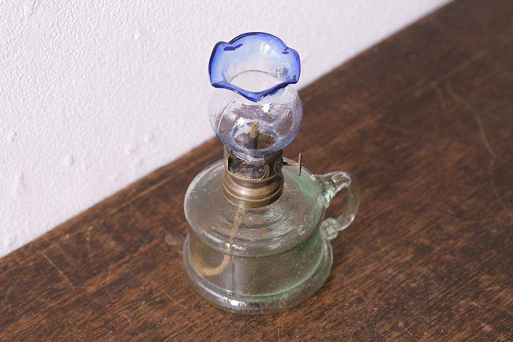 アンティーク雑貨 明治大正期 レトロ 青縁フリル 豆ランプ(金魚鉢ホヤ、オイルランプ、和ガラス)(R-041759)です。