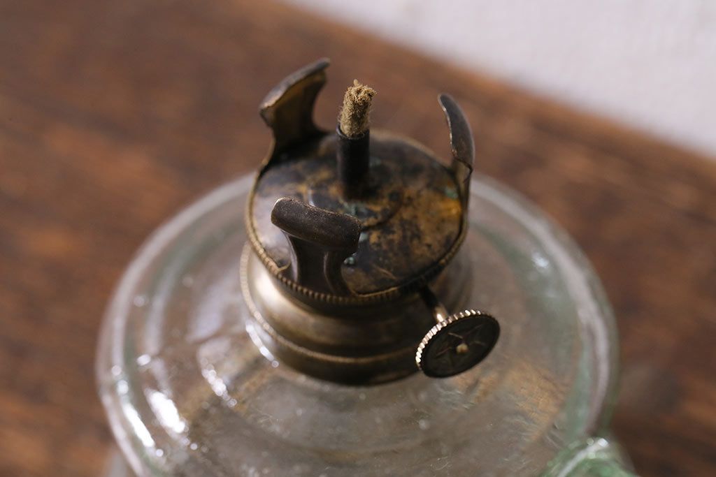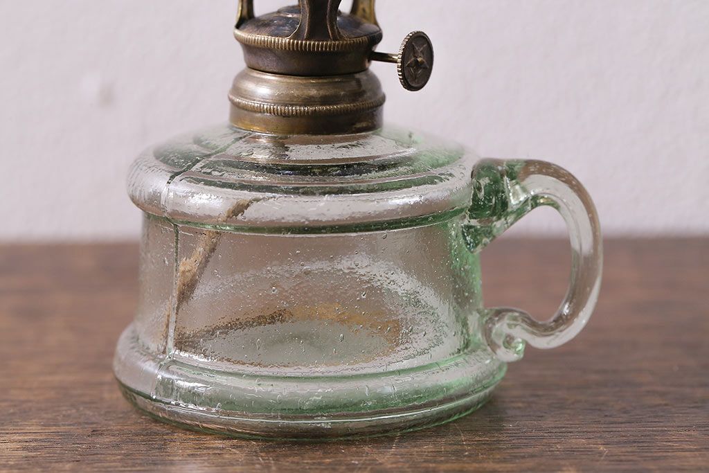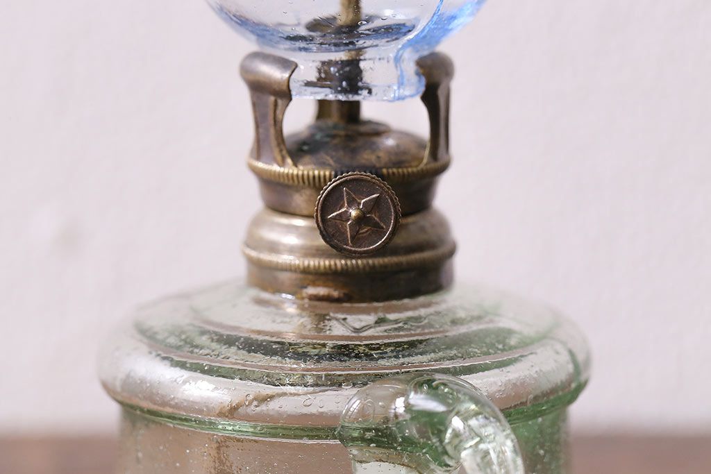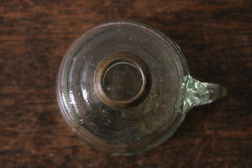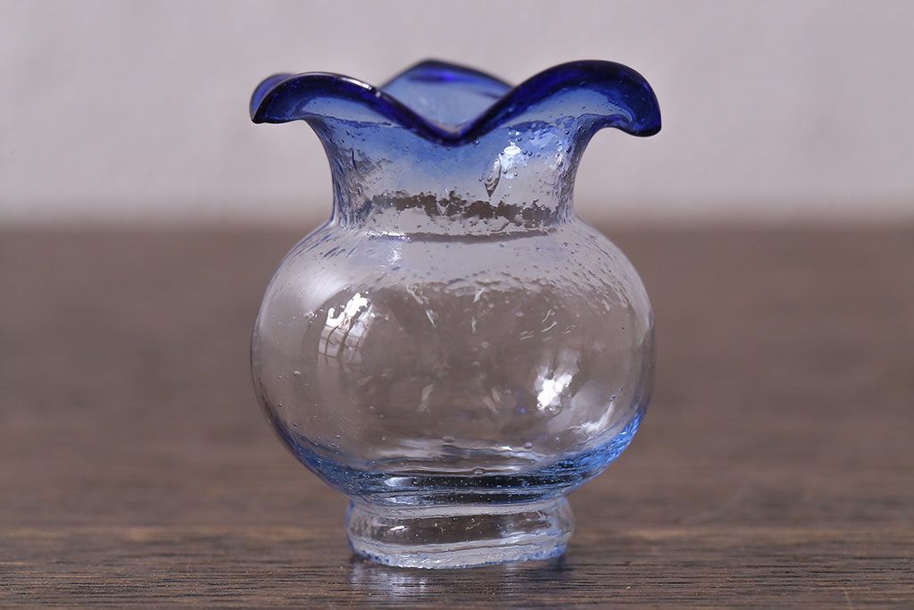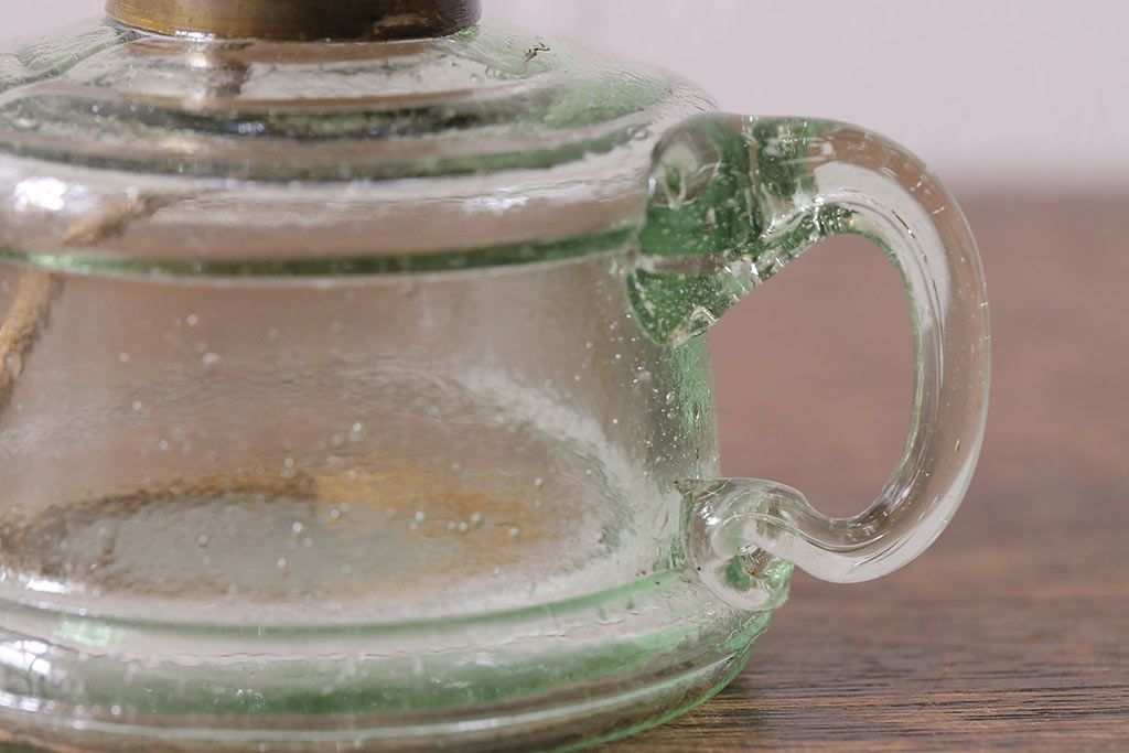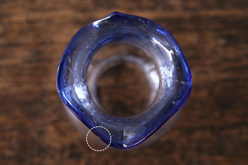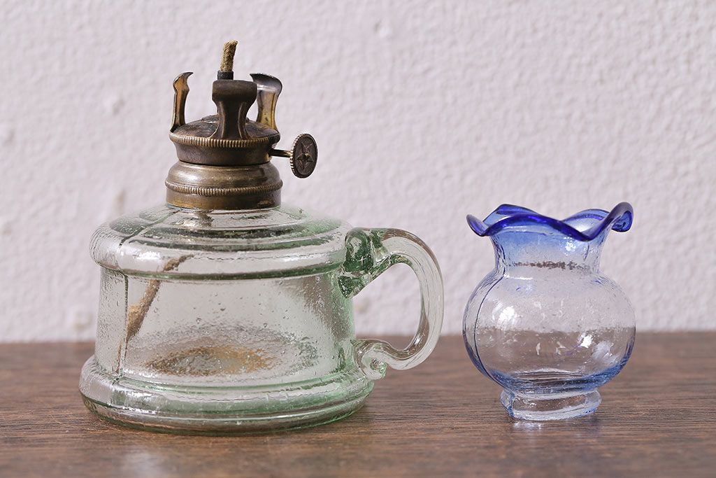アンティーク雑貨 明治大正期 レトロ 青縁フリル 豆ランプ(金魚鉢ホヤ、オイルランプ、和ガラス)(R-041759)です。