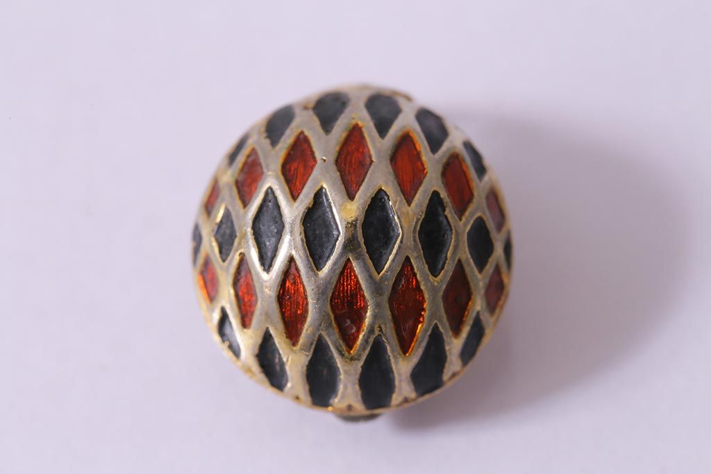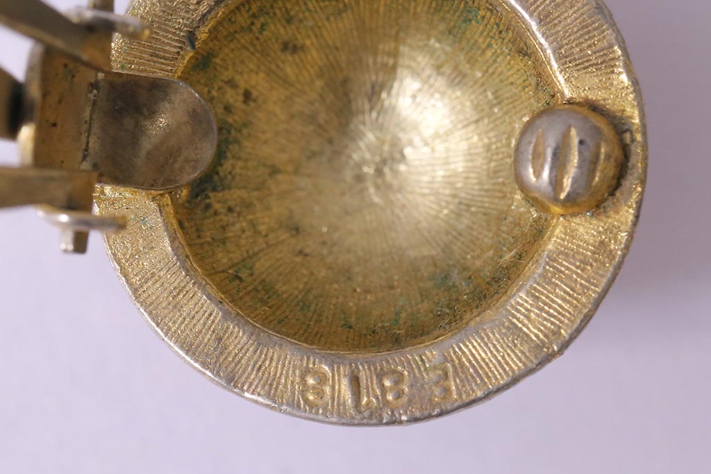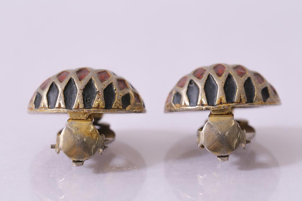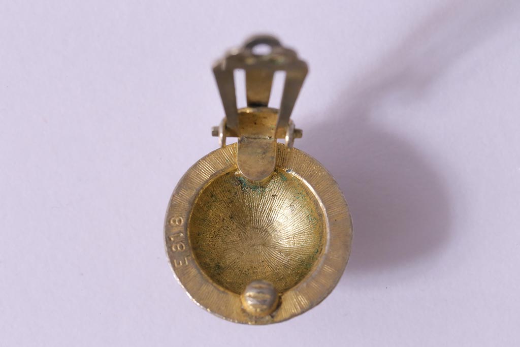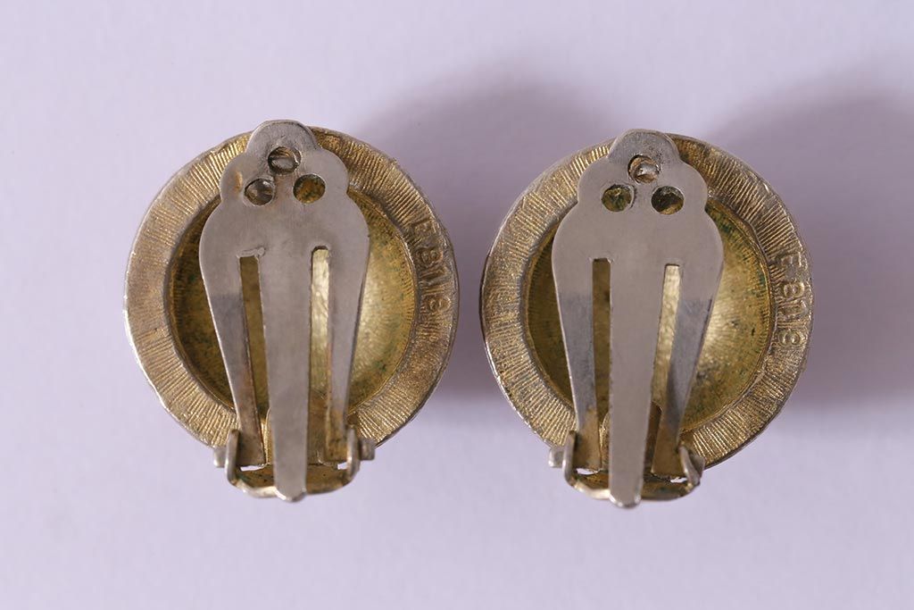 ヴィンテージ 赤 黒 ゴールド レトロ ドーム型イヤリング(アクセサリー、ビンテージ)(R-041793)