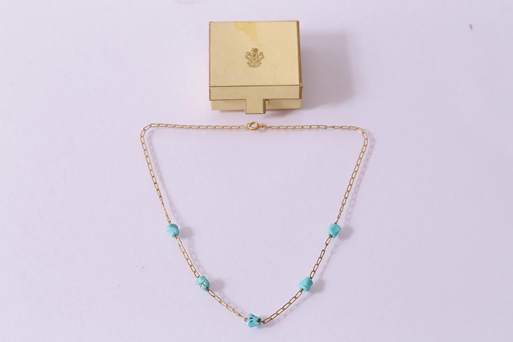 ラフジュ工房> 雑貨 > ヴィンテージ BURMA ターコーイズ ゴールドに青い石がよく映えるチョーカー(ネックレス、ペンダント、アクセサリー、ビンテージ)(R-041916)