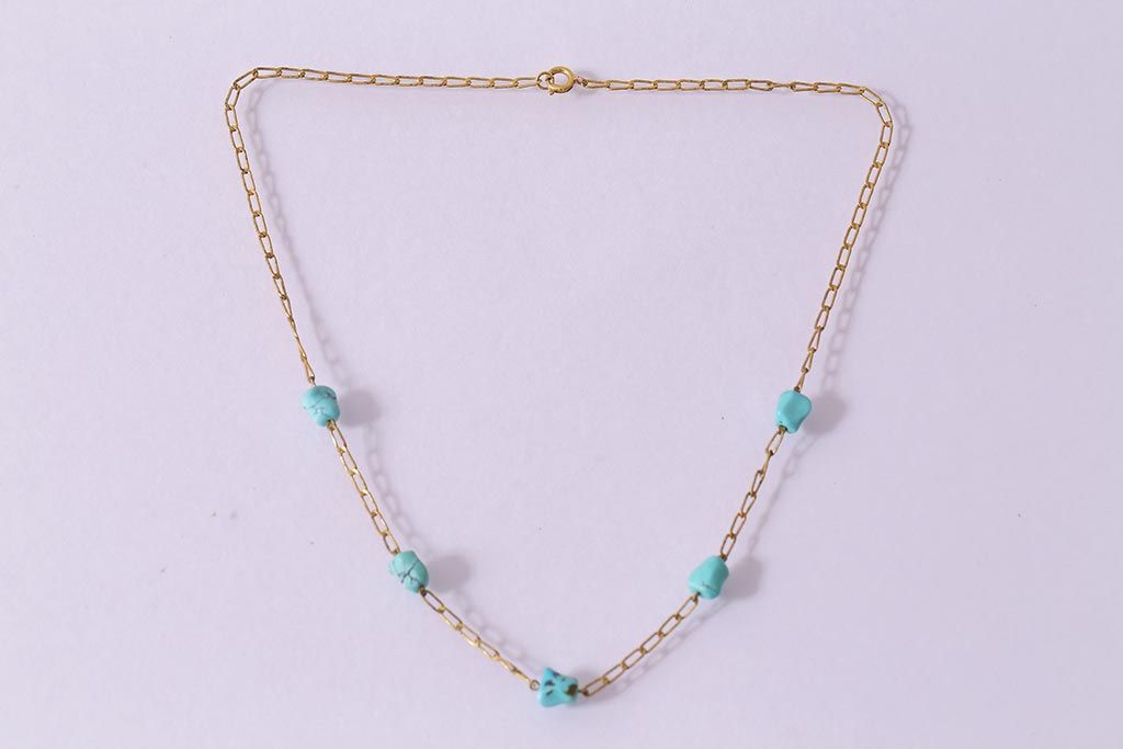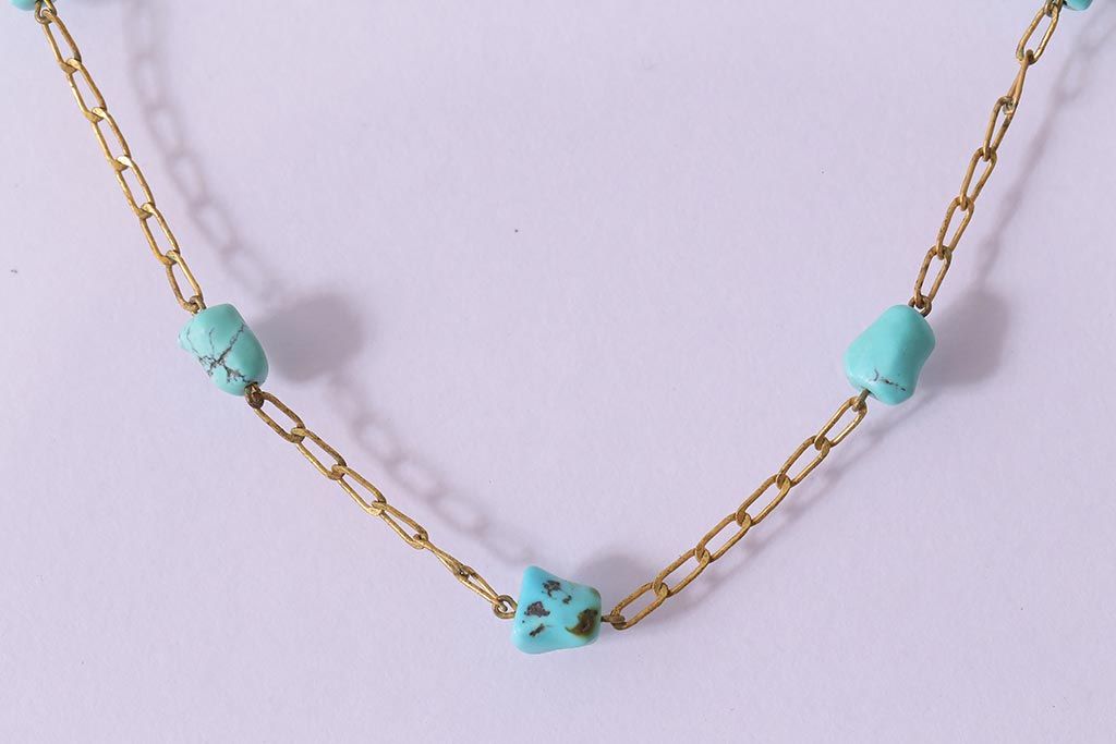 ヴィンテージ BURMA ターコーイズ ゴールドに青い石がよく映えるチョーカー(ネックレス、ペンダント、アクセサリー、ビンテージ)(R-041916)