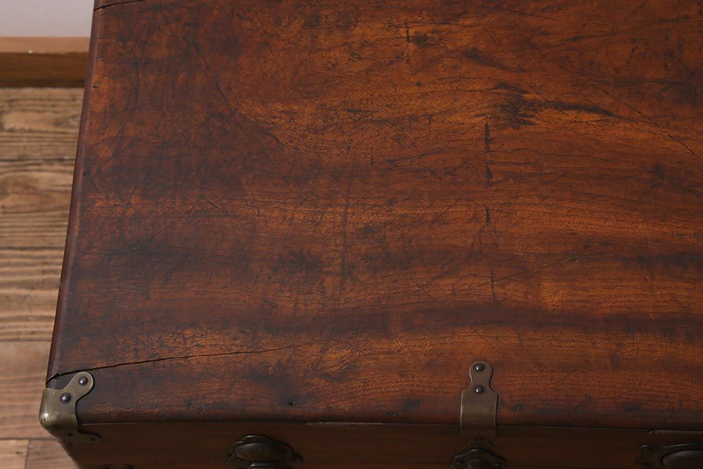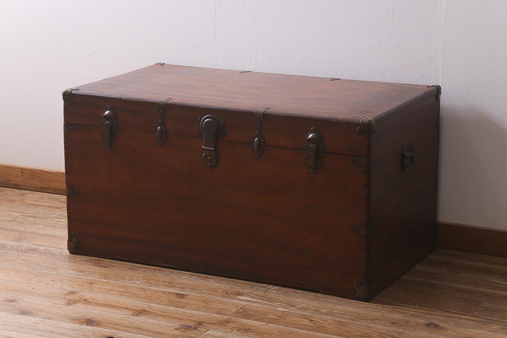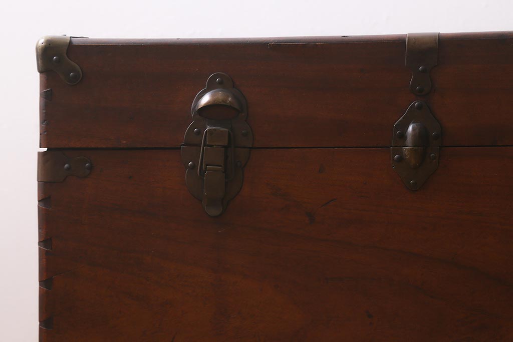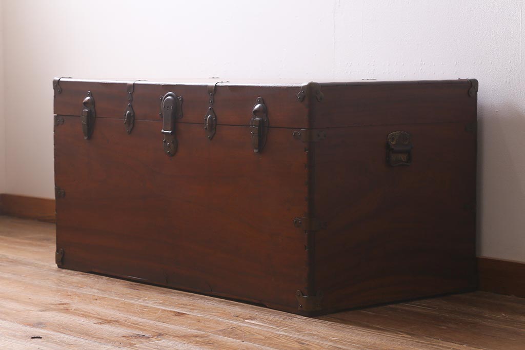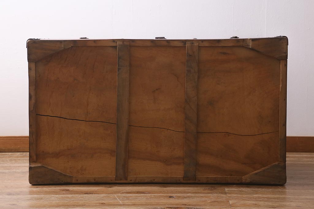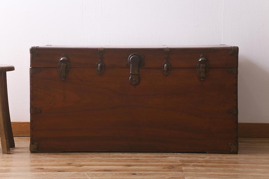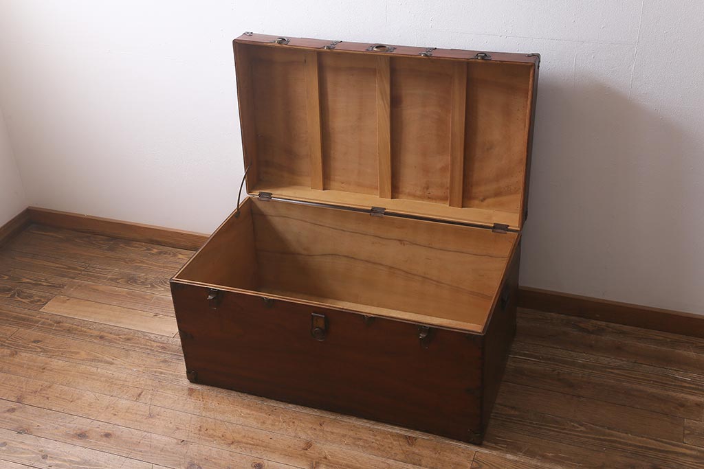 小物収納・トランク > イギリスアンティーク 楠木材 センターテーブルにもなる! レトロな雰囲気漂う大型の木製トランク(木箱、衣装箱、収納箱、長持)(R-042035)