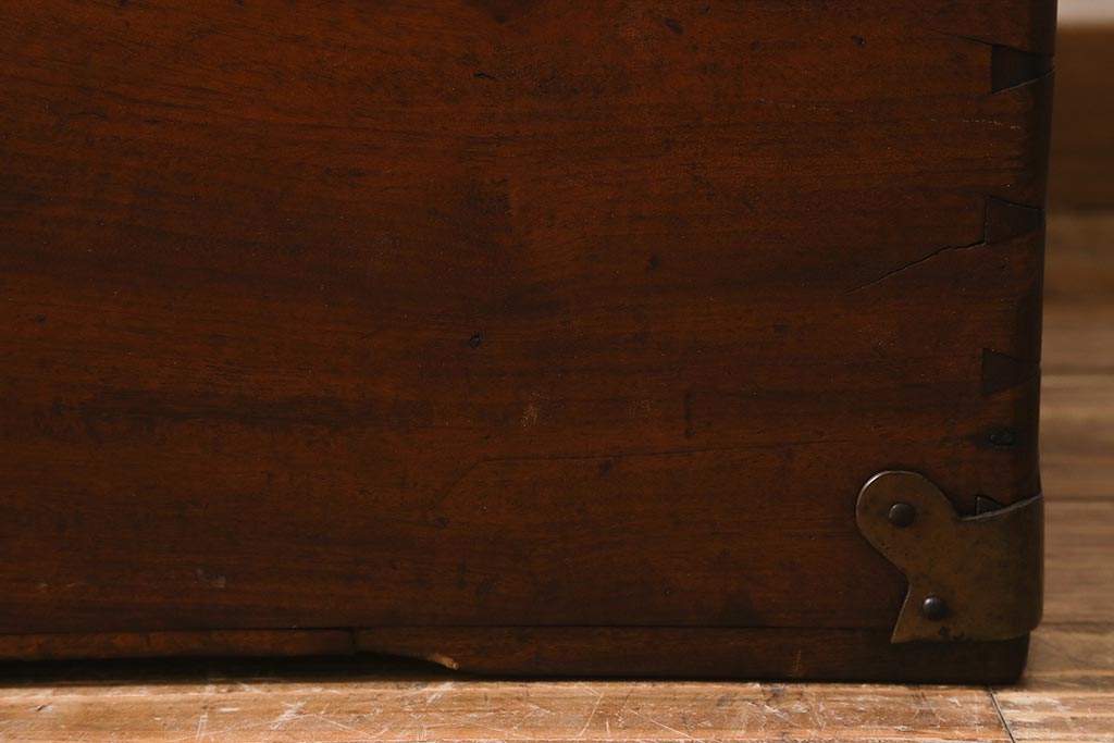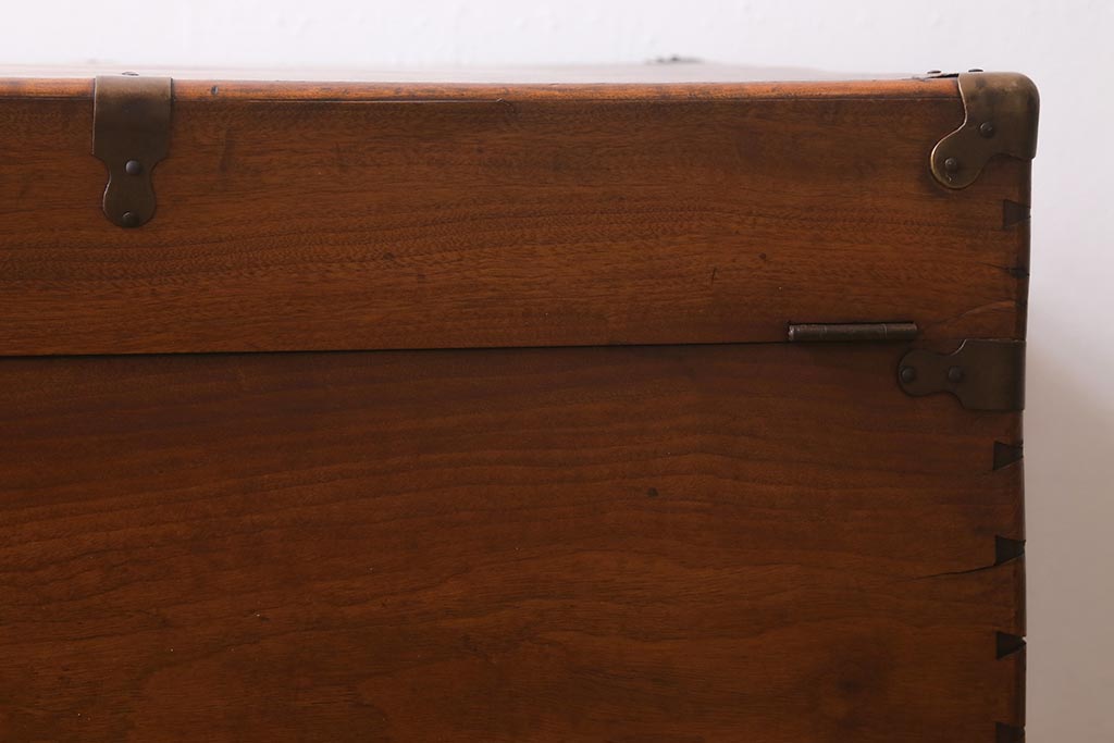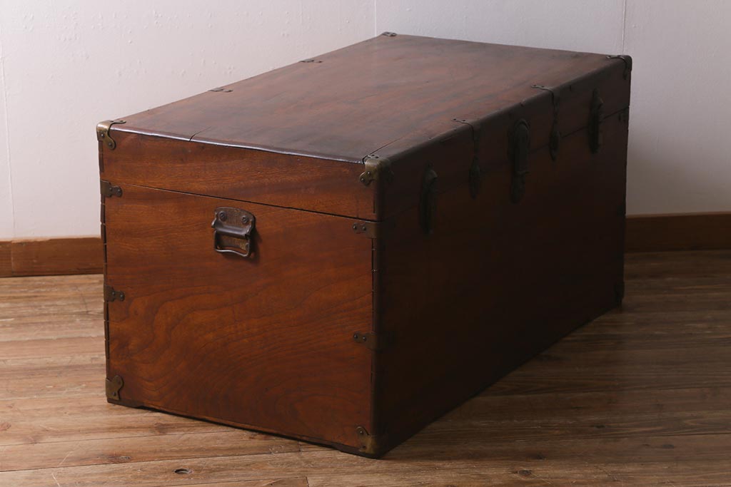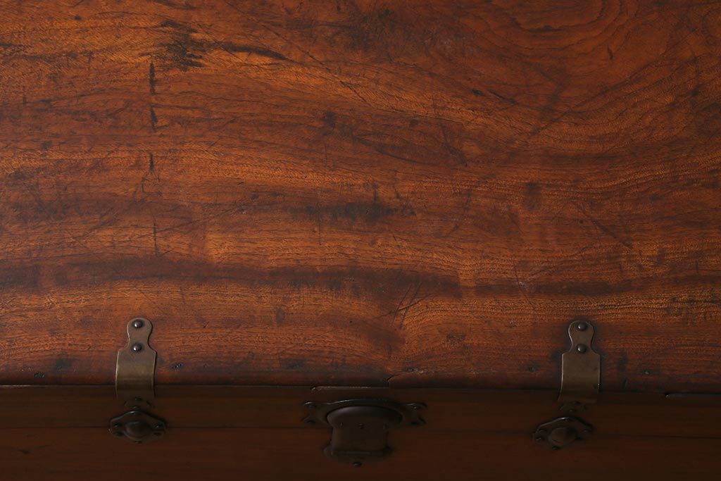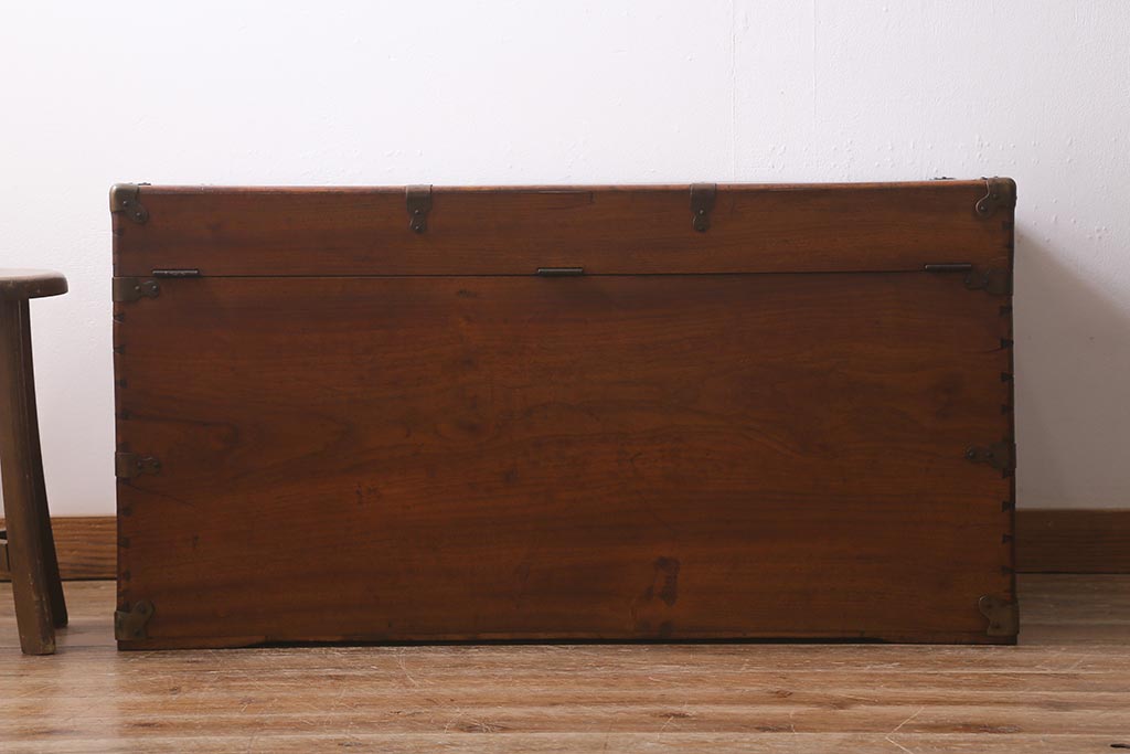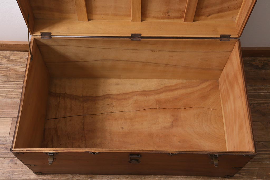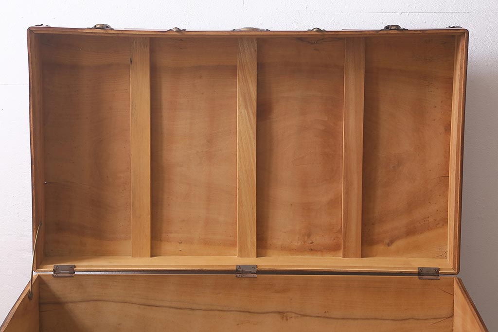 小物収納・トランク > イギリスアンティーク 楠木材 センターテーブルにもなる! レトロな雰囲気漂う大型の木製トランク(木箱、衣装箱、収納箱、長持)(R-042035)