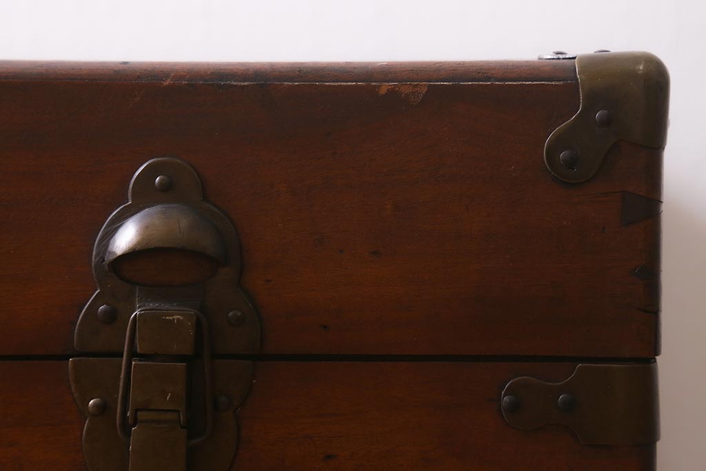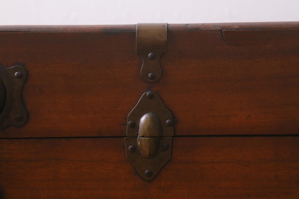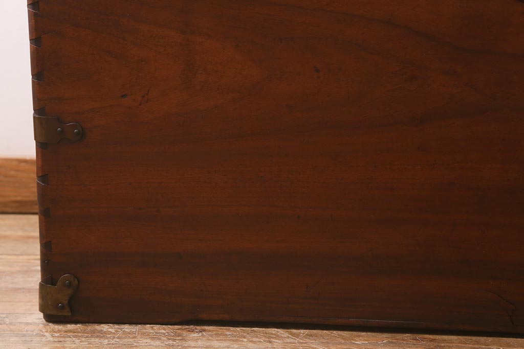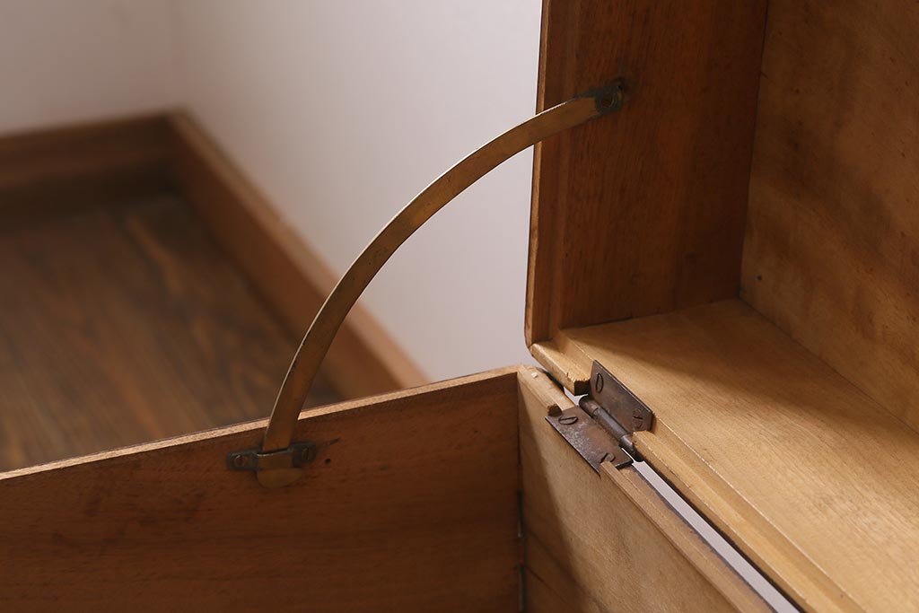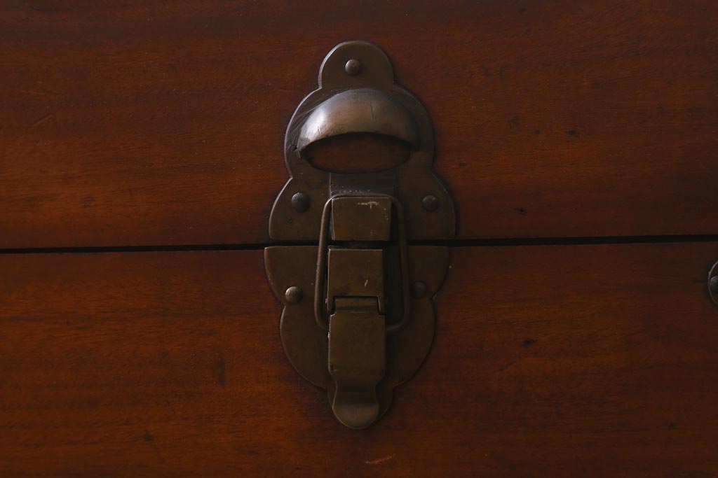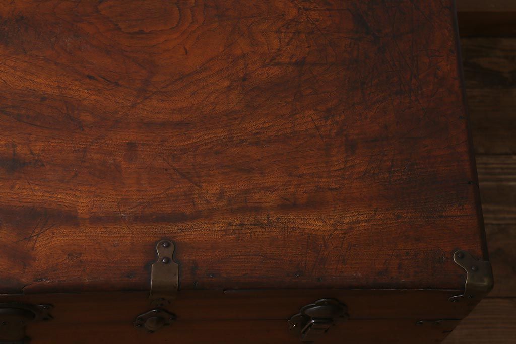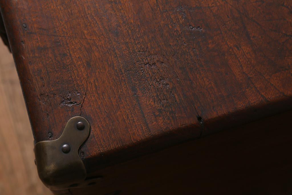 小物収納・トランク > イギリスアンティーク 楠木材 センターテーブルにもなる! レトロな雰囲気漂う大型の木製トランク(木箱、衣装箱、収納箱、長持)(R-042035)