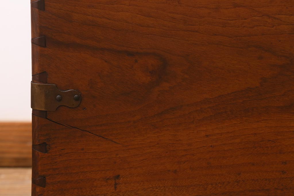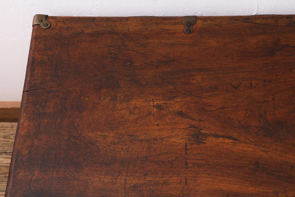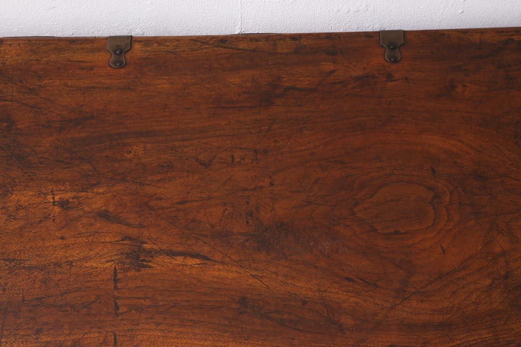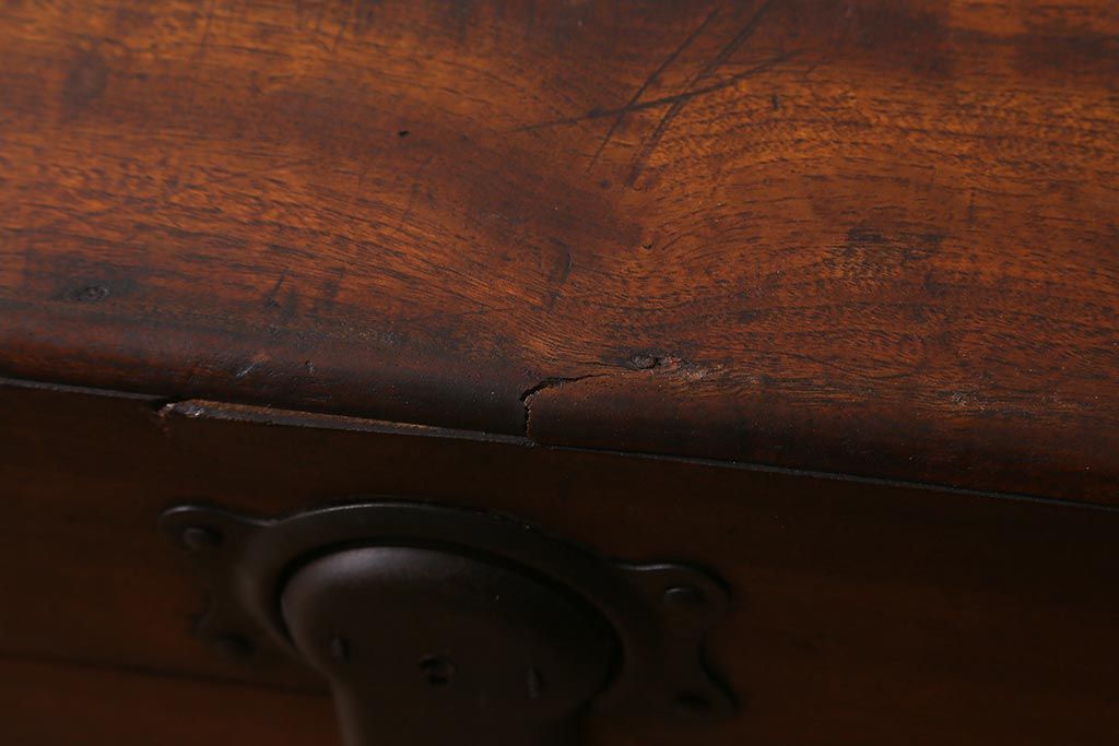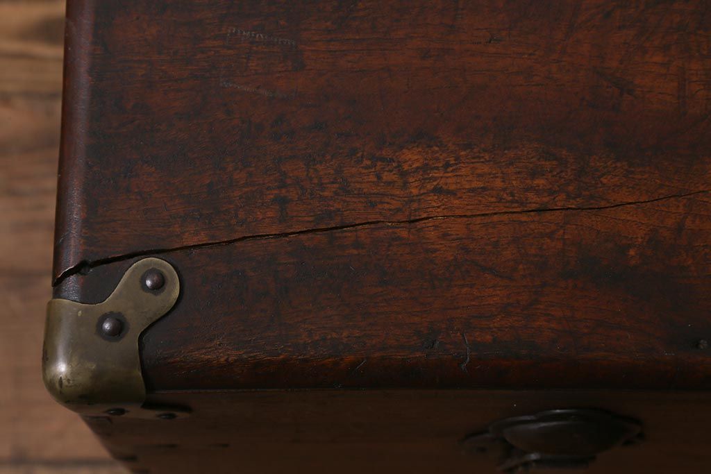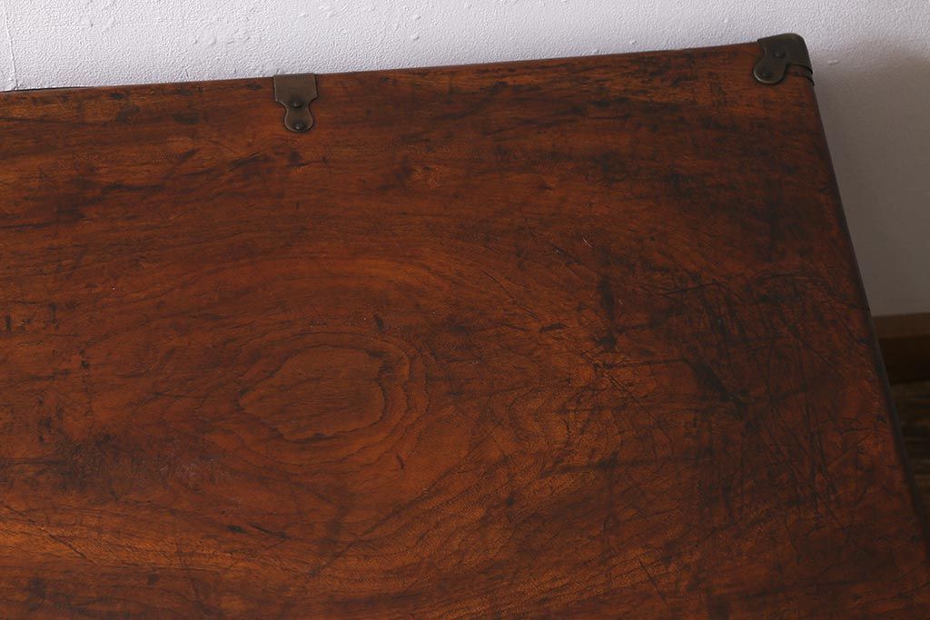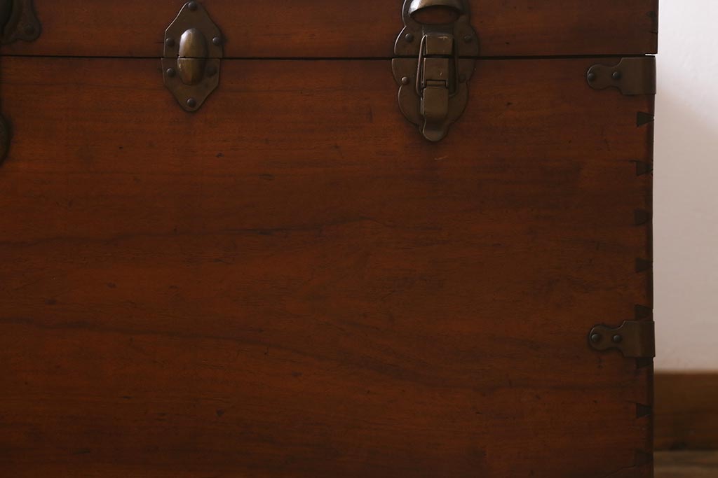 小物収納・トランク > イギリスアンティーク 楠木材 センターテーブルにもなる! レトロな雰囲気漂う大型の木製トランク(木箱、衣装箱、収納箱、長持)(R-042035)