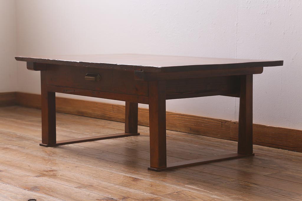 テーブル> センターテーブル・ローテーブル > アンティーク家具 和製アンティーク 昭和初期 使い込まれた風合いが味わい深い文机(座机、ローテーブル、座卓、センターテーブル)(R-042046)