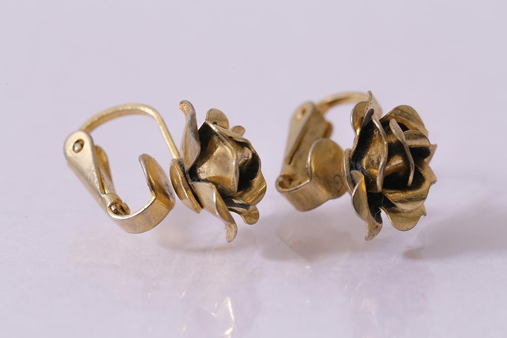 ヴィンテージアクセサリー 昭和期 バラモチーフのビンテージイヤリング(アクセサリー)(R-041919)