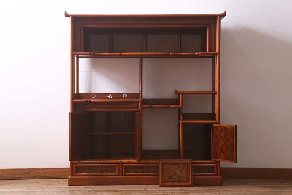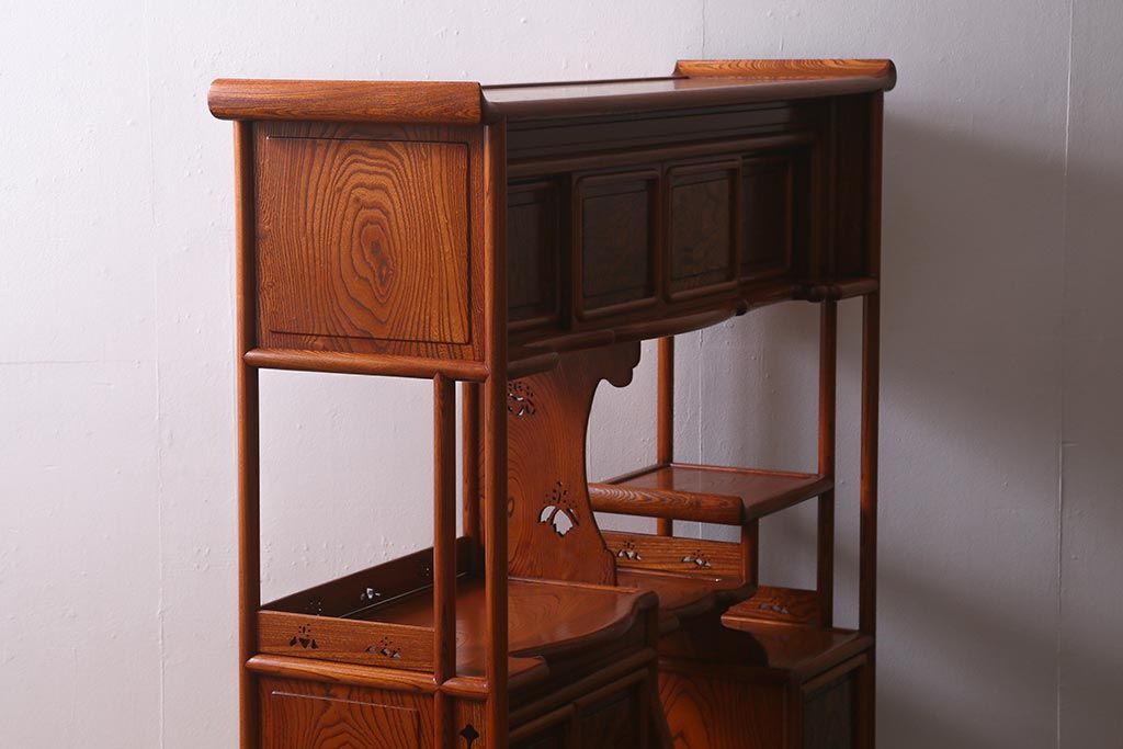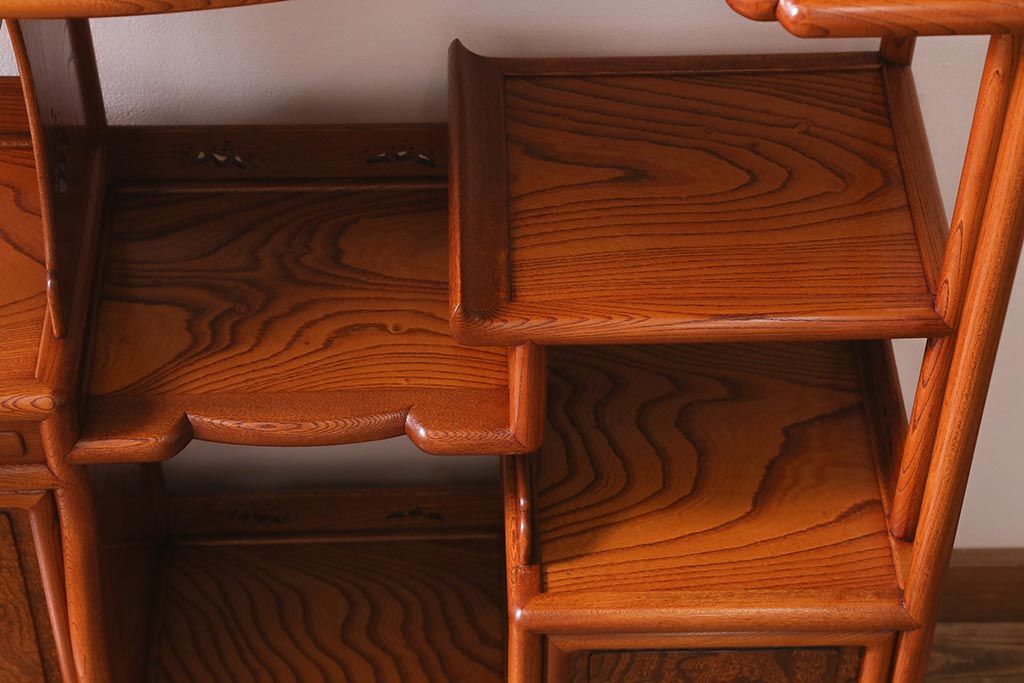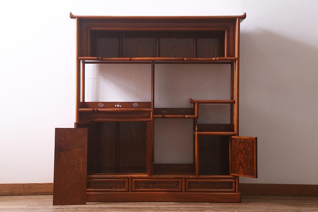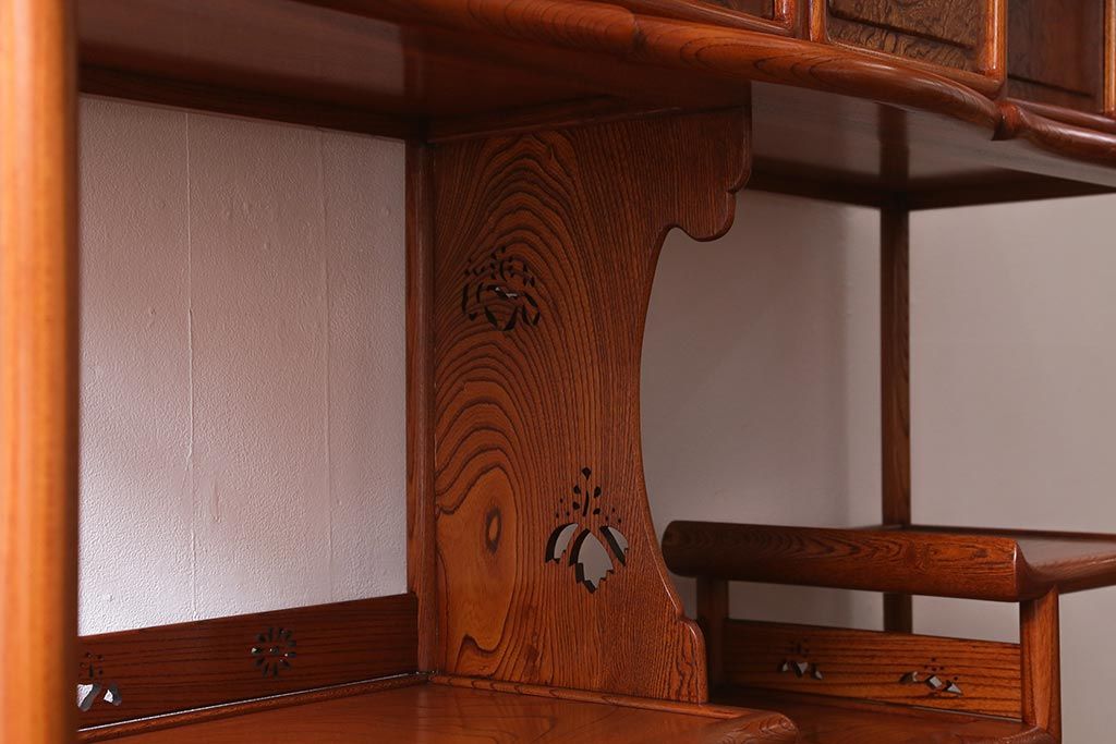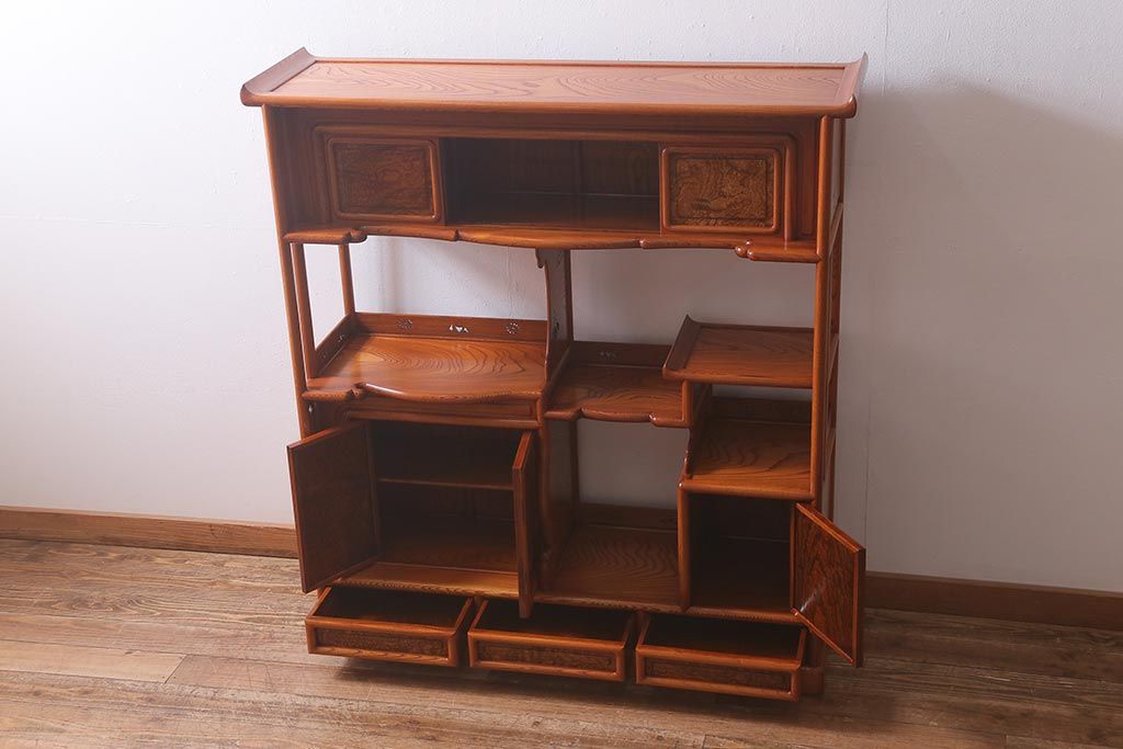 在庫未使用品 IDC大塚家具 漆器山富 漆塗り 透かし入り 総ケヤキ材の飾棚(飾り棚)(定価約203万円)(R-041764)