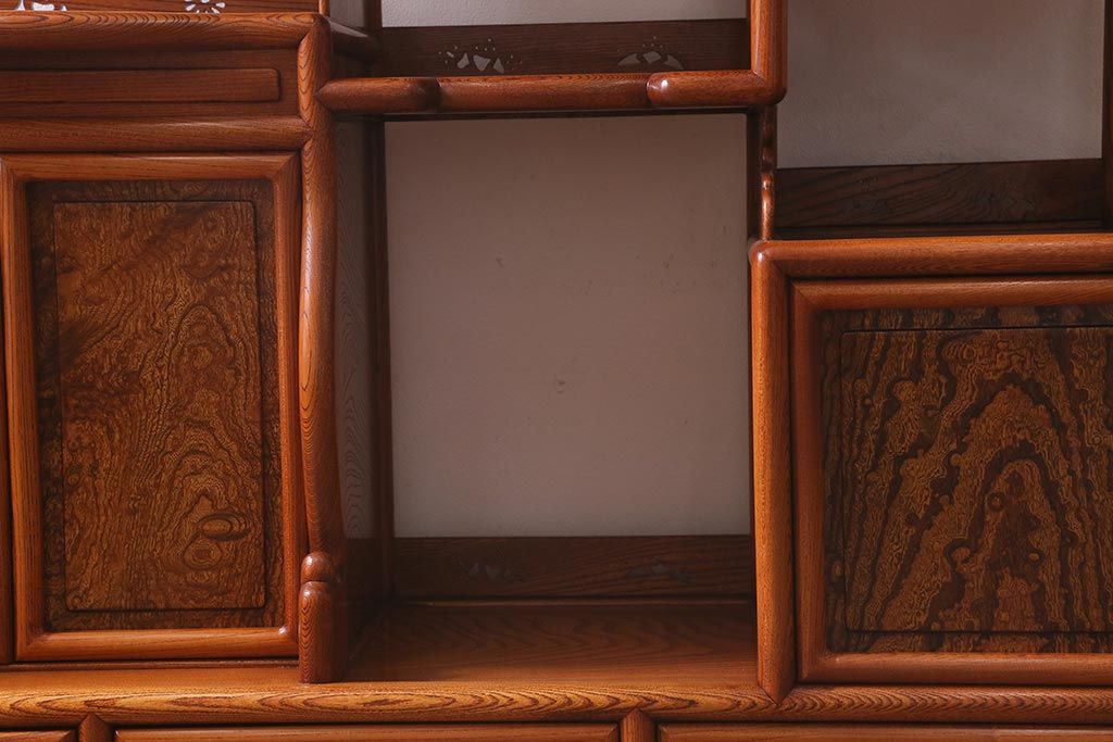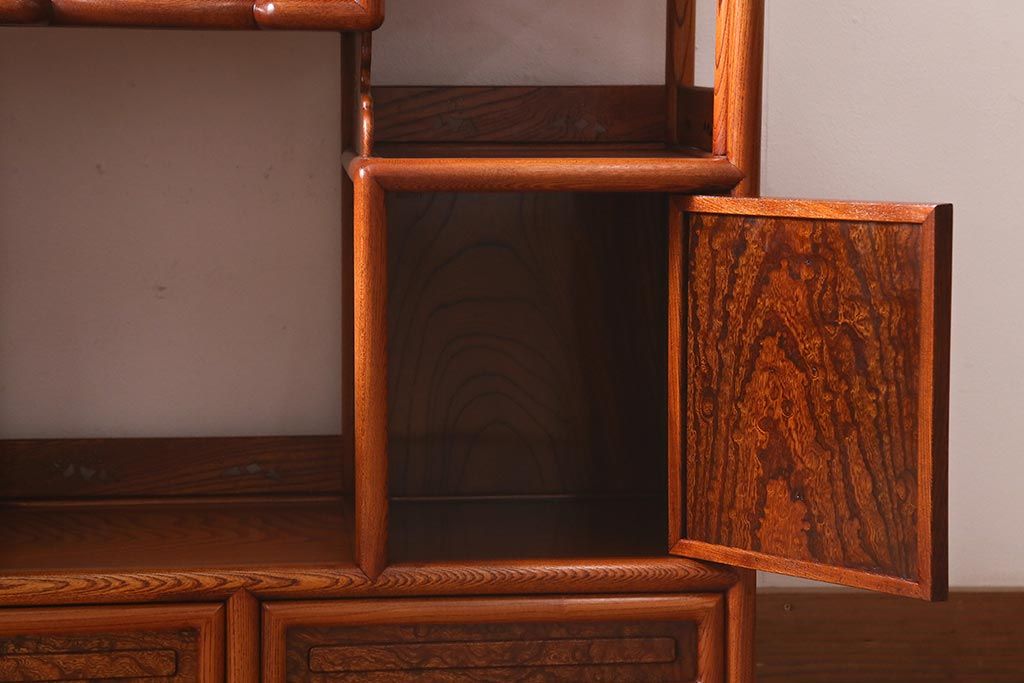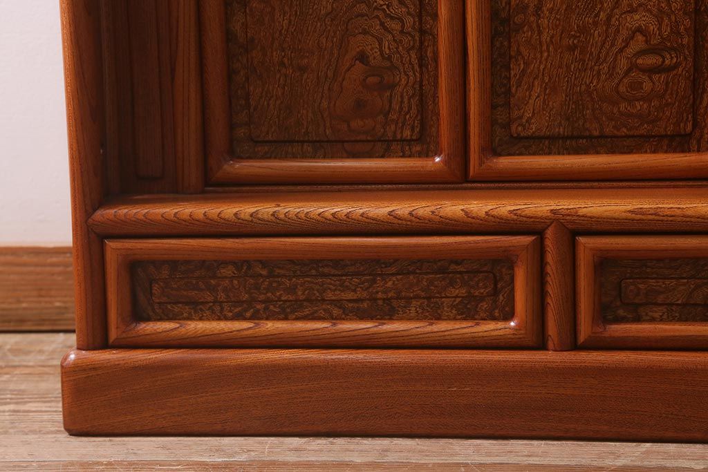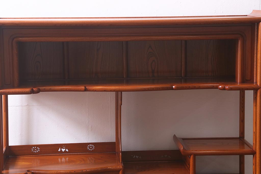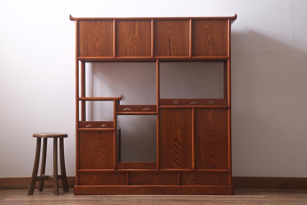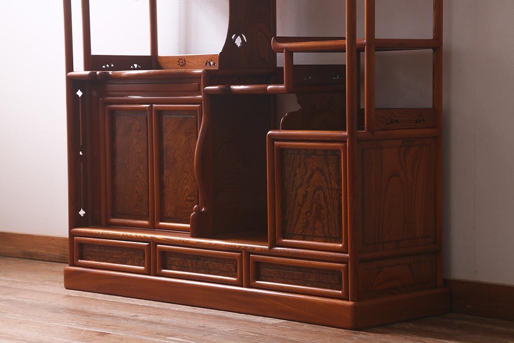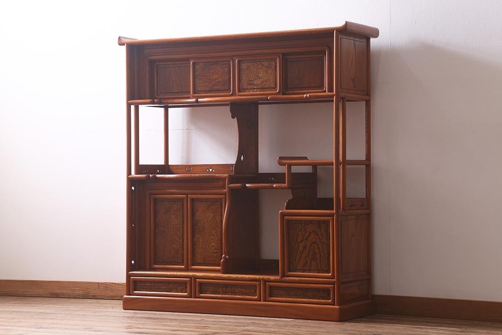 在庫未使用品 IDC大塚家具 漆器山富 漆塗り 透かし入り 総ケヤキ材の飾棚(飾り棚)(定価約203万円)(R-041764)