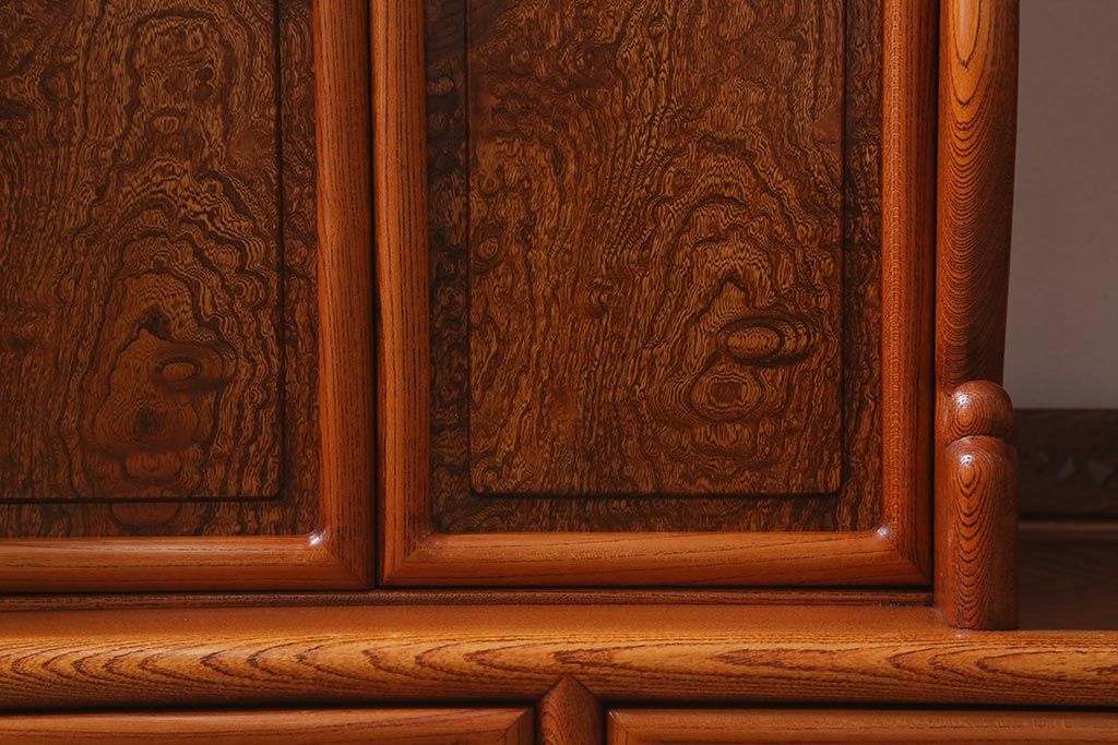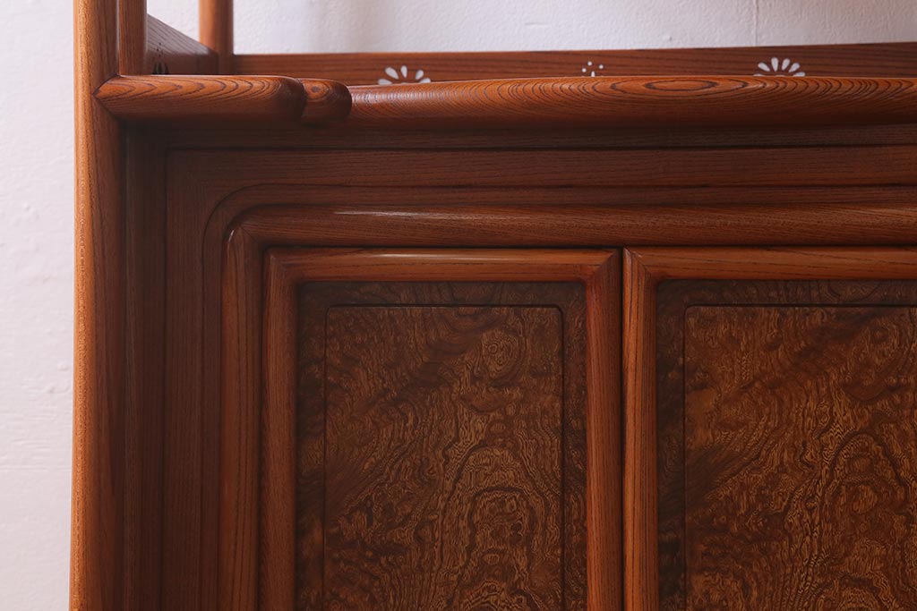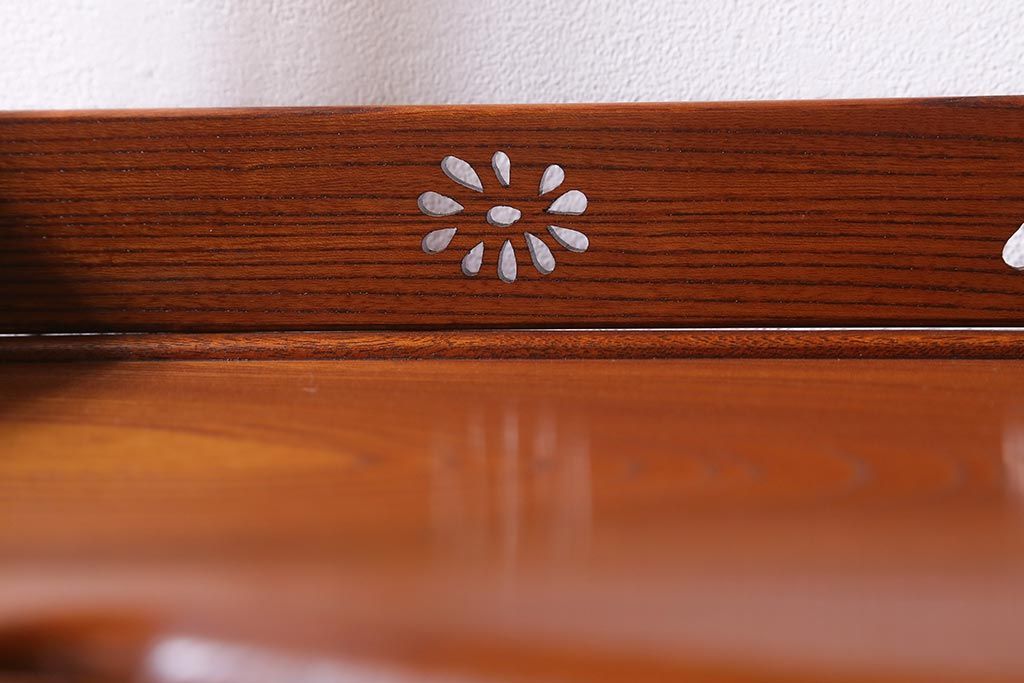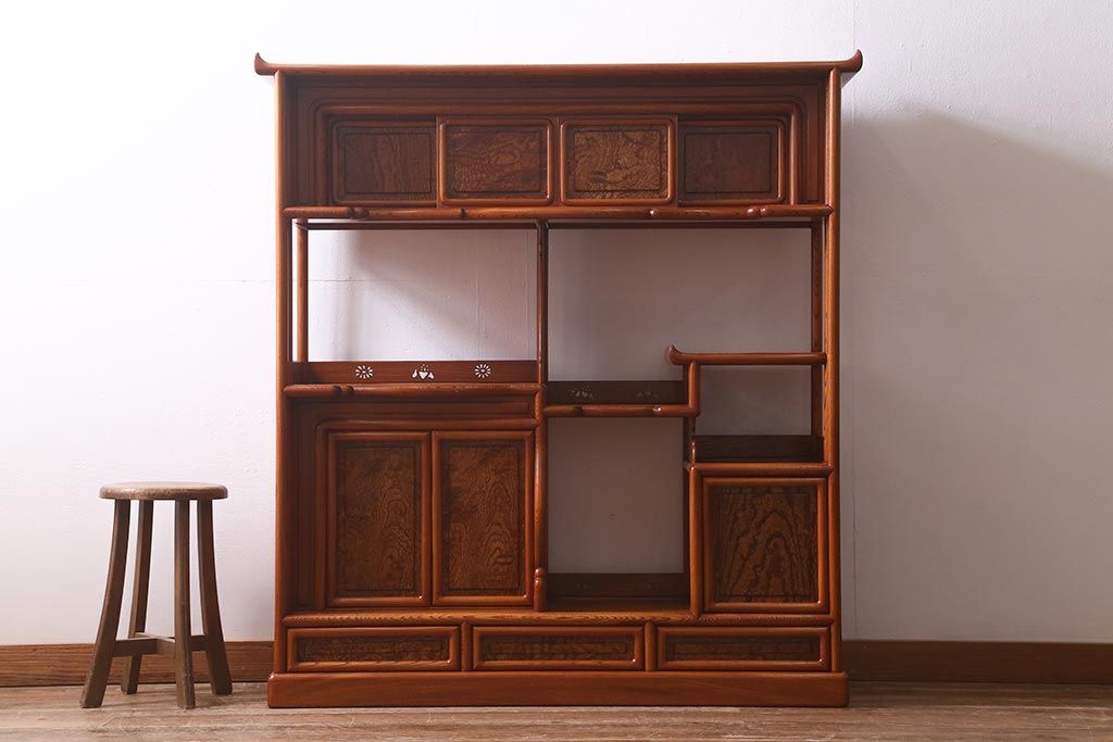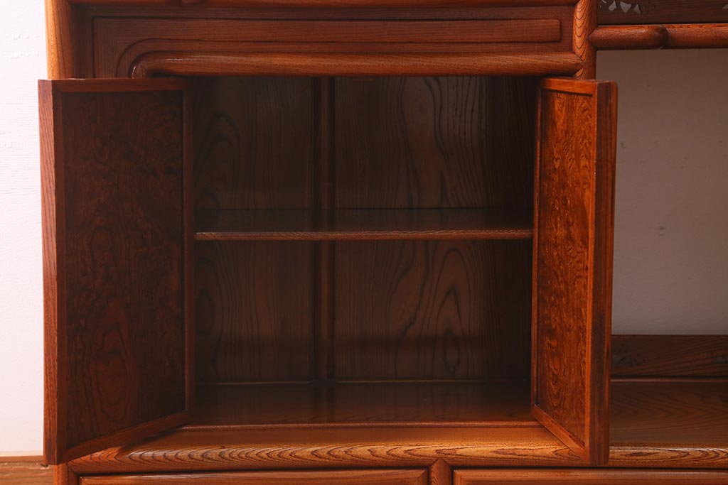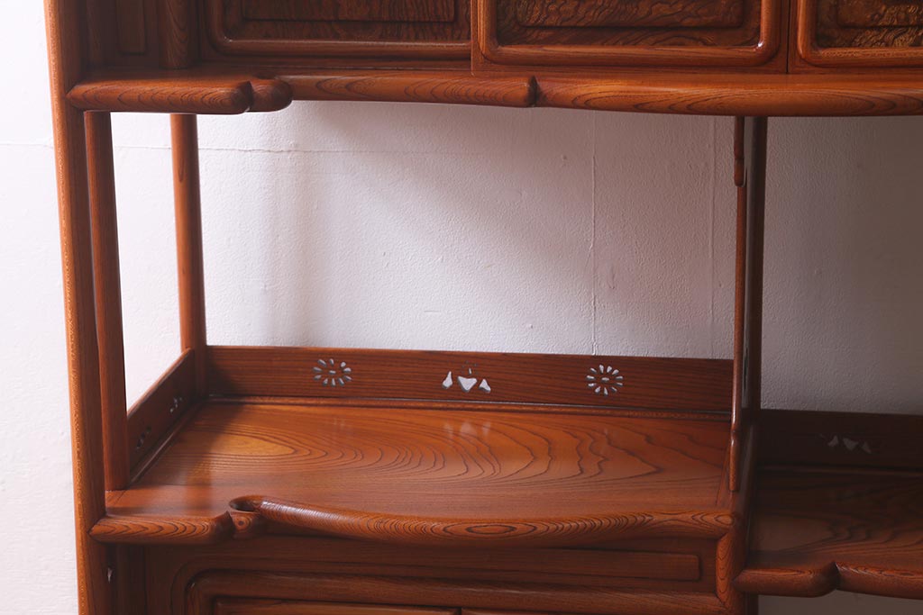 和箪笥> 茶箪笥・茶棚 > 在庫未使用品 IDC大塚家具 漆器山富 漆塗り 透かし入り 総ケヤキ材の飾棚(飾り棚)(定価約203万円)(R-041764)