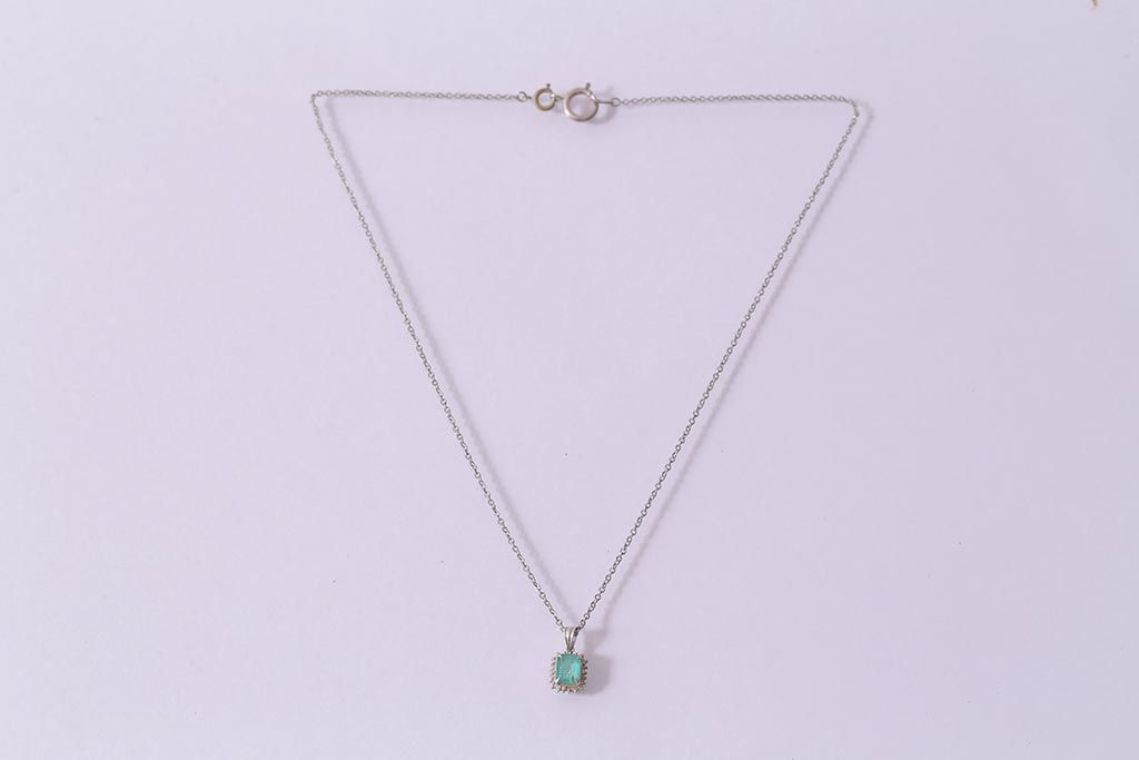 ヴィンテージアクセサリー スターリング(STERLING) ライトブルーのストーンが上品なペンダント(ネックレス、ビンテージ)(R-041917)
