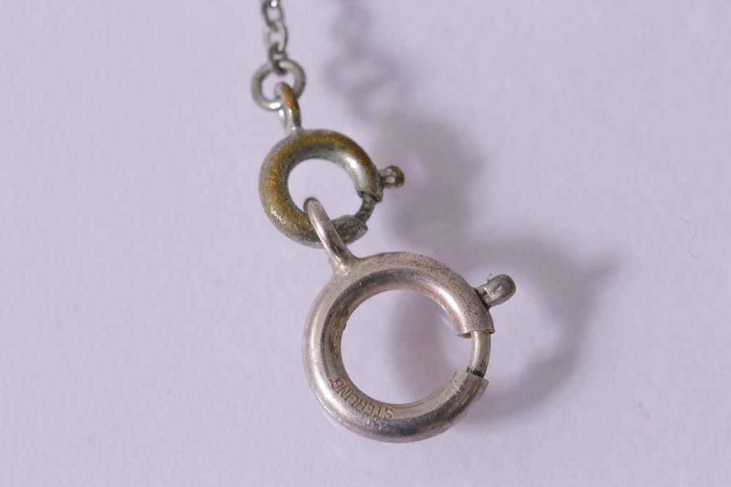 ラフジュ工房> アクセサリー> ペンダント・ネックレス > ヴィンテージアクセサリー スターリング(STERLING) ライトブルーのストーンが上品なペンダント(ネックレス、ビンテージ)(R-041917)