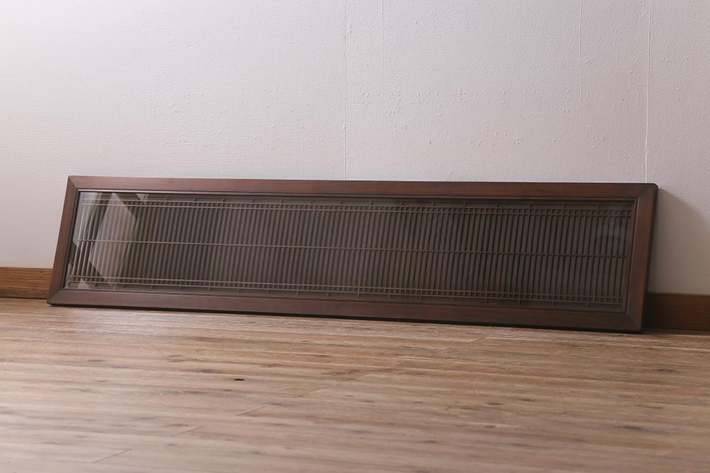 ビンテージ建具 両面ガラス すりガラス入り 細い桟が上品な雰囲気の筬欄間(オサランマ、明かり取り、明り取り)(R-042022)
