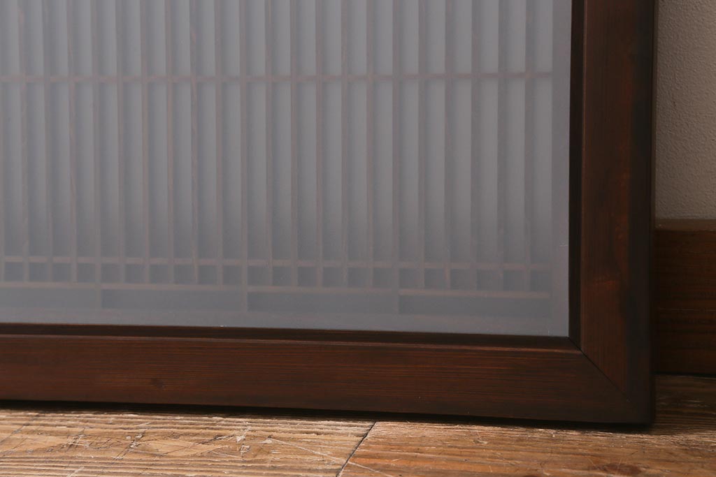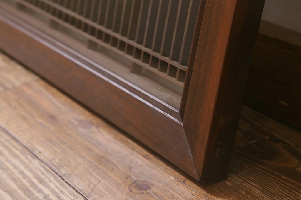 ビンテージ建具 両面ガラス すりガラス入り 細い桟が上品な雰囲気の筬欄間(オサランマ、明かり取り、明り取り)(R-042022)です。