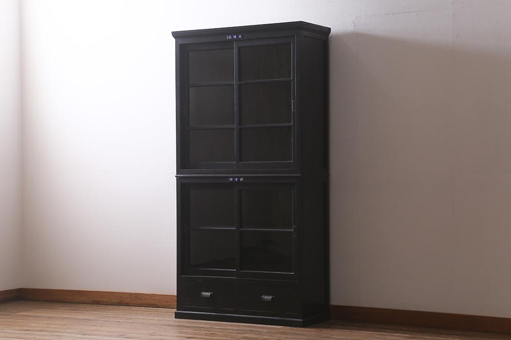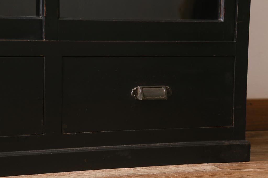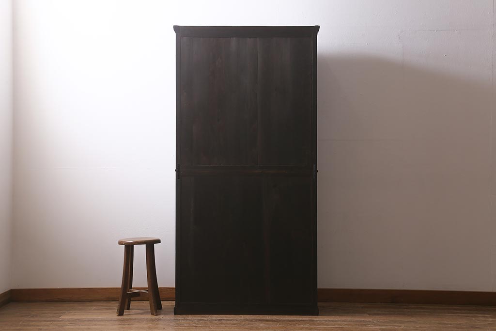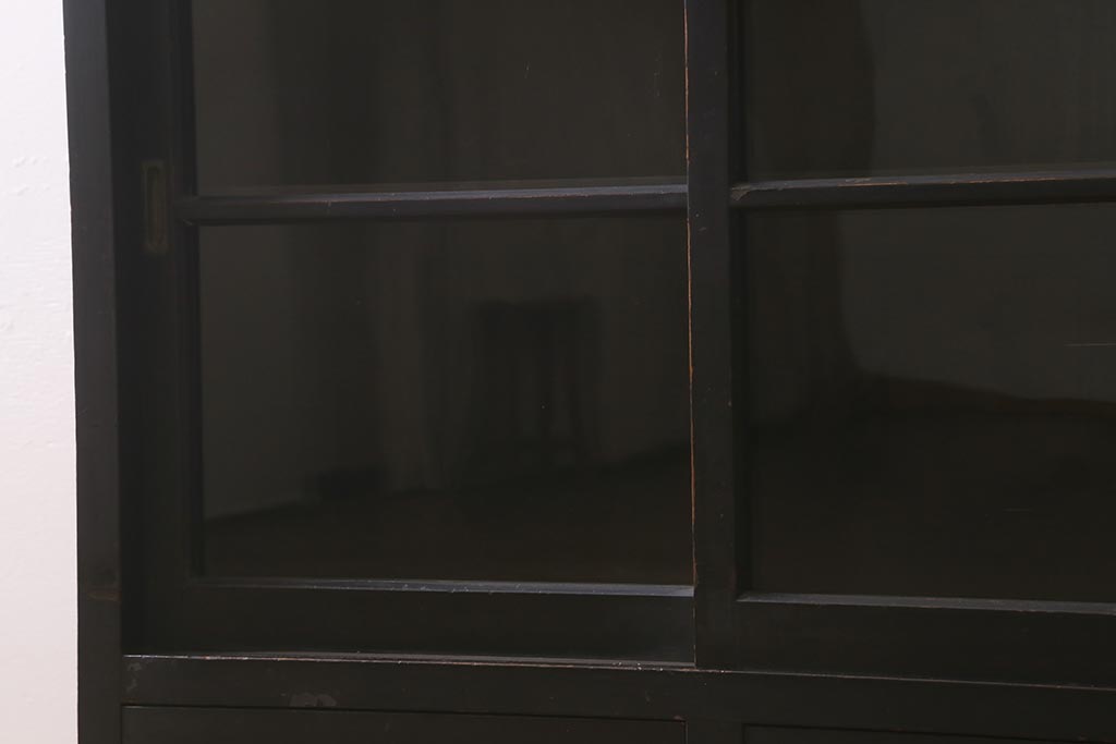 キャビネット・戸棚 > アンティーク家具 昭和初期 ノスタルジックな雰囲気が漂う黒塗りキャビネット(重ね戸棚、戸棚、収納棚、飾り棚)(R-036360)