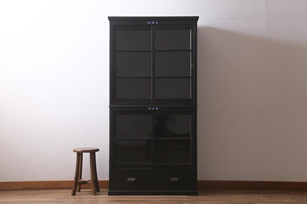 アンティーク家具 昭和初期 ノスタルジックな雰囲気が漂う黒塗りキャビネット(重ね戸棚、戸棚、収納棚、飾り棚)(R-036360)です。