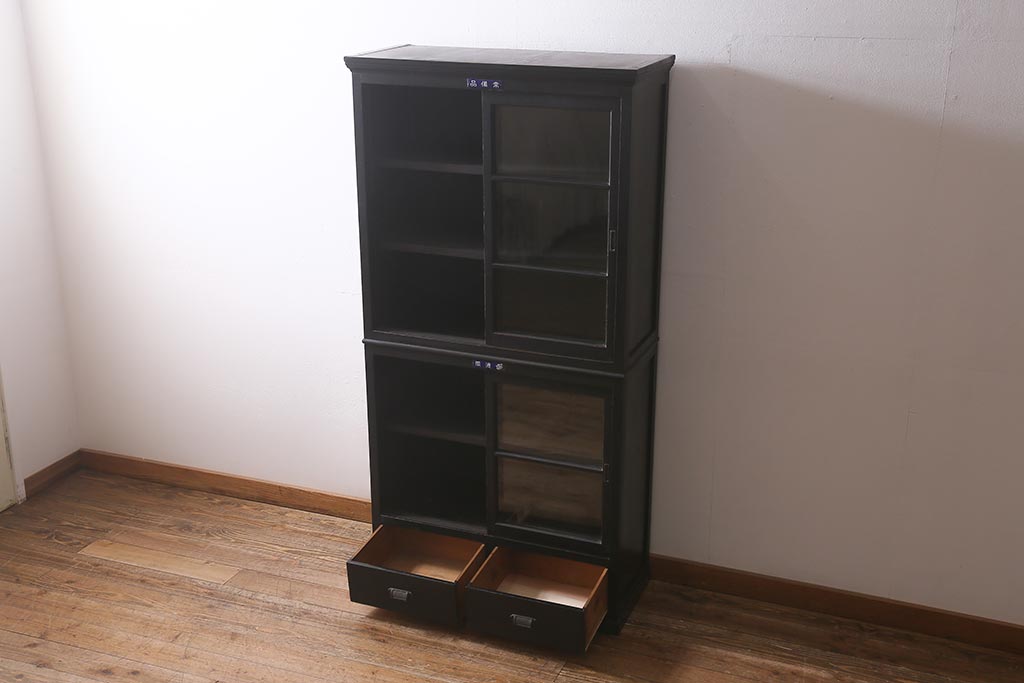 アンティーク家具 昭和初期 ノスタルジックな雰囲気が漂う黒塗りキャビネット(重ね戸棚、戸棚、収納棚、飾り棚)(R-036360)