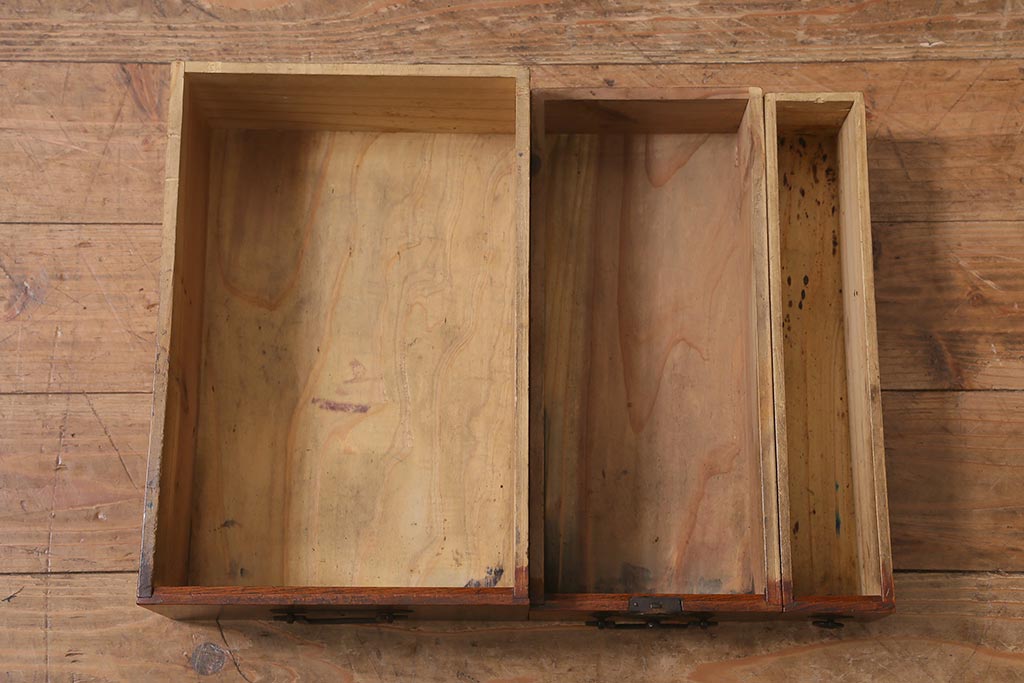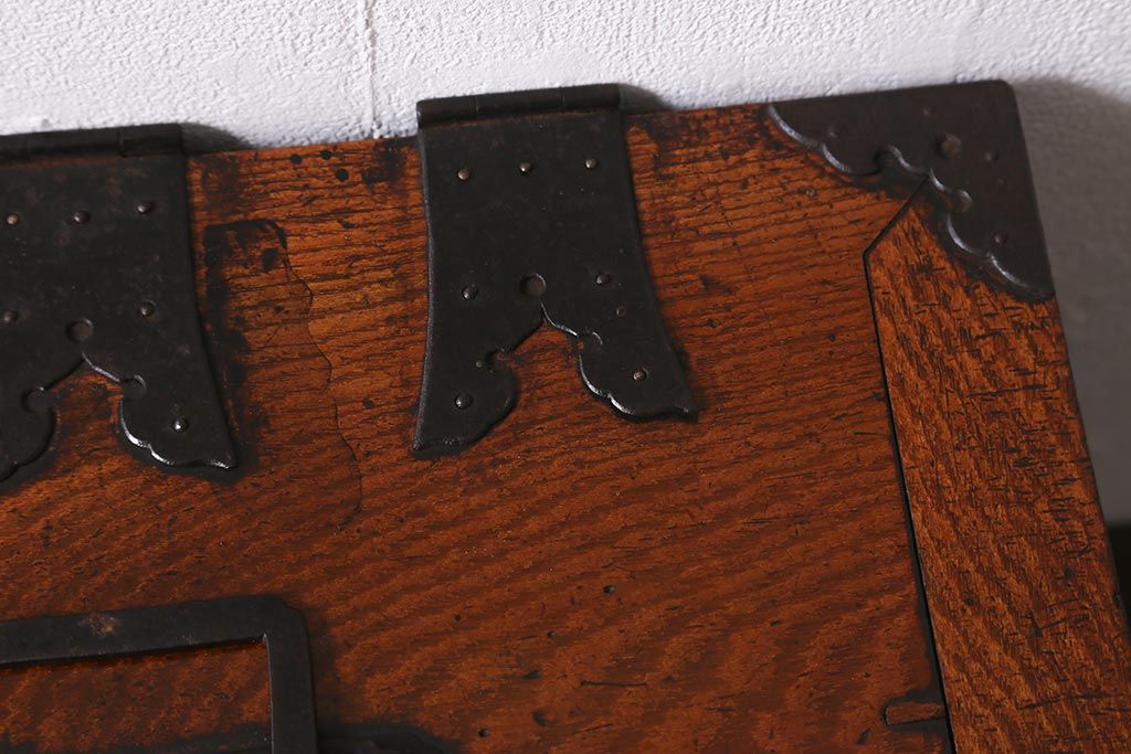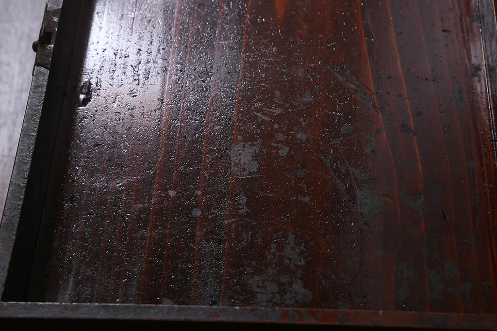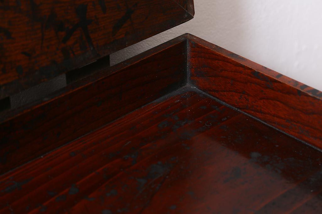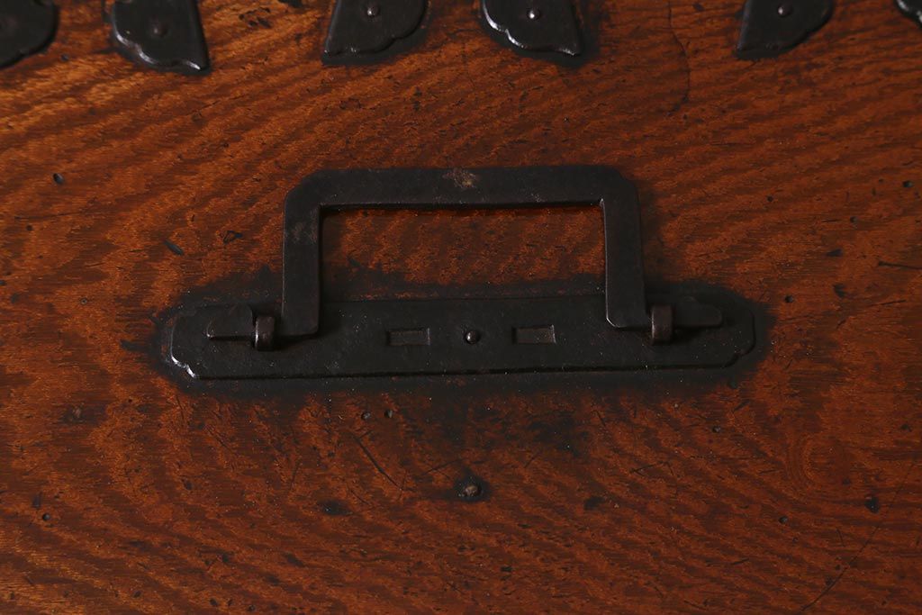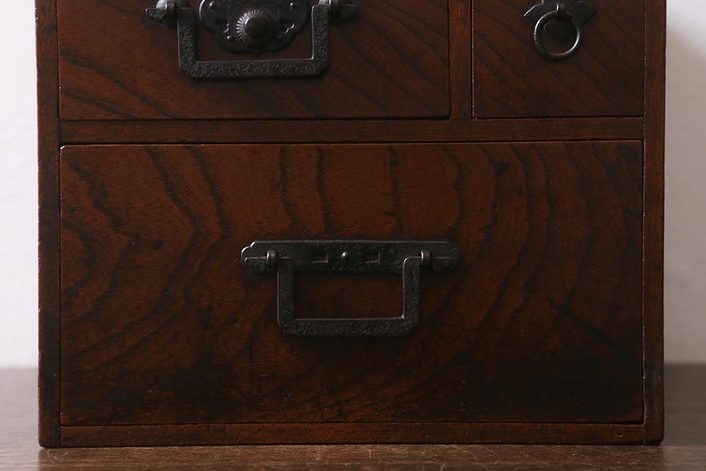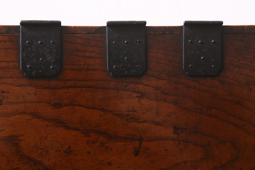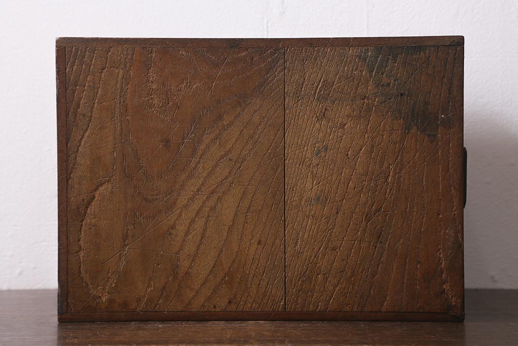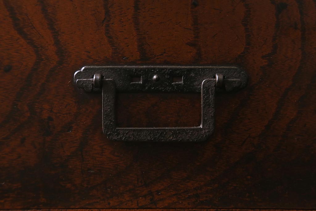 小物収納・トランク > アンティーク家具 古民具・骨董 総欅(ケヤキ)材 漆塗り 存在感のある金具が魅力の硯箱(小引き出し)(R-042009)