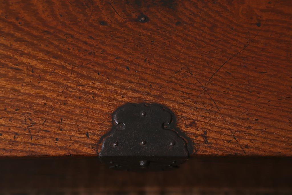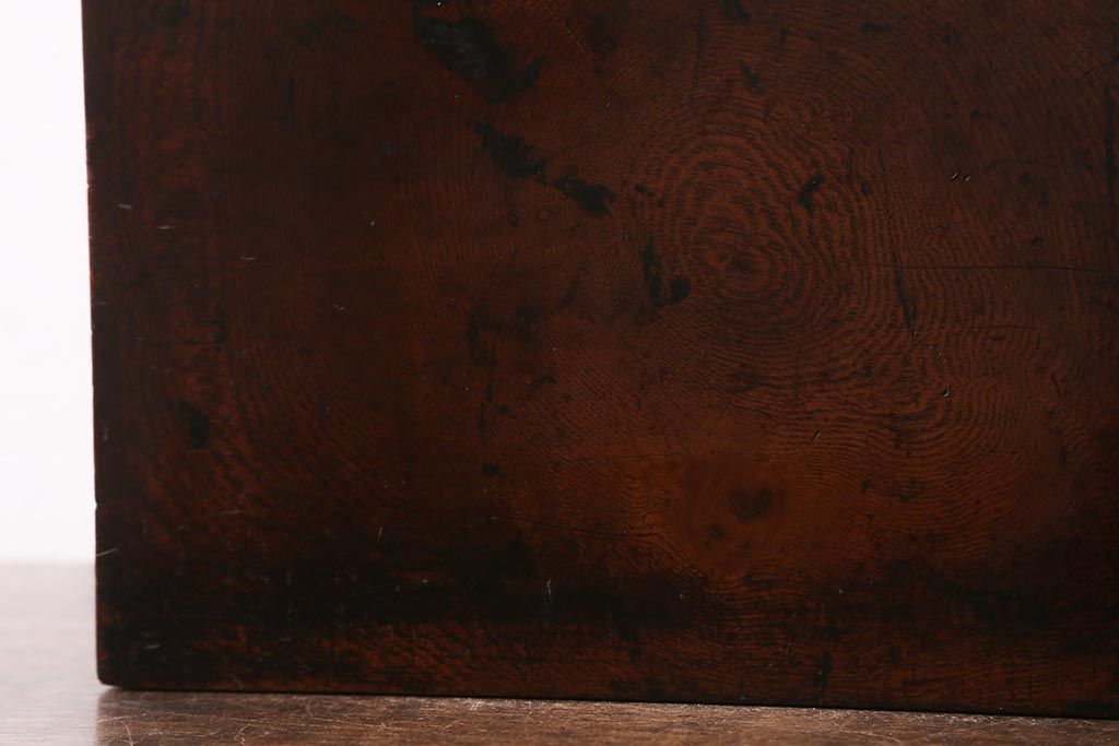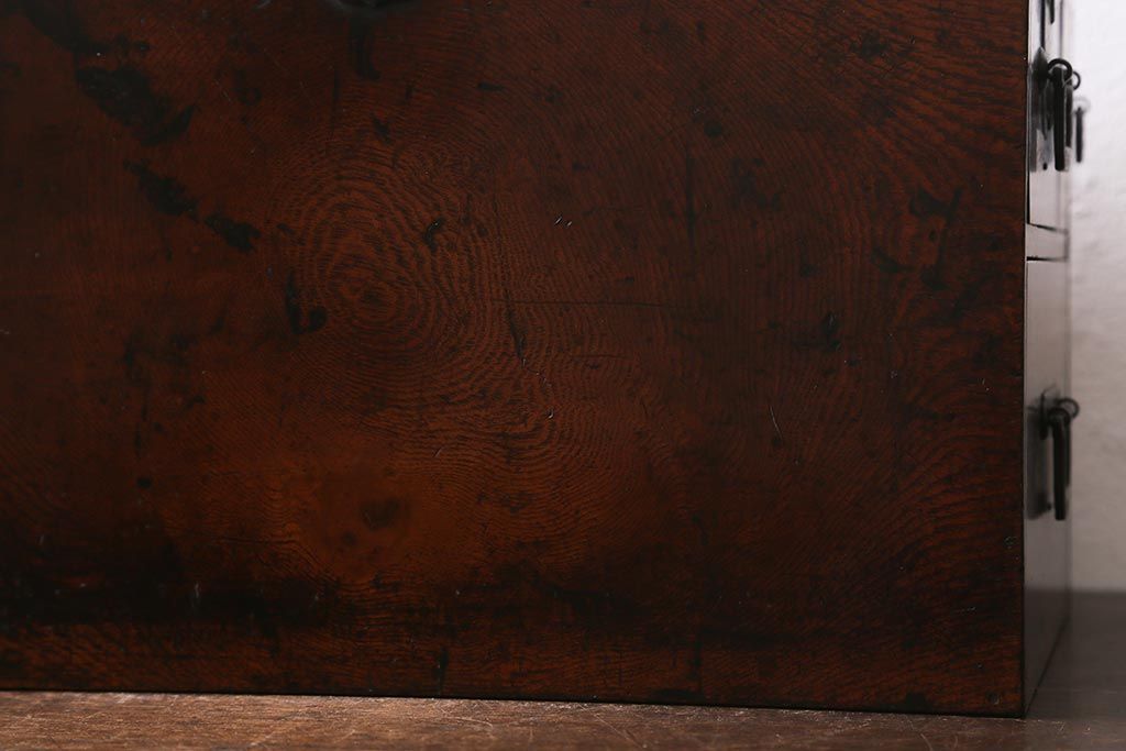 骨董・美術品 > アンティーク家具 古民具・骨董 総欅(ケヤキ)材 漆塗り 存在感のある金具が魅力の硯箱(小引き出し)(R-042009)