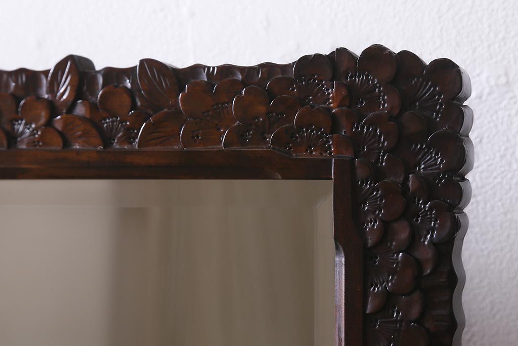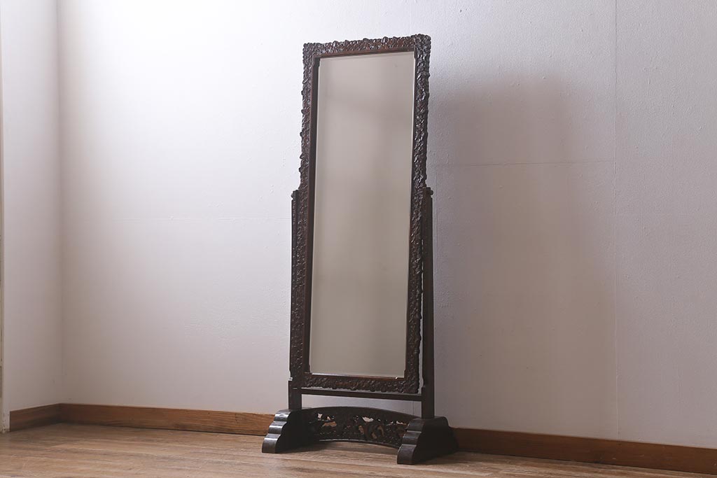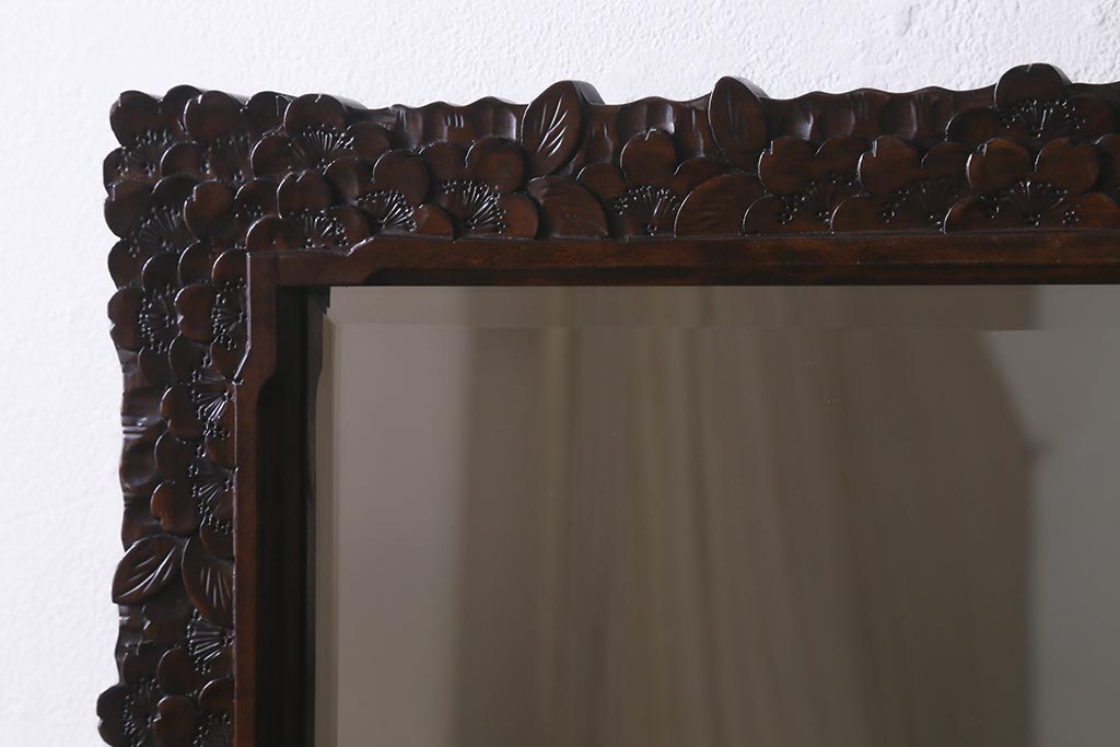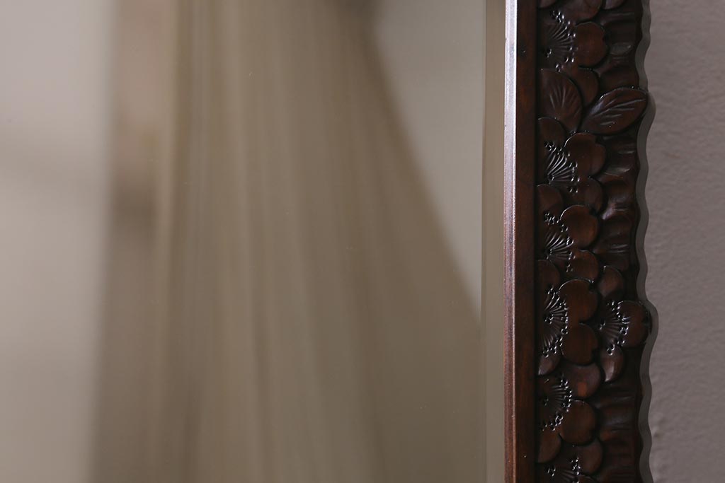 鏡> 姿見 > 中古 伝統工芸 軽井沢彫り 桜の意匠が目を引く上品な佇まいの姿見(鏡、ミラー)(R-042059)