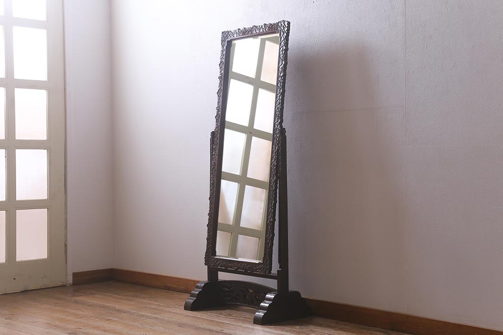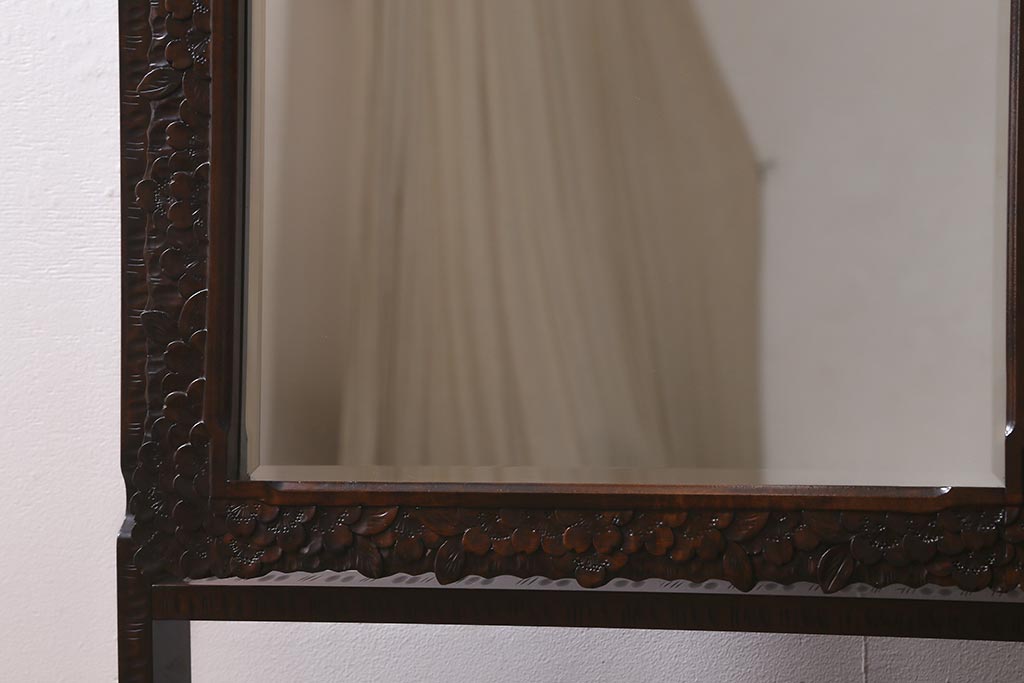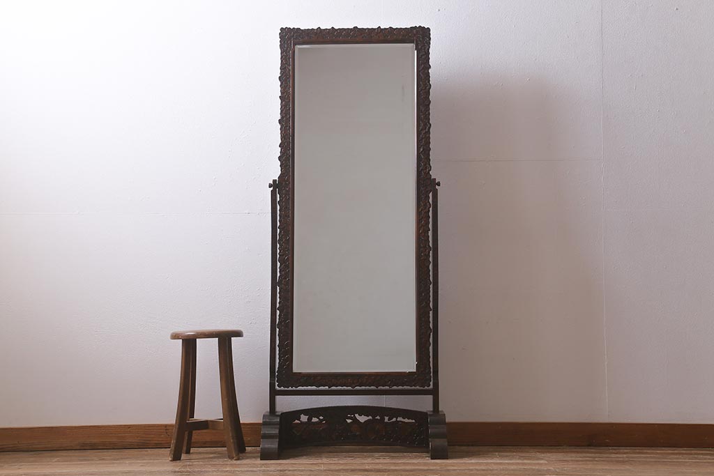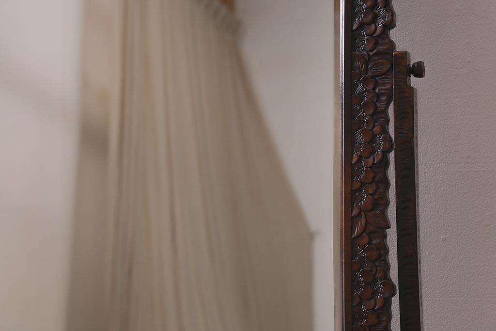 鏡 > 中古 伝統工芸 軽井沢彫り 桜の意匠が目を引く上品な佇まいの姿見(鏡、ミラー)(R-042059)